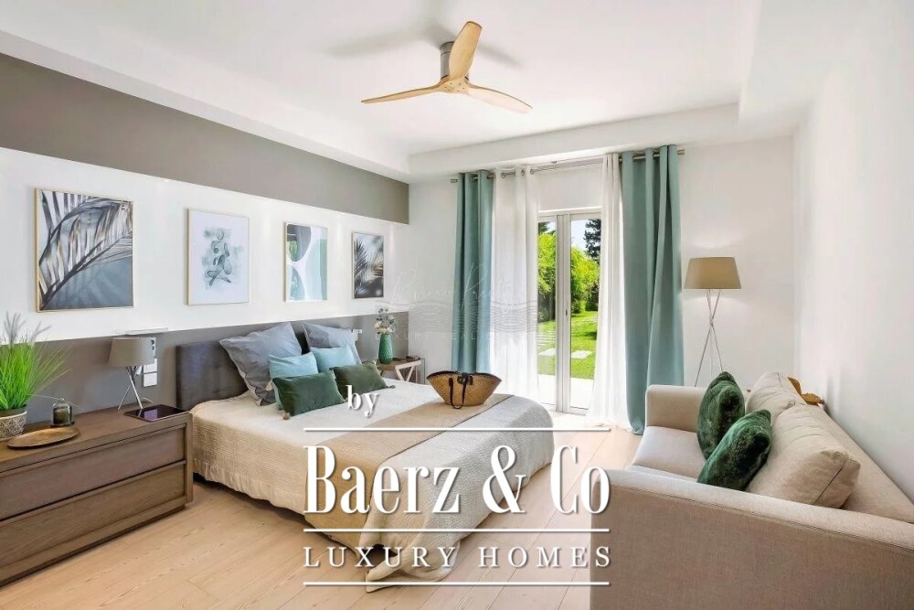 Een reeks aaneengeschakelde leefruimtes vloeit harmonieus in elkaar over; een royale woonkamer loopt naadloos over in de eetkamer, wat zorgt voor een rustige cadans voor het dagelijkse leven en het ontvangen van gasten. Zes slaapkamers, ieder en suite, waaronder een complete master suite, bieden een mooie balans tussen privacy en comfort. De luxe villa te koop in Mougins beschikt daarnaast over een eigen bioscoop en fitnessruimte, waardoor een evenwichtige levensstijl mogelijk is zonder huis te verlaten.
