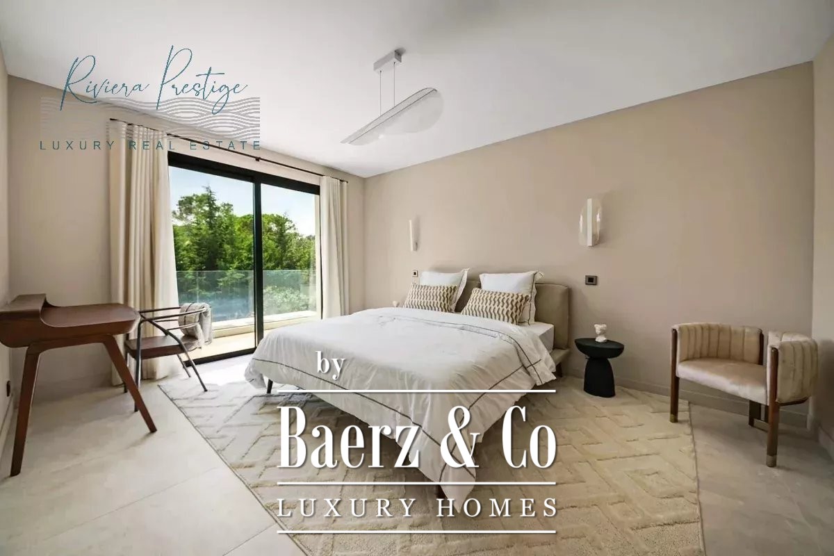 Villa Mougins is een eigentijdse schuilplaats, gekenmerkt door verfijnde architectonische lijnen en royale raampartijen die het 380 m² leefruimte overladen met natuurlijk daglicht. Deze woning verwelkomt u in een wereld waar het elegante interieur naadloos overloopt in de rust van het buitenleven, met terrassen die uitkijken over een weelderige tuin en een zwembad, en zo het decor vormen voor serene ontspanning of sfeervolle bijeenkomsten.