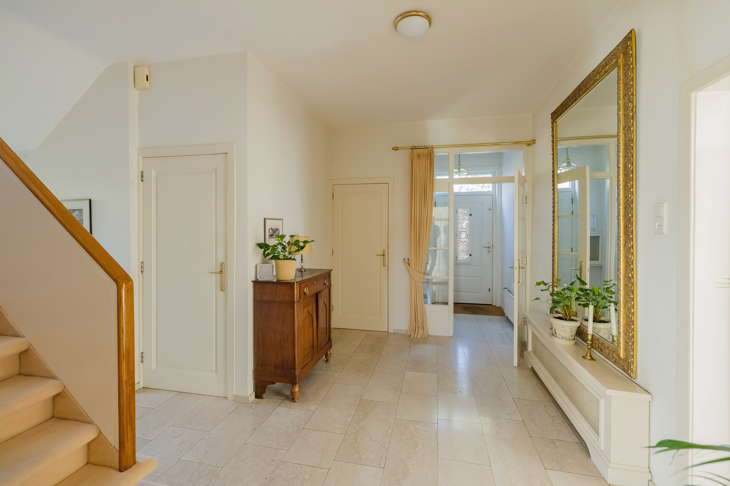 Entree met vestibule en ruime hal, van waaruit alle kamers toegankelijk zijn.