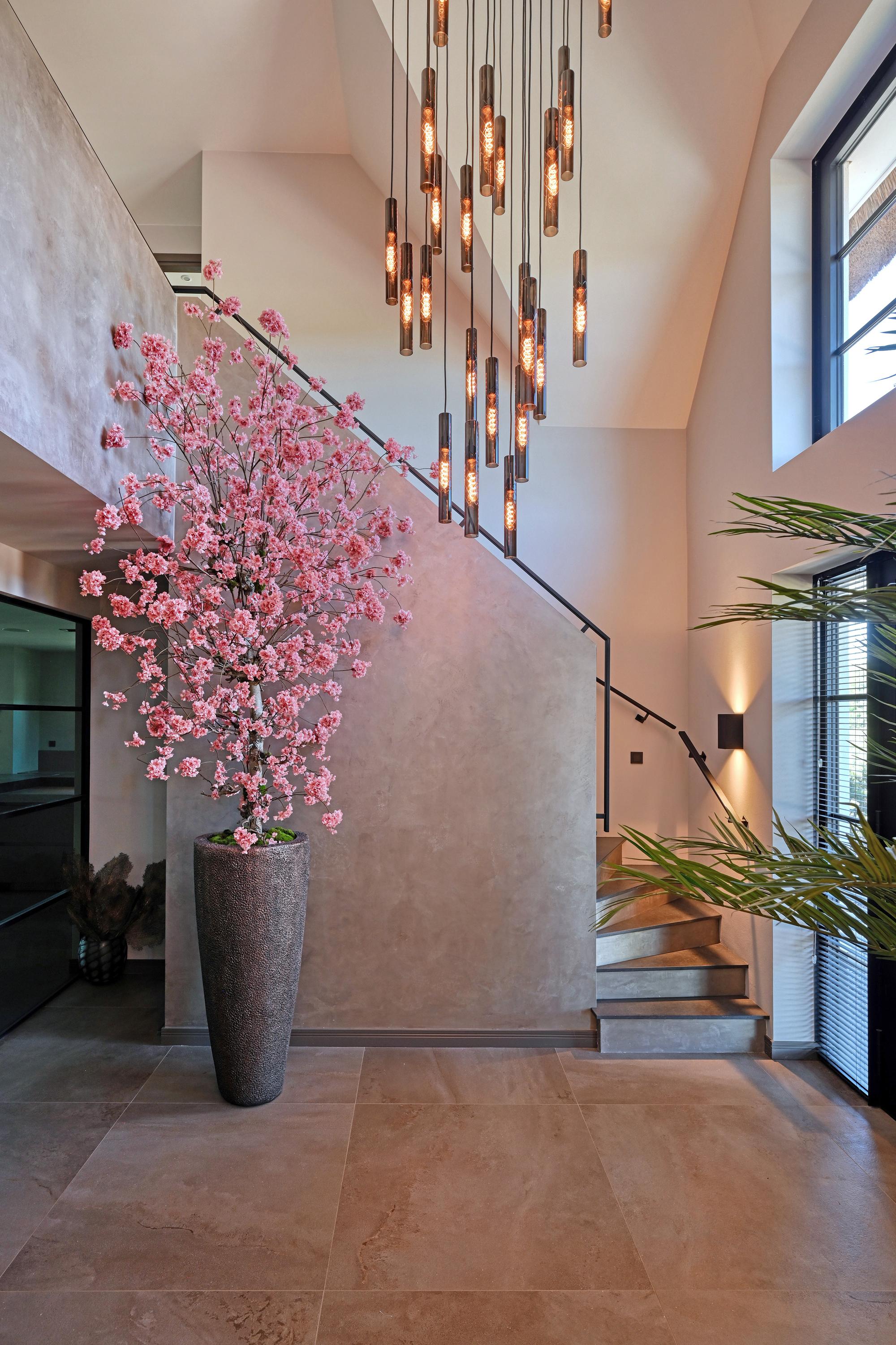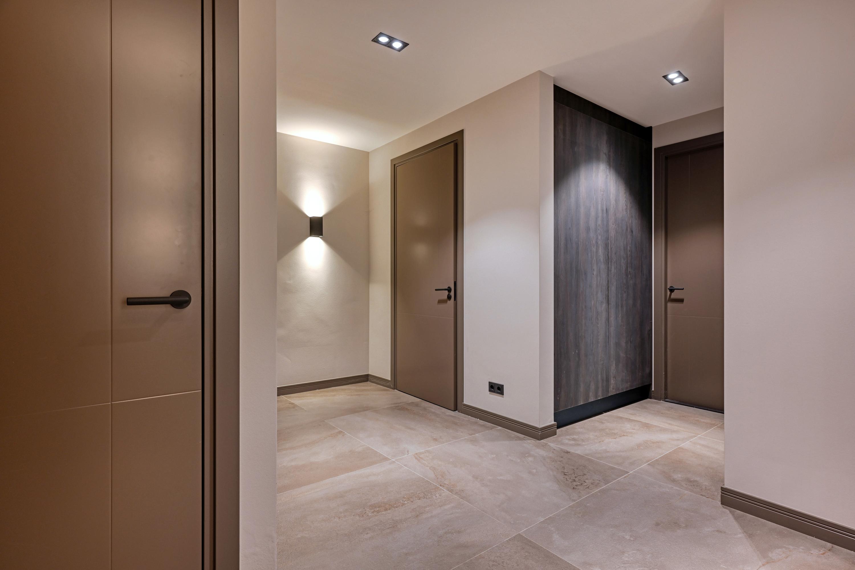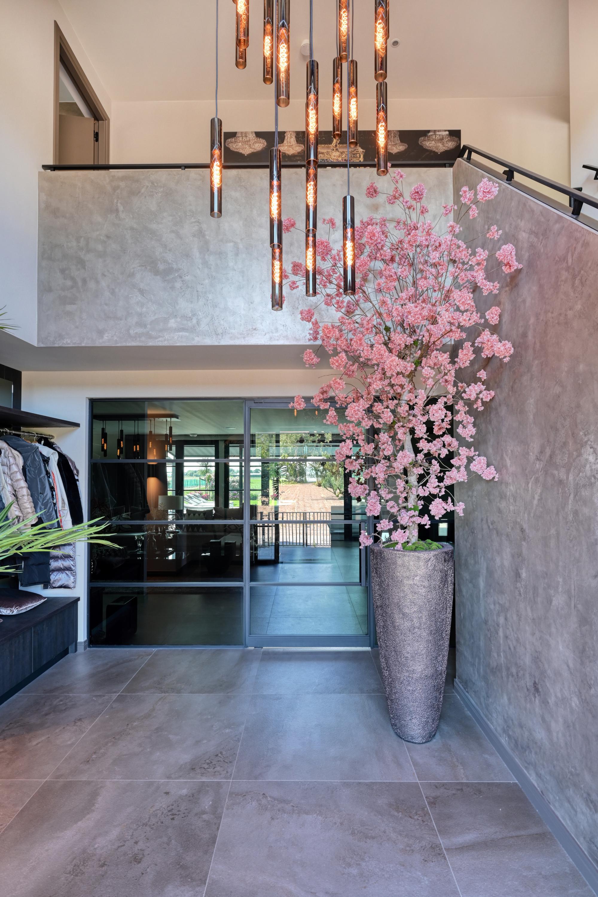 Bij binnenkomst een grote hal met vide en fraaie trapopgang, hier wordt direct duidelijk dat deze villa is ontworpen met gevoel voor ruimte en elegantie. Via stalen deuren met rookglas is er toegang tot de living.