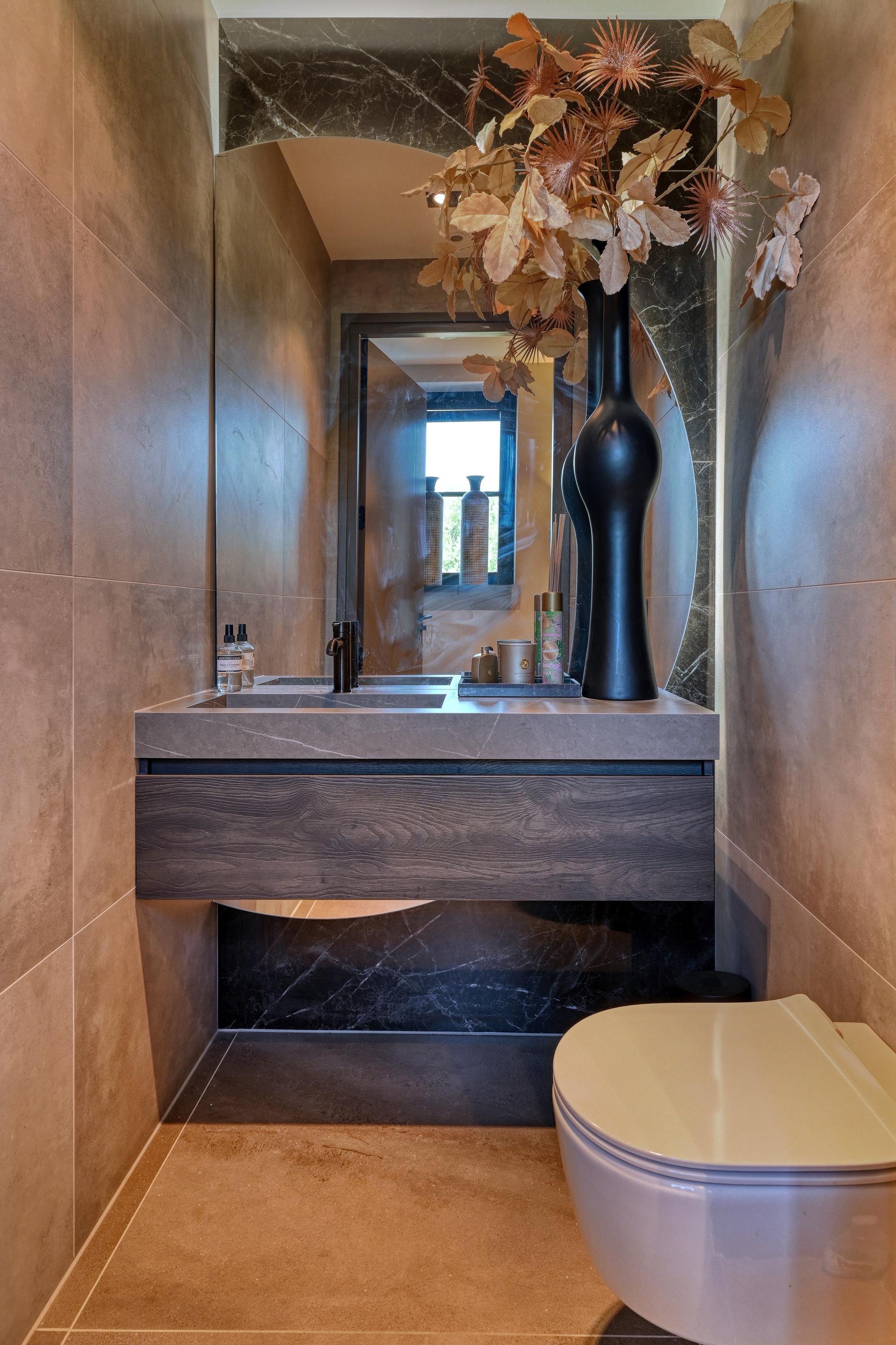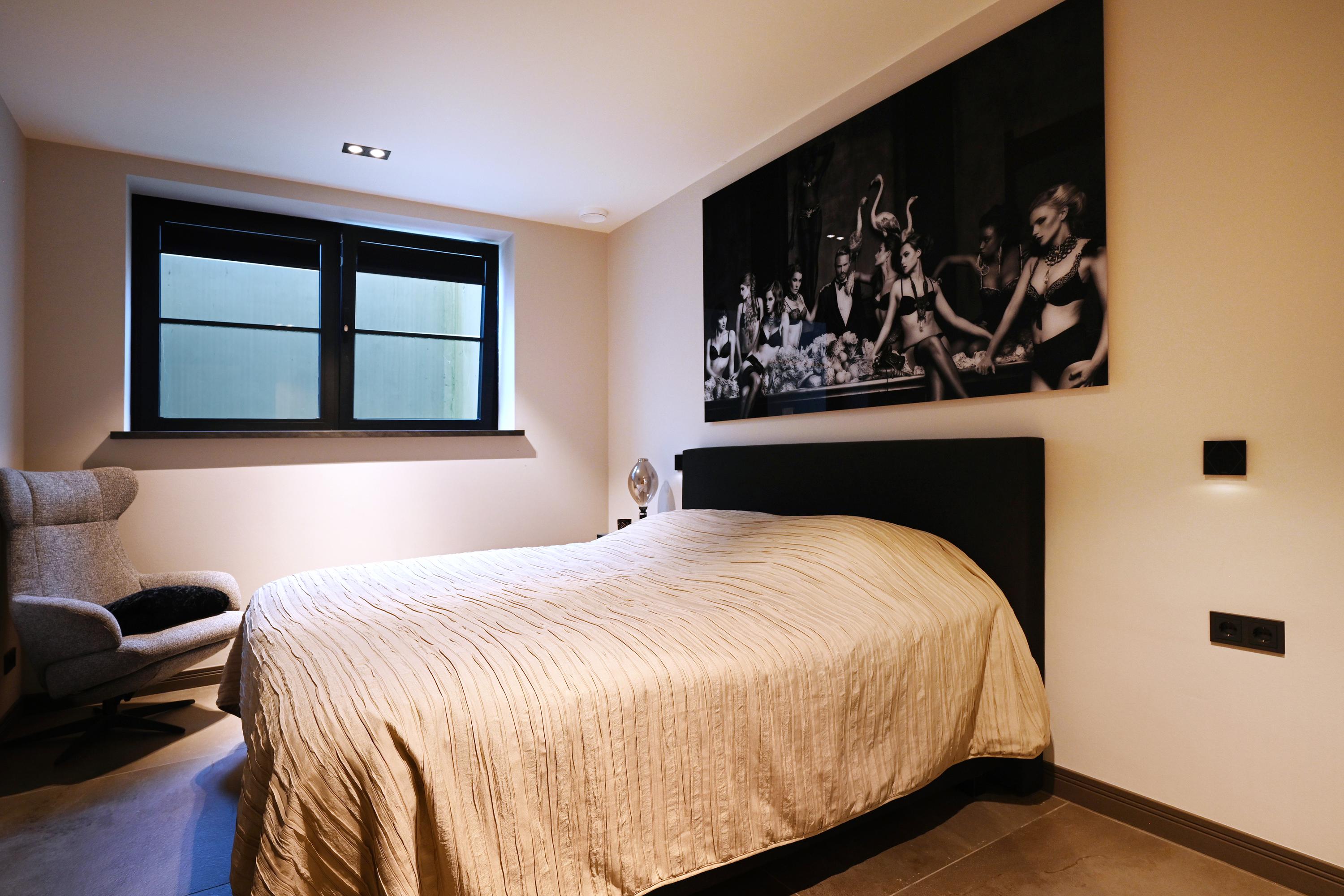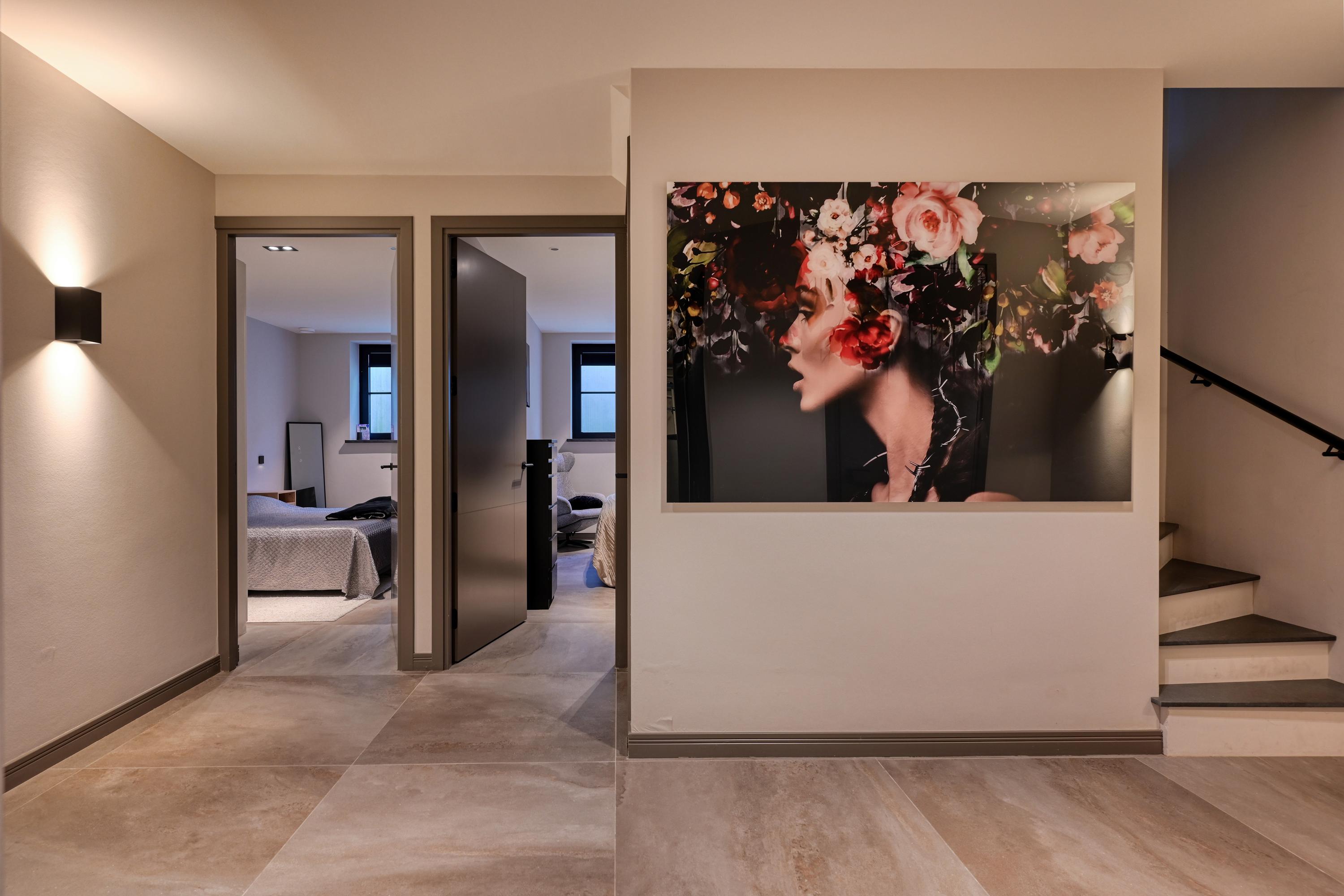 De woning is volledig onderkelderd maar koekoeks zorgen op deze verdieping voor lichtinval en extra ventilatiemogelijkheden. Deze verdieping heeft een praktisch indelingen en biedt verrassend veel ruimte. Zo bevinden zich hier een ruime hal met toiletruimte, twee ruime slaapkamers en een luxe badkamer met inloopdouche en wastafelmeubel, ook hier is dezelfde warme sfeer doorgevoerd. Verder is hier nog een grote technische ruimte en, tot slot, een stijlvolle bar/man-cave met pantry en kastenwand.