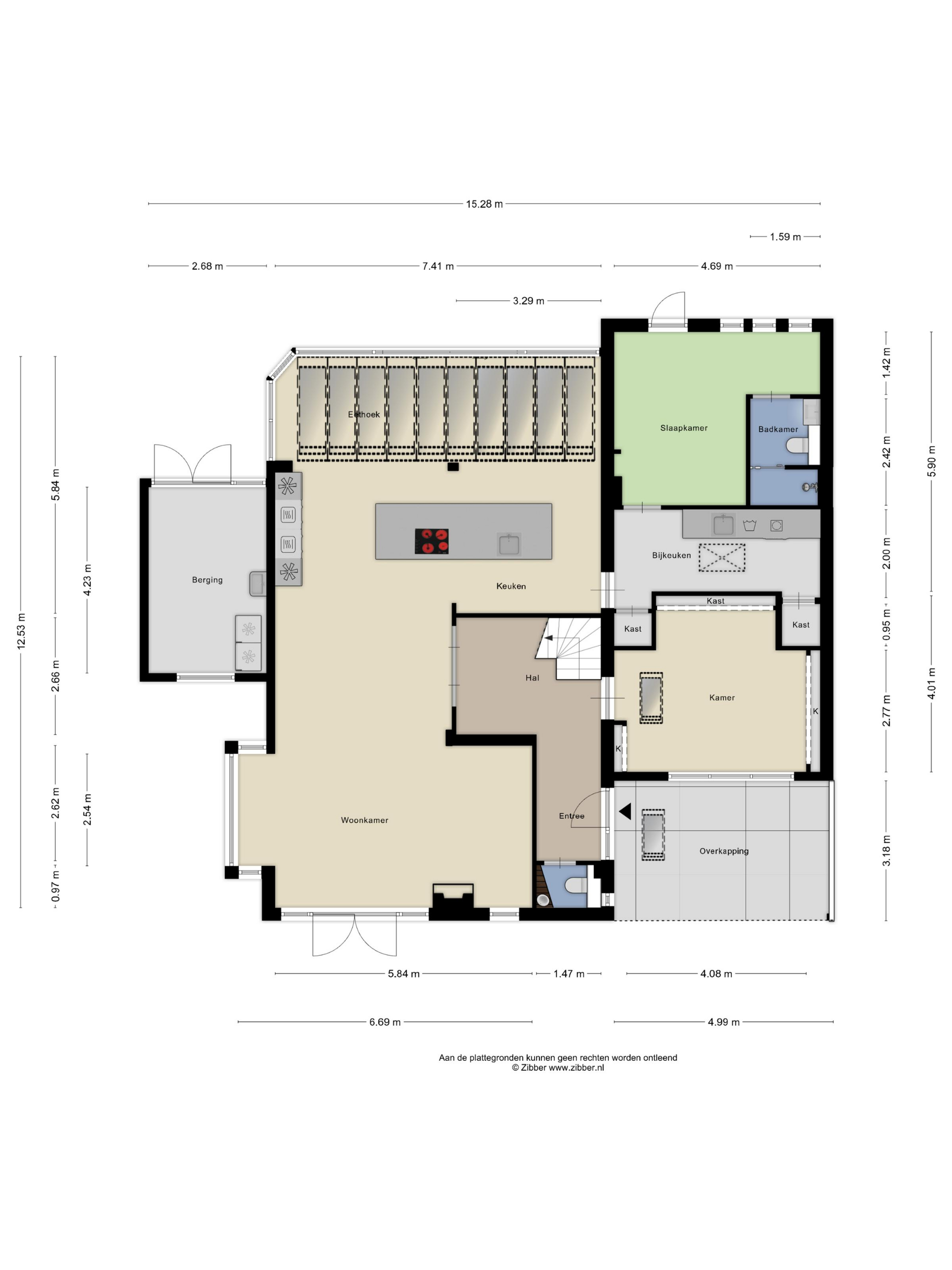Entree met ruime hal en stijlvol modern toilet. Aan de ene zijde bevindt zich de sfeervolle bibliotheek/TV-kamer met ingebouwde boekenkasten en audiomeubel. Via dubbele deuren stapt u binnen in de riante woonkamer en royale leefkeuken (samen ruim 70 m²). De woonkamer is voorzien van een nieuwe vloer met vloerverwarming en een nieuwe hoogrendements haard, heerlijk voor knusse winteravonden. De luxe leefkeuken vormt met een groot kookeiland het hart van het huis. Alle denkbare inbouwapparatuur is aanwezig, ideaal voor culinaire liefhebbers. De gezellige bar geïntegreerd in het kookeiland is ideaal voor een snel ontbijt, een goed glas wijn terwijl uw partner staat te koken of gezellige borrelavonden met vrienden. De keuken staat in verbinding met de bijkeuken met extra aanrecht, aansluitingen voor wasmachine en droger (mogelijkheid voor plaatsen van een extra vaatwasser) en toegang tot een grote geïsoleerde bergzolder.