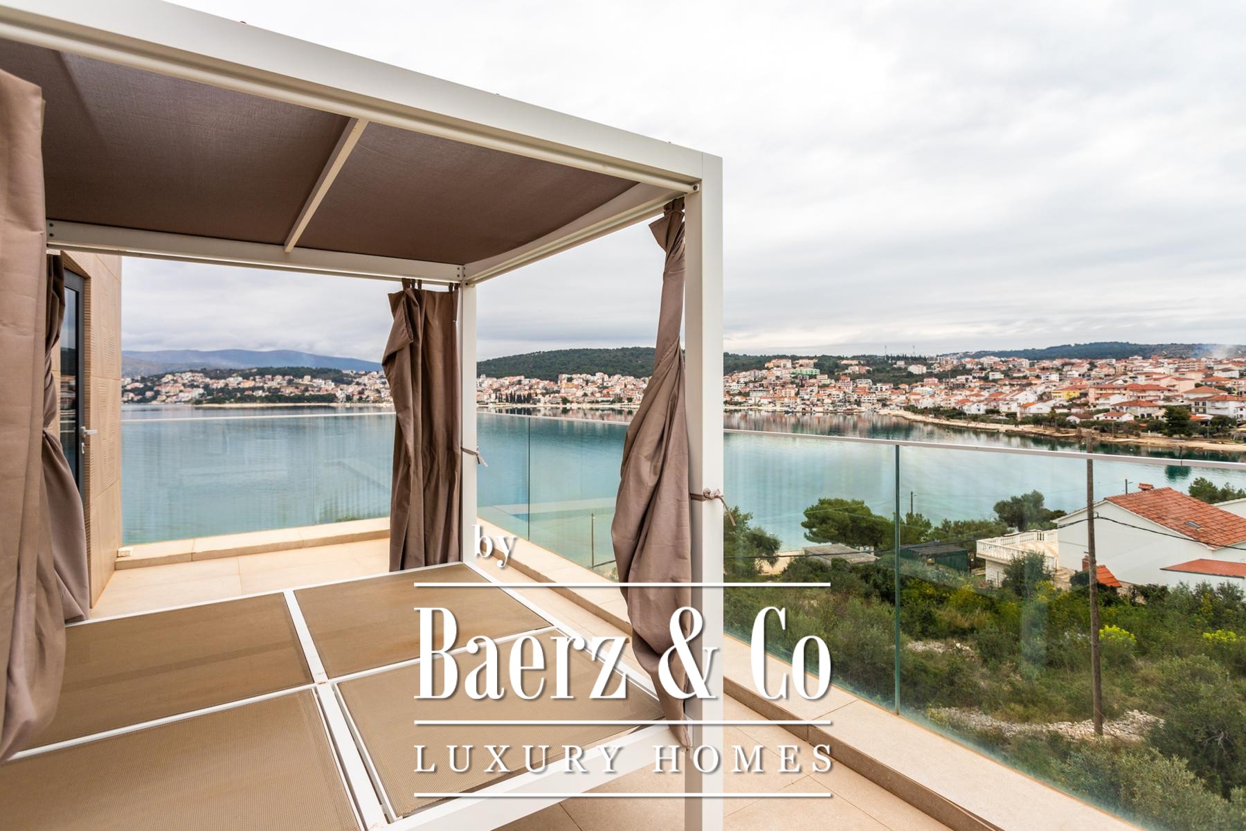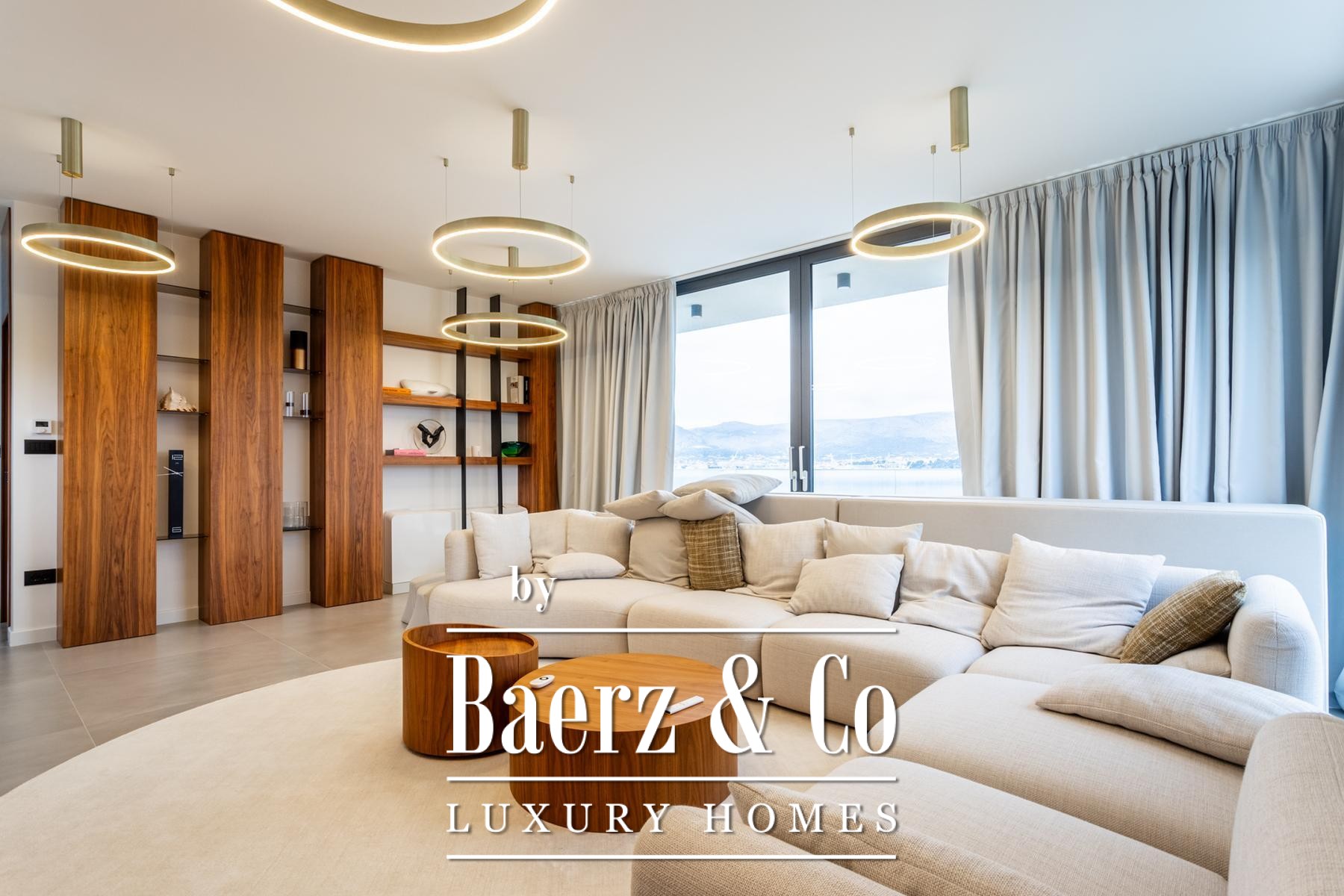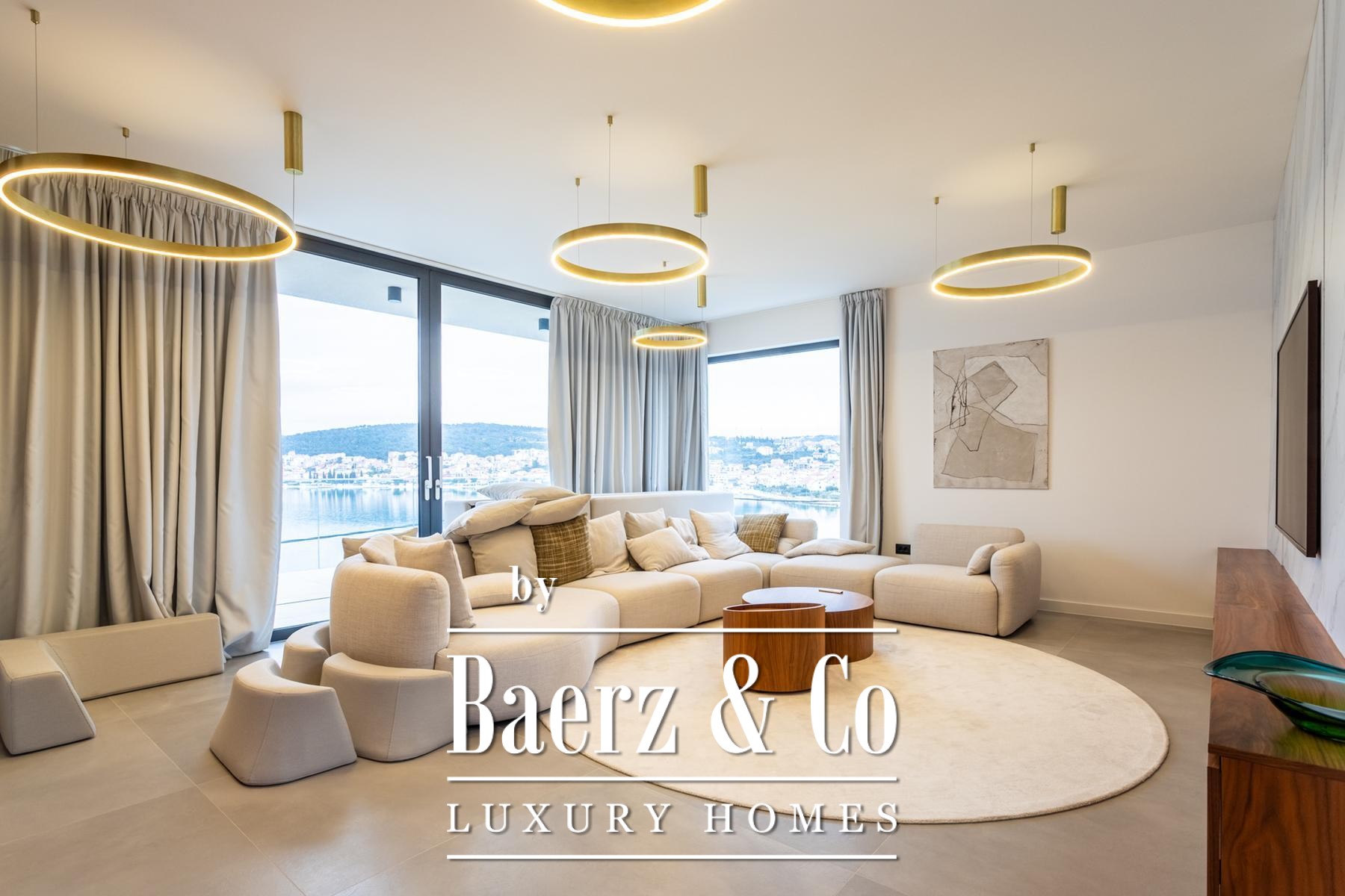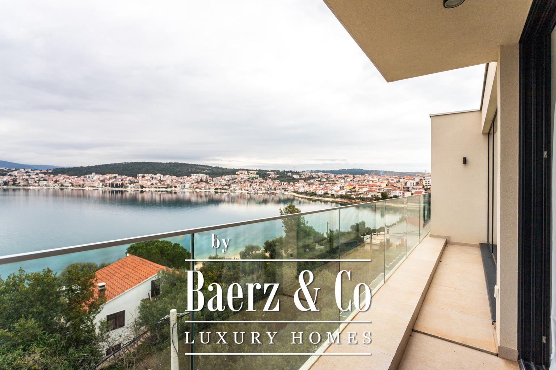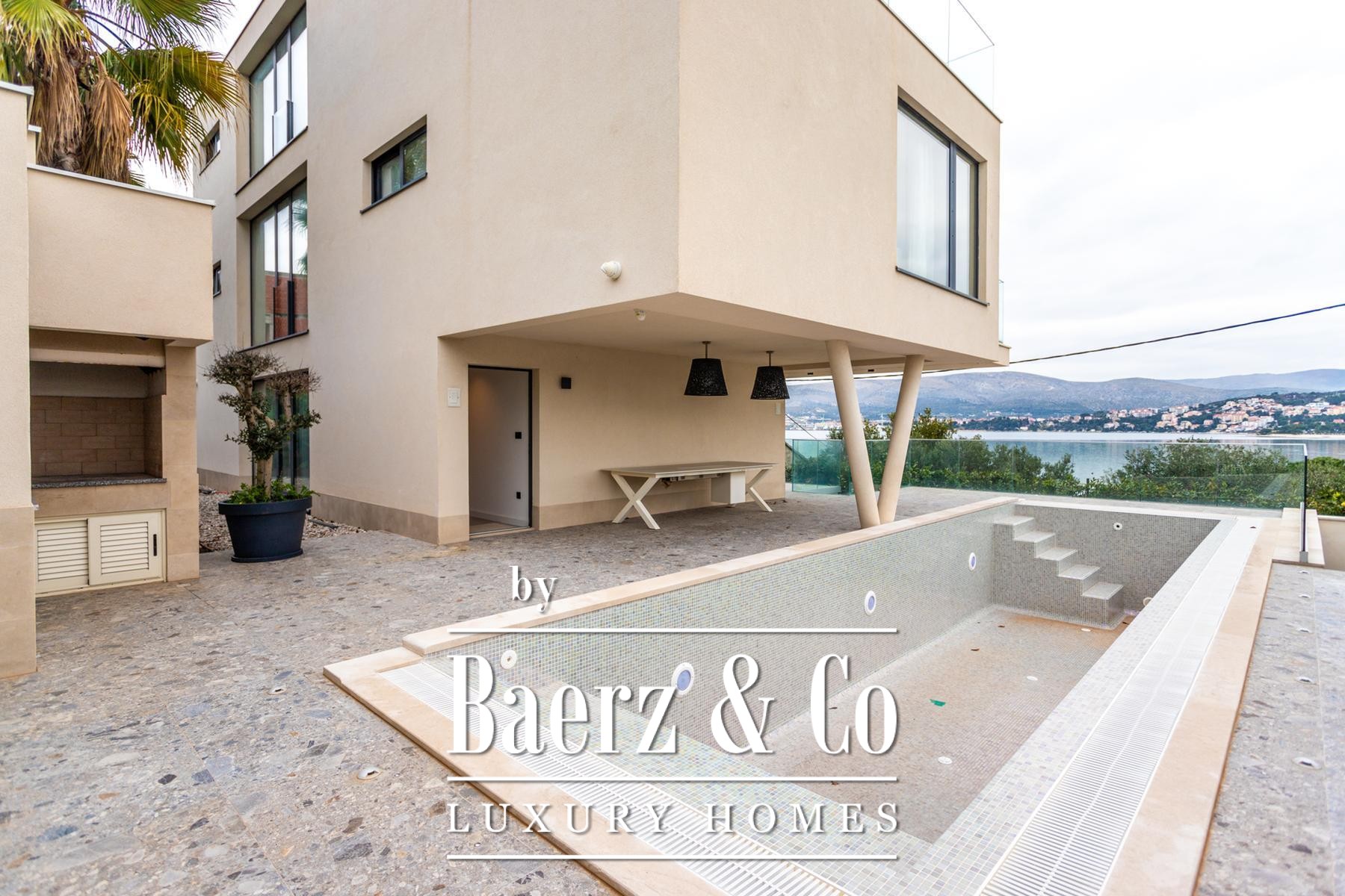 Villa Okrug met panoramisch uitzicht ligt op slechts vijftig meter van het kiezelstrand en biedt serene rust en elegant wonen in Kroatië. Deze moderne villa beschikt over 400 m² zorgvuldig ontworpen woonruimte op een perceel van 470 m². De architectuur benadrukt licht, openheid en een vloeiende verbinding tussen de ruimtes.
