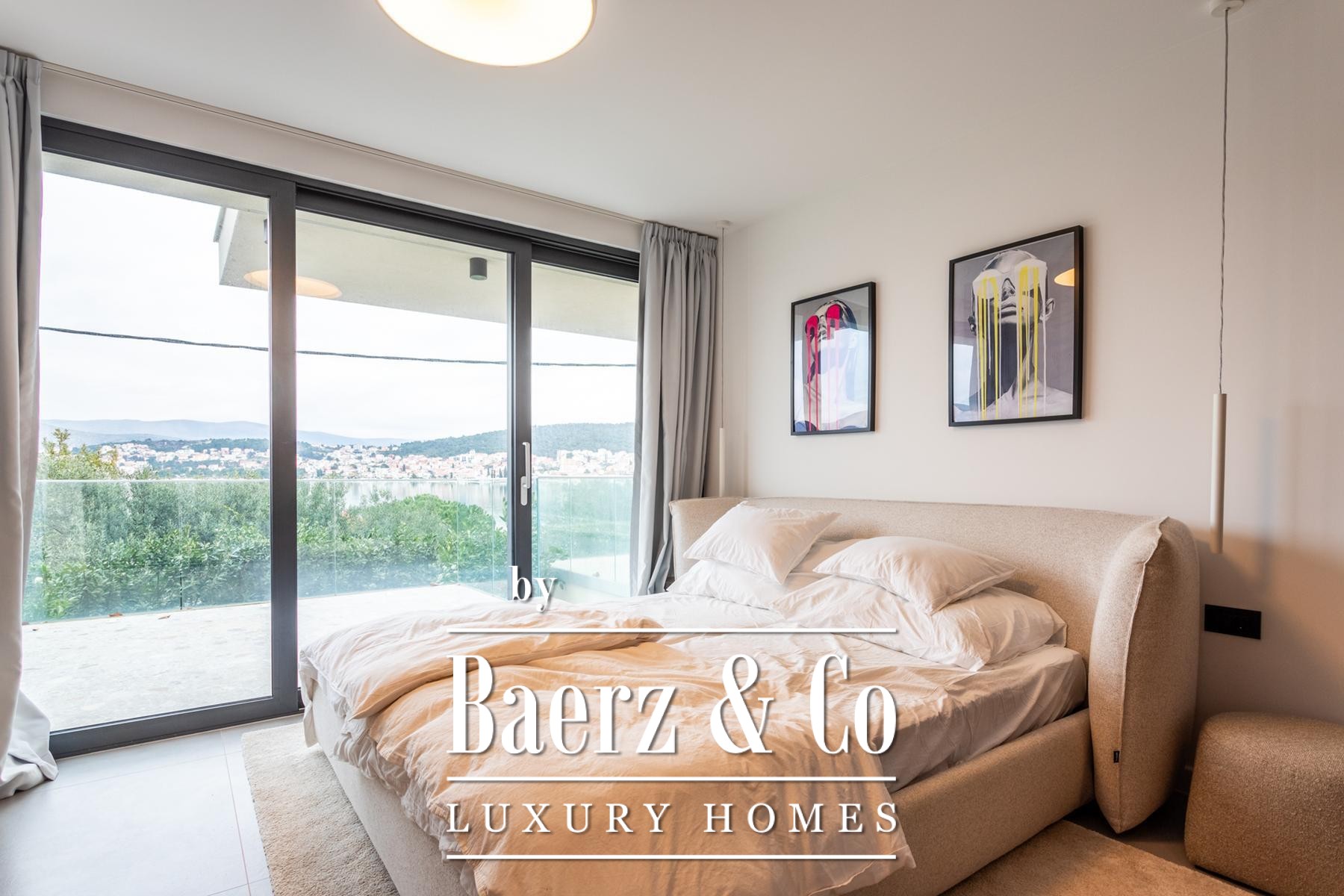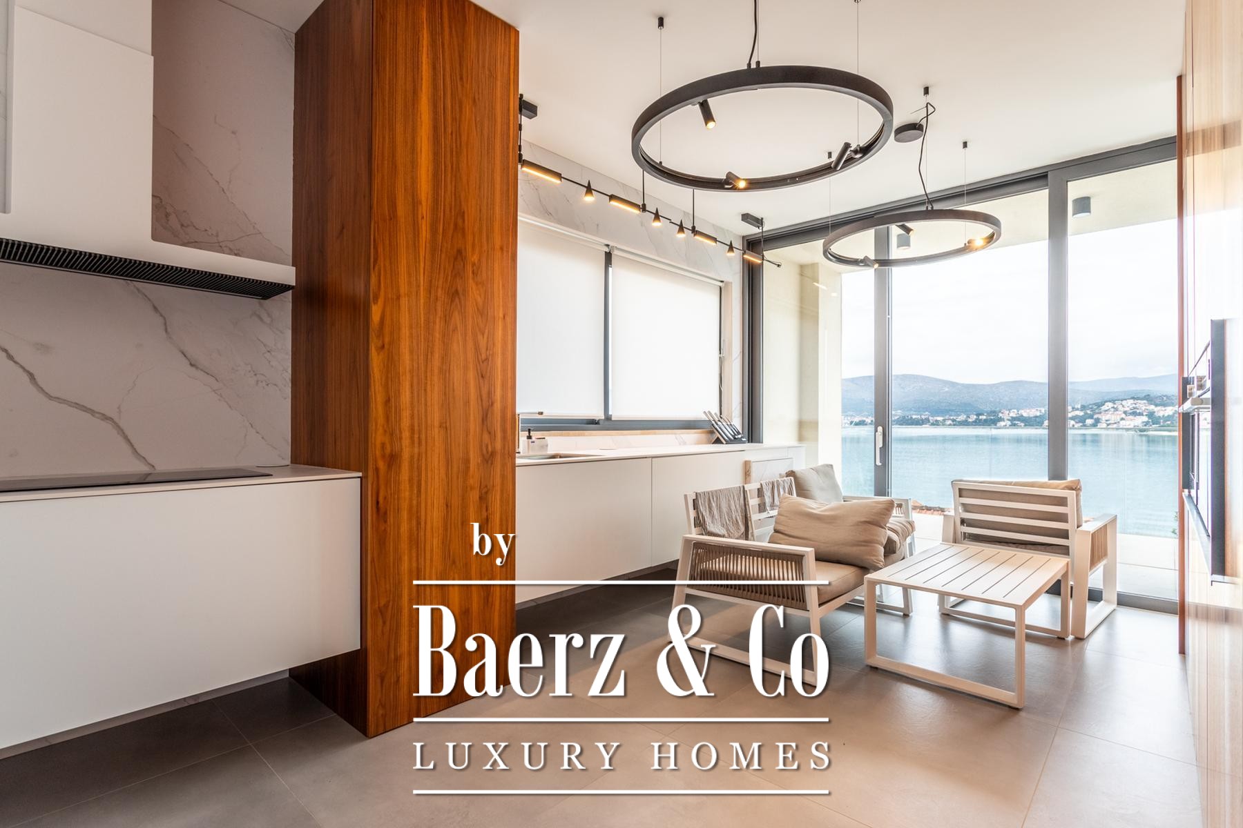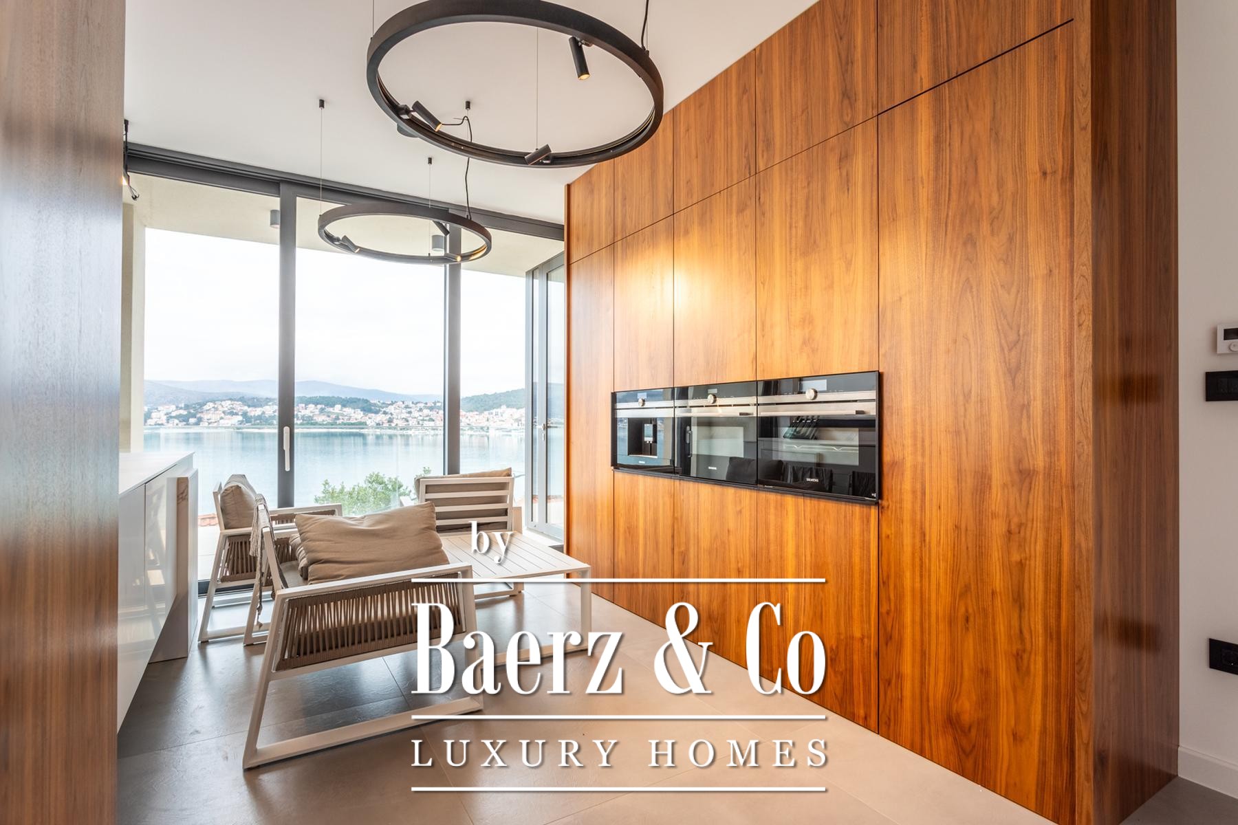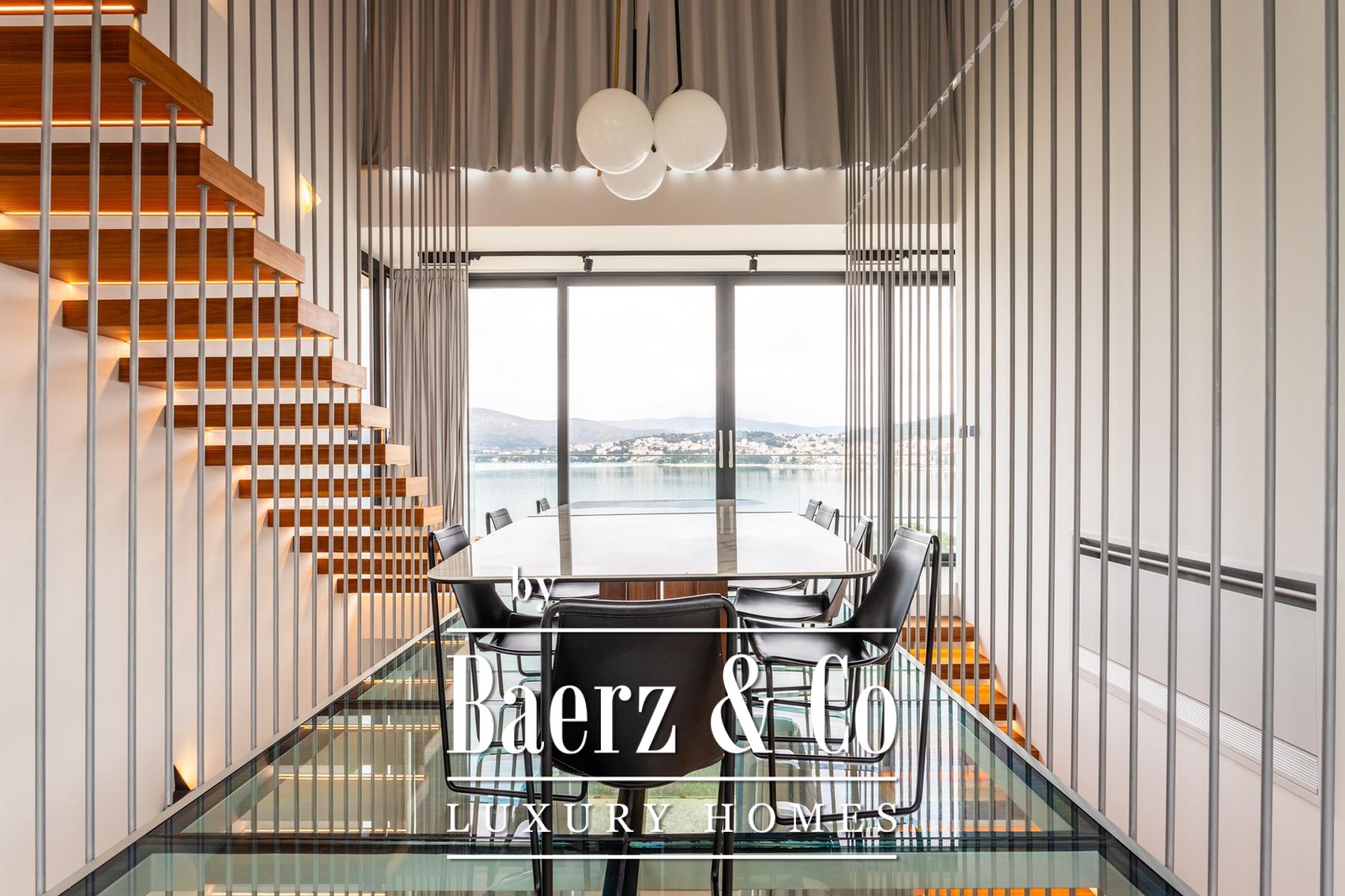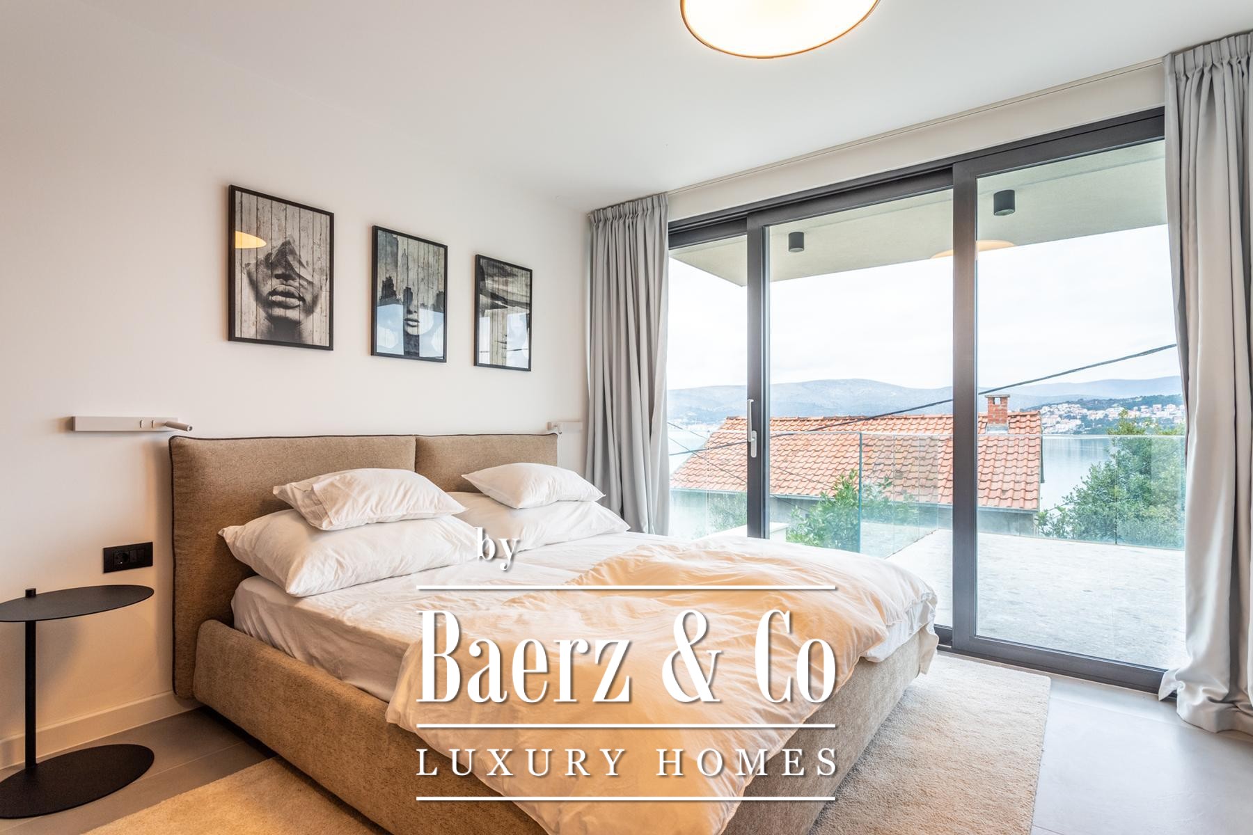 Villa Okrug met panoramisch uitzicht ligt op slechts vijftig meter van het kiezelstrand en biedt serene rust en elegant wonen in Kroatië. Deze moderne villa beschikt over 400 m² zorgvuldig ontworpen woonruimte op een perceel van 470 m². De architectuur benadrukt licht, openheid en een vloeiende verbinding tussen de ruimtes.