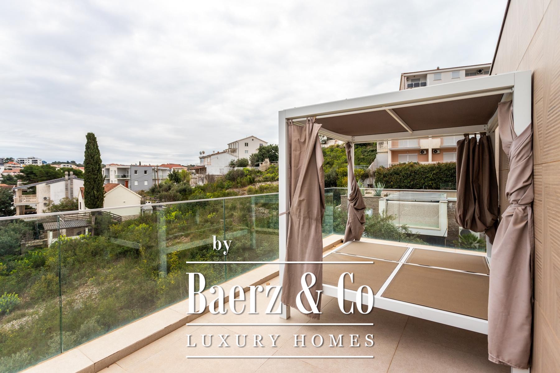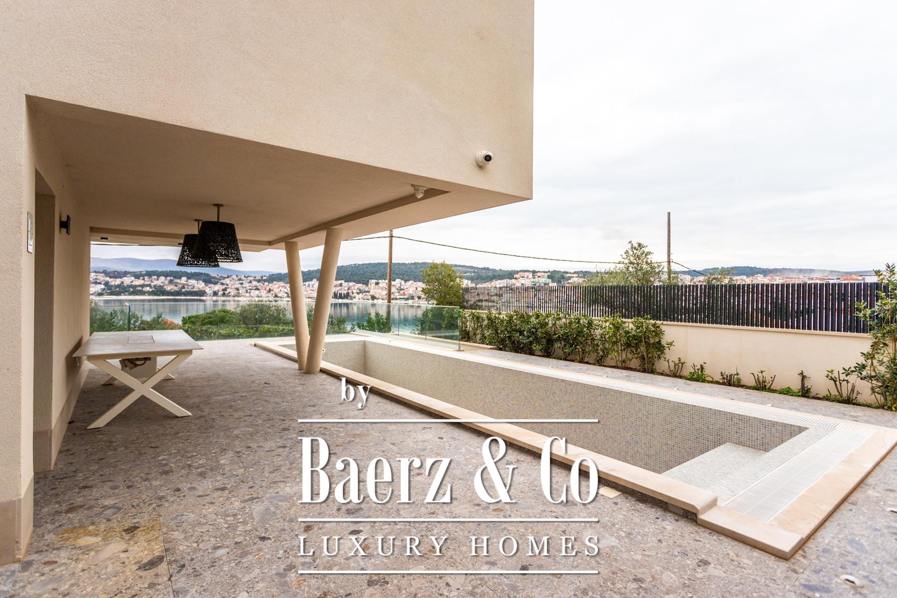 Drie eigen parkeerplaatsen buiten en een mediterrane tuinaanleg onderstrepen de moeiteloze elegantie van de villa. Volledige airconditioning en vloerverwarming verhogen het comfort verder. De ligging dicht bij het centrum van Okrug en het strand zorgt voor gemakkelijke bereikbaarheid en behoudt privacy. Villa Okrug met panoramisch uitzicht nodigt uit tot verfijnd wonen, op een steenworp afstand van de Adriatische kust.