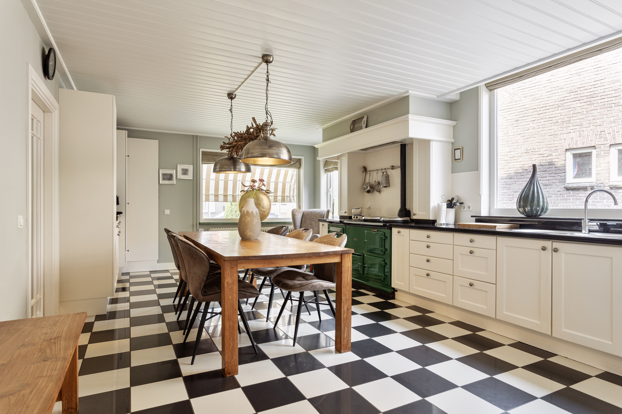 Begane grond: entree, royale hal met trappenhuis en toilet met fonteintje. Via deze centrale hal is er toegang tot de eerste woon-/zit-/hobbykamer en ook toegang tot de royale woonkeuken welke is uitgerust met diverse inbouwapparatuur zoals een koelkast, vaatwasser, gave AGA kookplaat met ingebouwde ovens, afzuigkap en volop bergruimte in de vele kasten. Via de keuken is er toegang tot de provisiekelder van ca. 10,3m². Door naar de tuingerichte woonkamer met openslaande tuindeuren waardoor er prachtig uitzicht ontstaat op de tuin, sfeervolle openhaard en nog een separate ruimte welke momenteel is ingericht als tv-kamer maar ook uitermate geschikt is voor bijvoorbeeld hobbymatig gebruik of een speelkamer. Tal van mogelijkheden door het diverse aanbod aan ruimtes. Via de zij-entree van de woning kom je direct in de bijkeuken met aansluiting voor de wasmachine-/droger én is er nog een stenen berging met extra bergruimte. In deze berging zit tevens de trap naar een extra ruimte welke nu als kantoor fungeert. Door de dakkapel en dakramen is deze ruimte ook perfect voor bijvoorbeeld een extra slaapkamer.