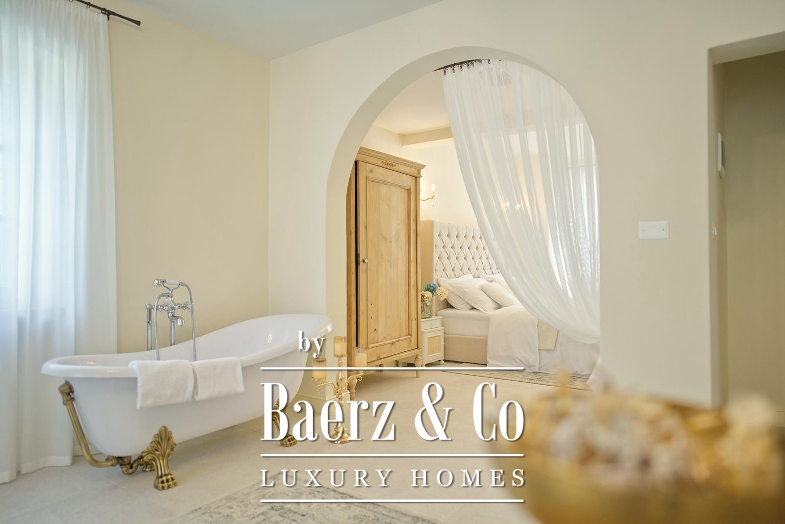 Op de bovenverdieping bieden zes tweepersoonsslaapkamers privé-heiligdommen, bekroond door een Deluxe suite met uitzicht op het glooiende landschap. Elke suite combineert authentiek vakmanschap met moderne voorzieningen als vloerverwarming op warmtepomp, airconditioning en volledige multimedia-integratie. Vijf badkamers staan borg voor verfijnd comfort.