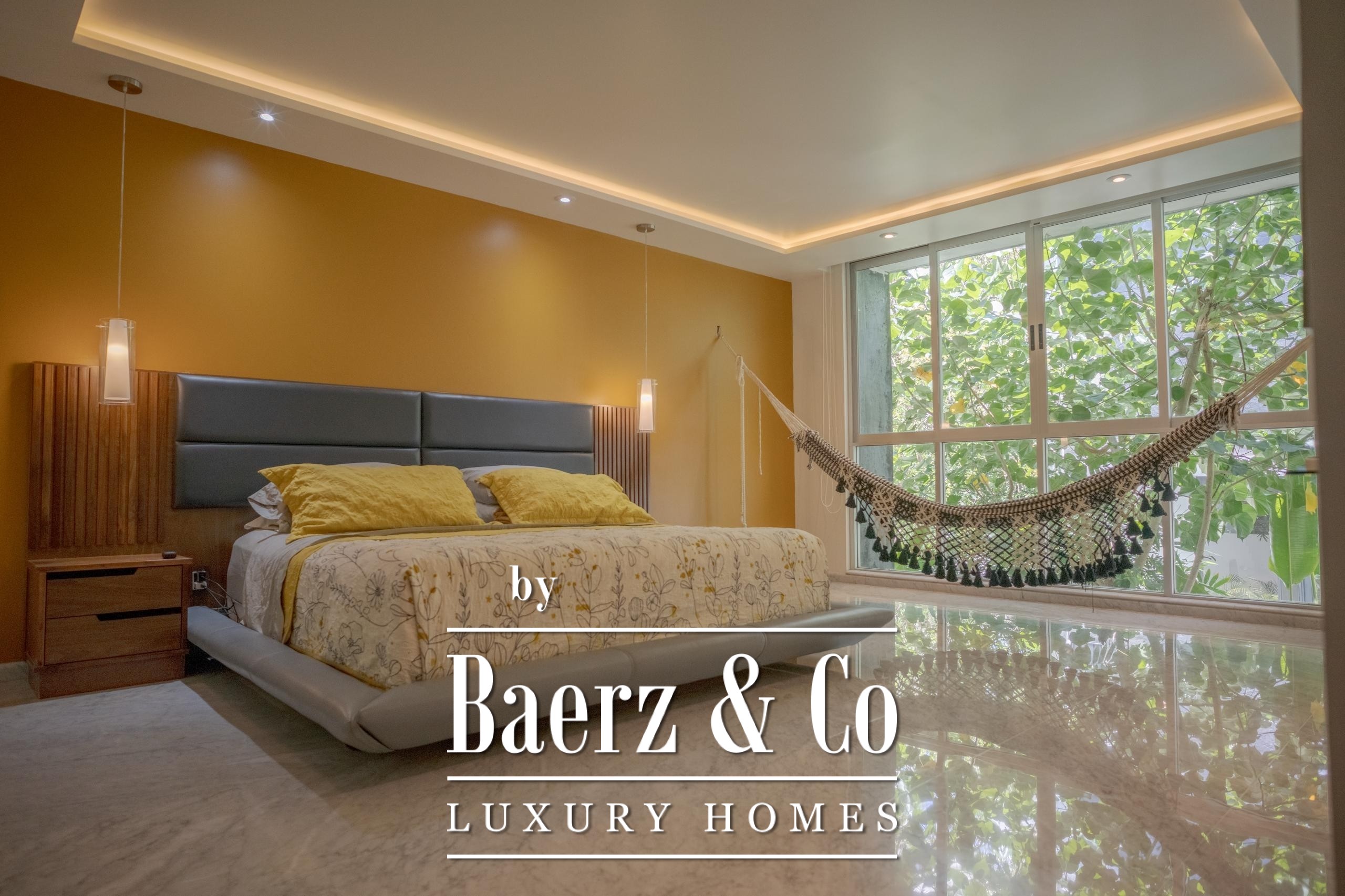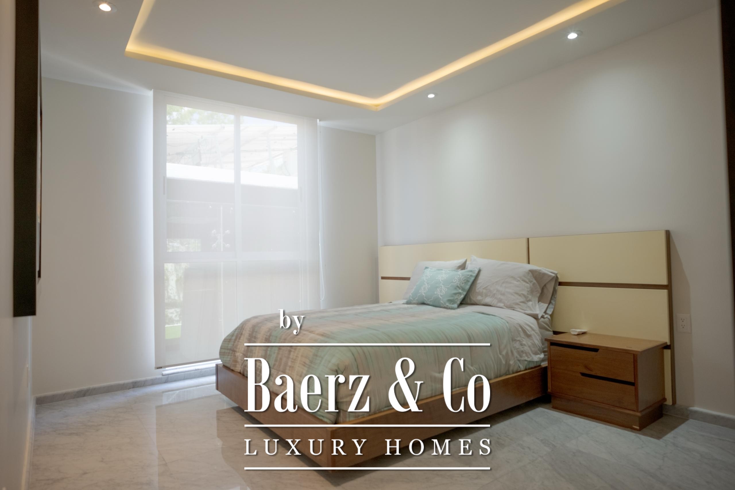 La recámara principal es un verdadero oasis: amplio walk-in closet, baño con doble lavamanos, ducha y un elegante jacuzzi para dos personas. Además, encontrarás dos recámaras adicionales, cada una con baño privado, clósets y ventanas panorámicas que llenan los espacios de luz natural.