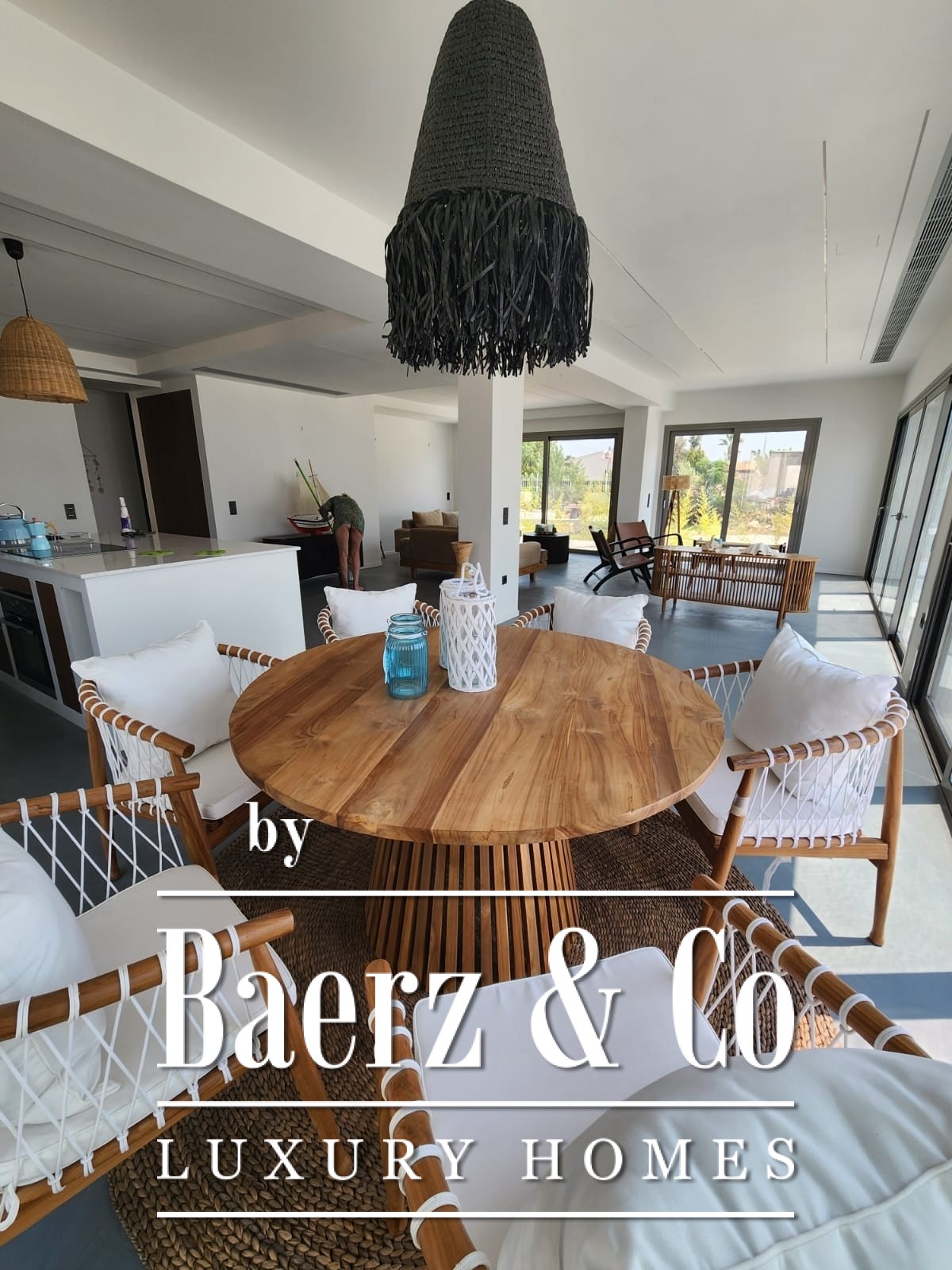 The property features four spacious master bedrooms, each designed for comfort and privacy. The interiors are fully furnished with handcrafted furniture from Indonesia, creating a warm and refined atmosphere that blends elegance with natural textures. The home is fully equipped and ready for immediate use, offering a true turnkey experience.