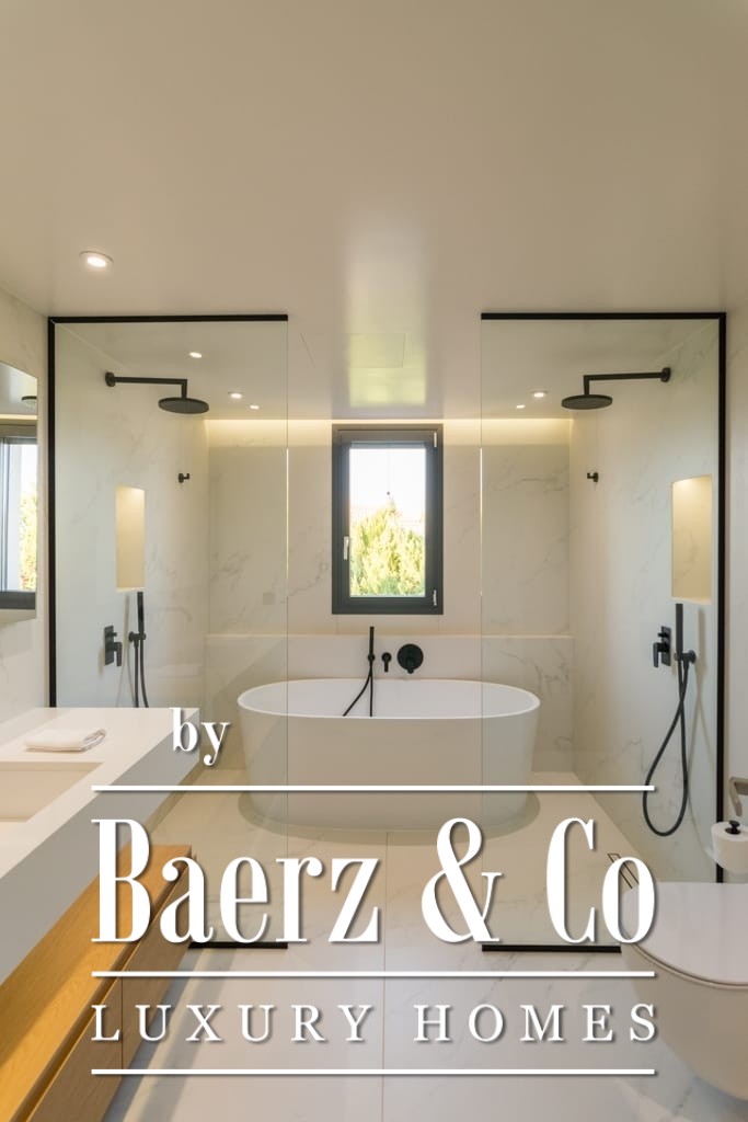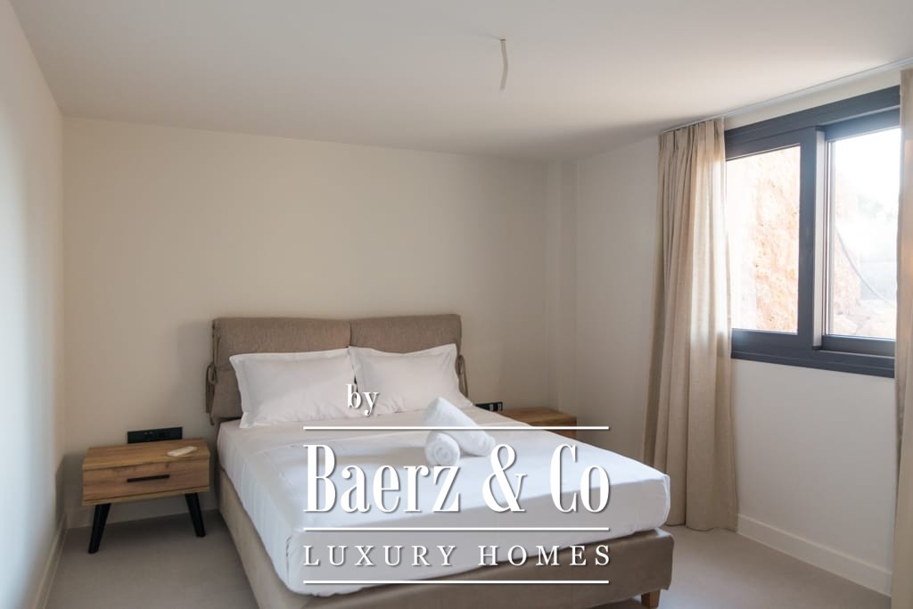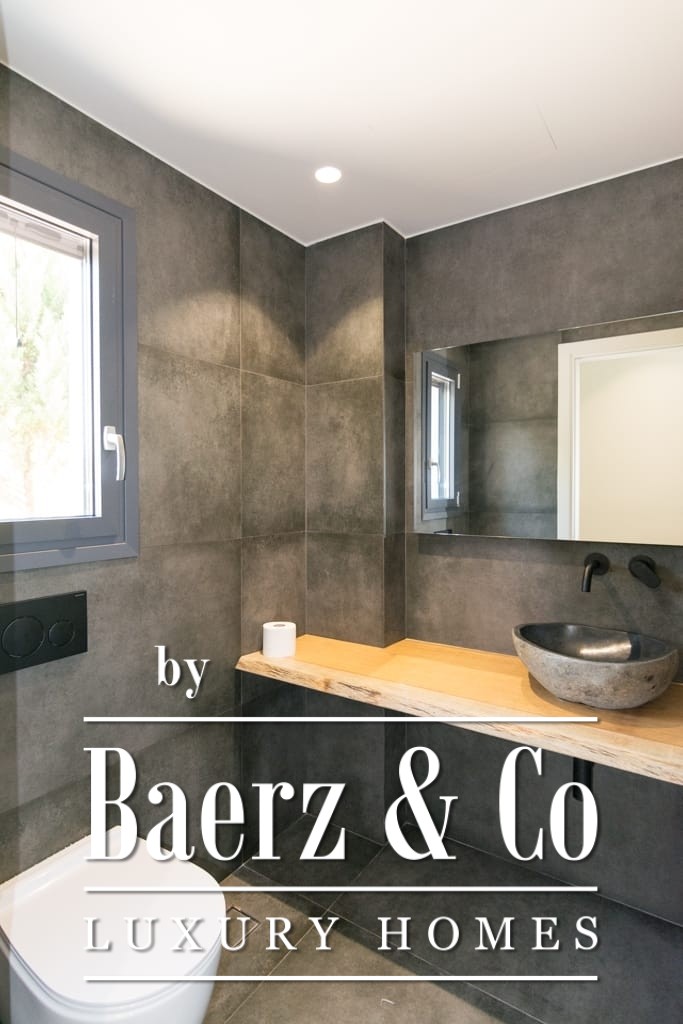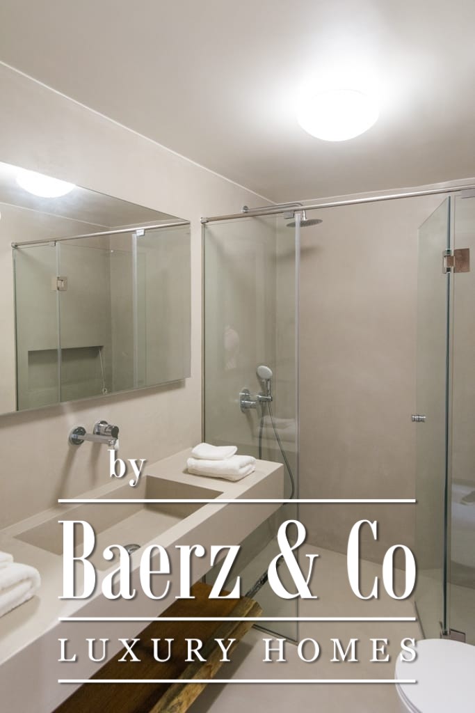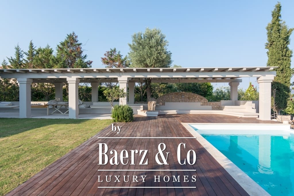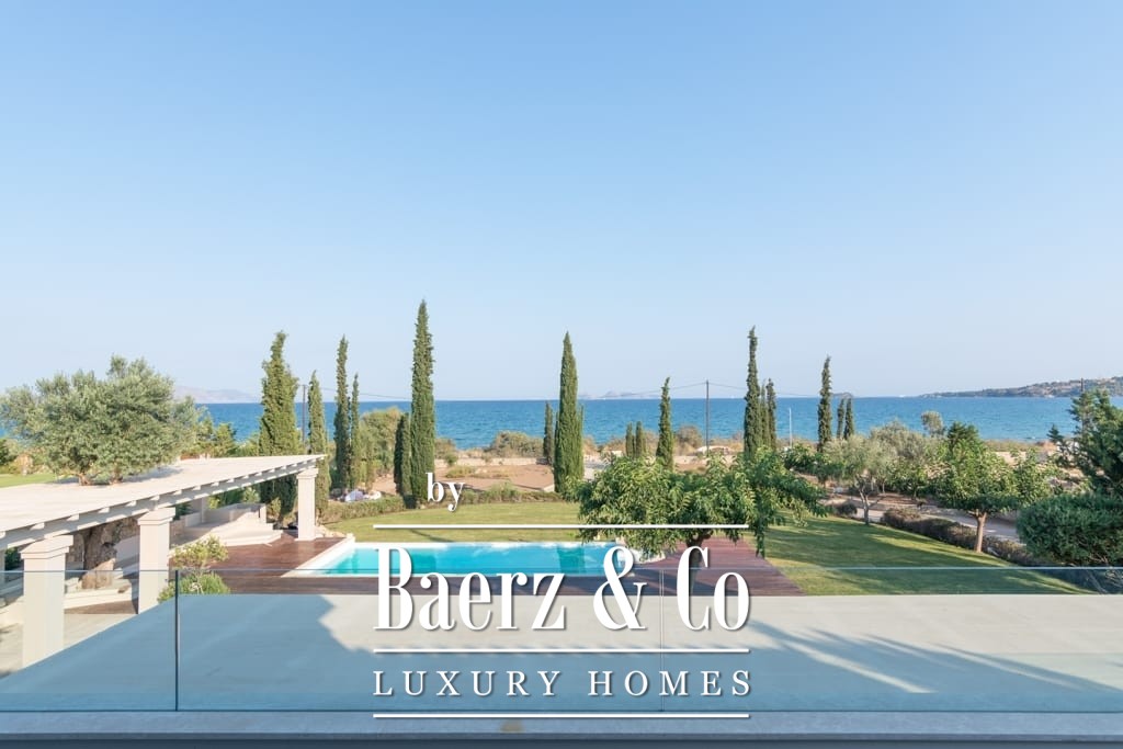 Het interieur ademt ingetogen luxe en combineert tijdloos mediterraan karakter met hedendaags comfort. Opvallende houten dakdetails en grootschalige antieke marmeren vloeren creëren een tastbare elegantie, terwijl royale raampartijen het daglicht overvloedig laten binnenvallen in de ruime ontvangstruimtes. De woon- en eetgedeeltes lopen naadloos over in brede terrassen en royale balkons, die panoramisch uitzicht op zee bieden richting Spetses, Hydra en de verre horizon.