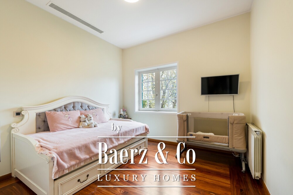 Ieder detail ademt intentie: edele houten vloeren, imposant marmer en met de hand afgewerkte oppervlakken geven elke ruimte een unieke beleving. Centraal in de woning bevinden zich meerdere stijlvolle woonkamers, een elegant kantoor voor geconcentreerd werken en een keuken die is ontworpen voor zowel dagelijkse routines als ontspannen samenzijn. De soepele overgang naar buiten vergroot het ruimtelijke gevoel en onthult een klassieke Engelse tuin die uitnodigt tot verstilling in een zorgvuldig vormgegeven omgeving.