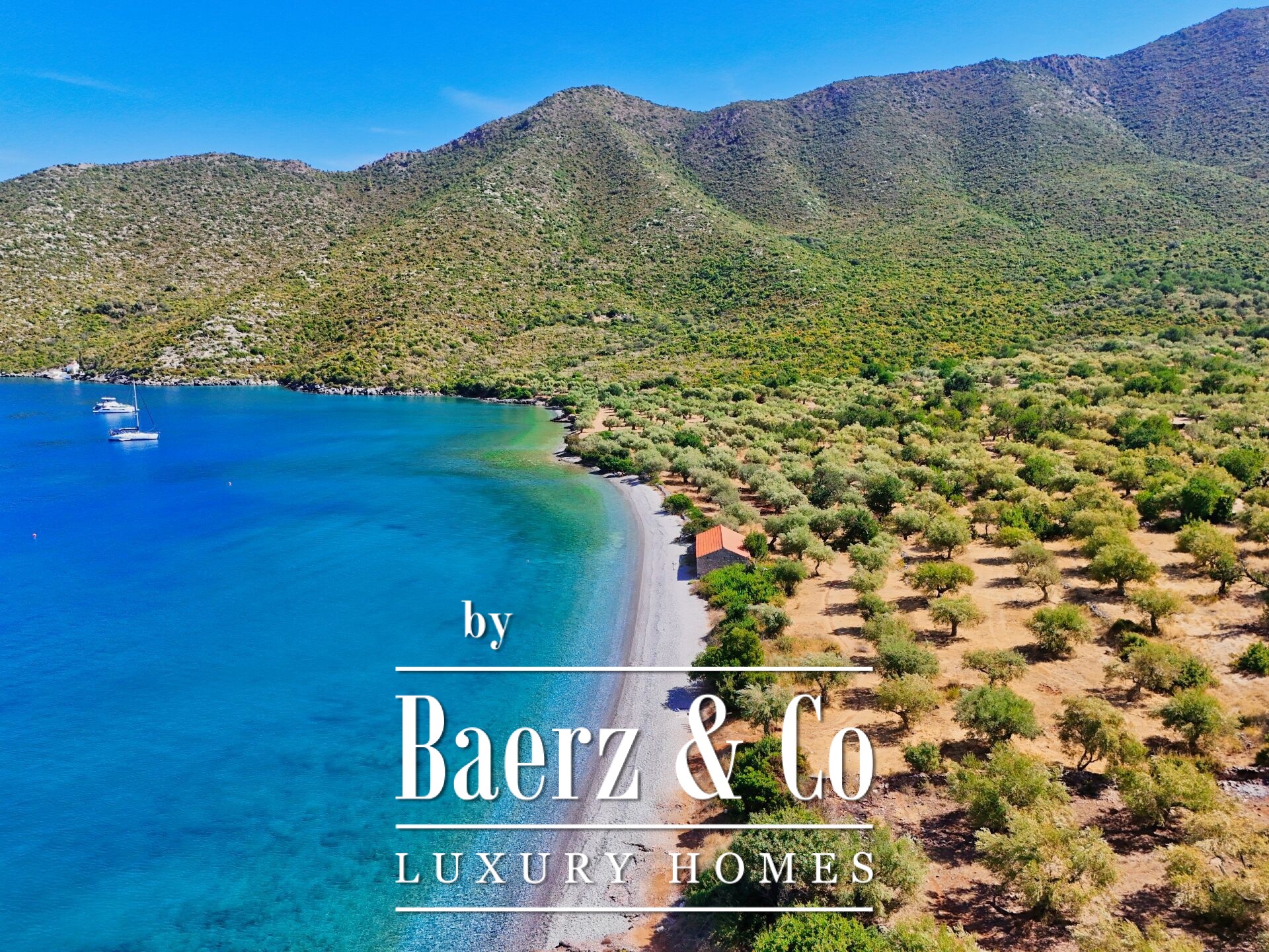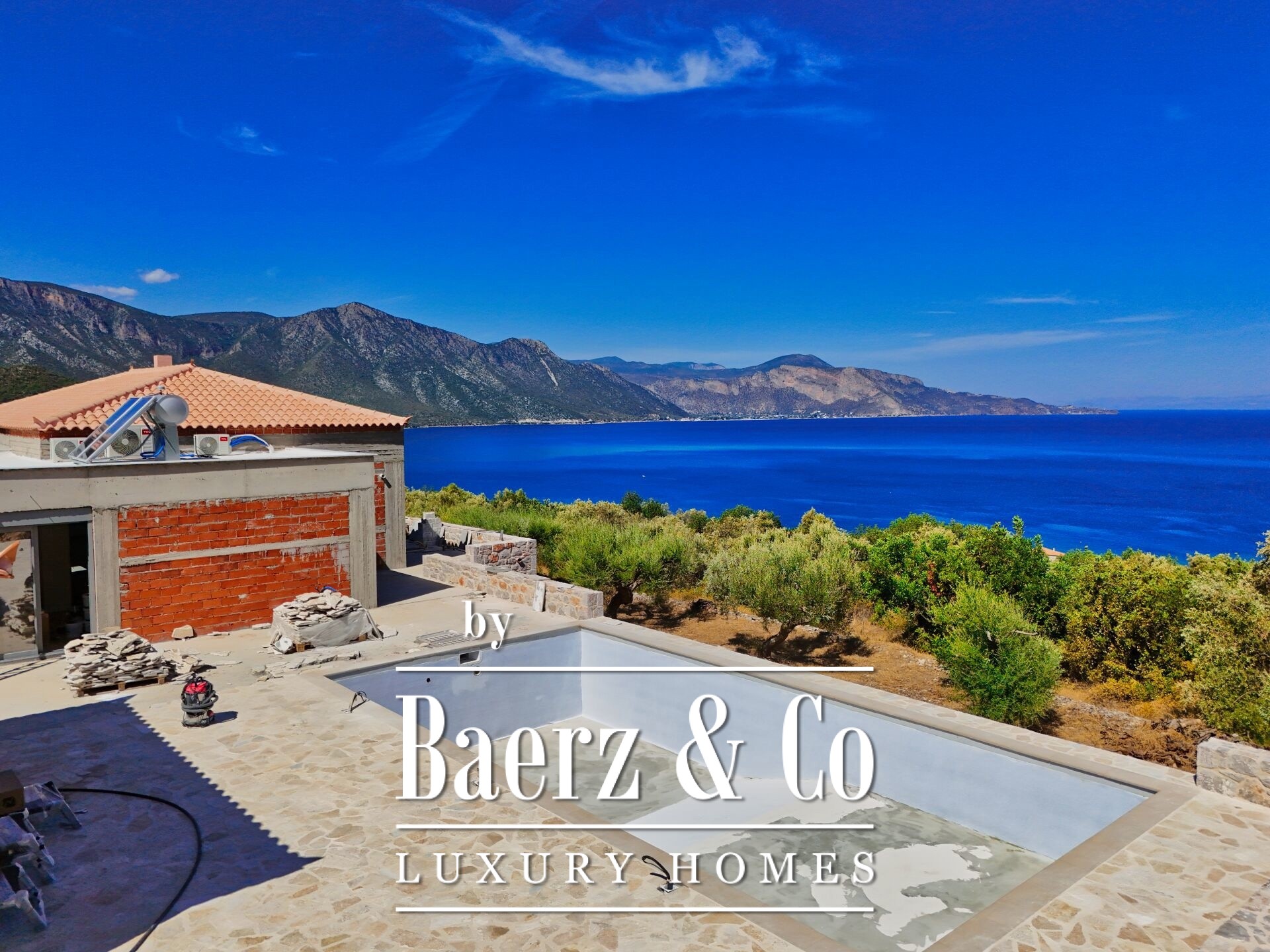 In a location of unique beauty, within a lush olive grove and with unobstructed, magnificent views of the sea and the mountain, a detached house of 235 sq m is available for sale, within a privately owned plot of 4,200 sq m. The house harmoniously combines traditional stone elements with modern lines, while the large internal height further highlights its special, traditional character. It is developed on two levels. On the ground floor, a 70 sq m guest house is provided with a living room, kitchen, bedroom and bathroom, as well as a 20 sq m covered parking