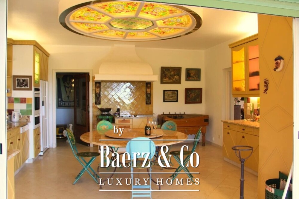Boven bevinden zich vier slaapkamers met eigen badkamer die uitkijken over de Middellandse Zee, waarbij een vleugel is gereserveerd voor een master suite met eigen badkamer en werkkamer. Airconditioning, vloerverwarming, elektrische rolluiken en dubbele beglazing zorgen het hele jaar door voor comfort. De villa is doordacht tot in elk praktisch detail, waaronder een centraal stofzuigsysteem en elektrische toegangspoort. De ligging is discreet maar dichtbij de levendigheid van Ramatuelle en het strand; dit zorgt voor verbinding en geborgenheid. Wie een luxe villa zoekt in Ramatuelle, vindt hier een eigendom met authentiek Provençaals karakter.