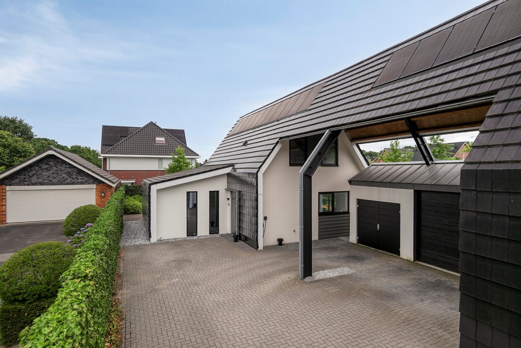 Rondom de woning ligt een fraai aangelegde L-vormige tuin, die maximale privacy en rust biedt. Vanuit de woonkamer en de eetkamer loopt u zo naar buiten, waar u op diverse terrassen geniet van de zon. Een sfeervolle zitkuil en de slimme indeling zorgen ervoor dat u op elk moment van de dag een perfecte plek vindt om te ontspannen. De tuin is met zorg onderhouden en vormt een waar verlengstuk van het woonplezier dat deze woning biedt.