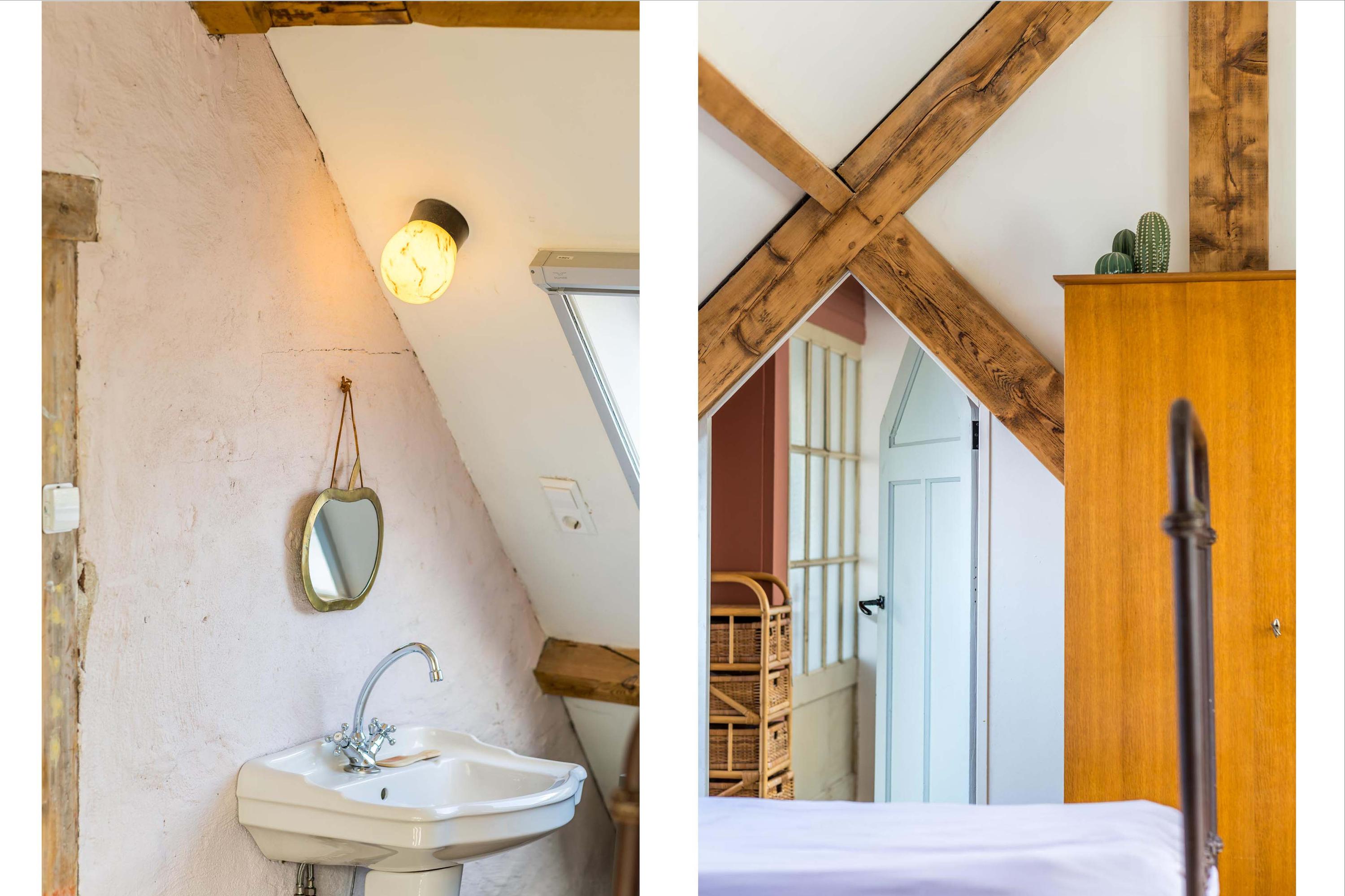 De tweede verdieping biedt drie slaapkamers, een tweede badkamer en nog een apart toilet; één van de kamers beschikt over airconditioning.