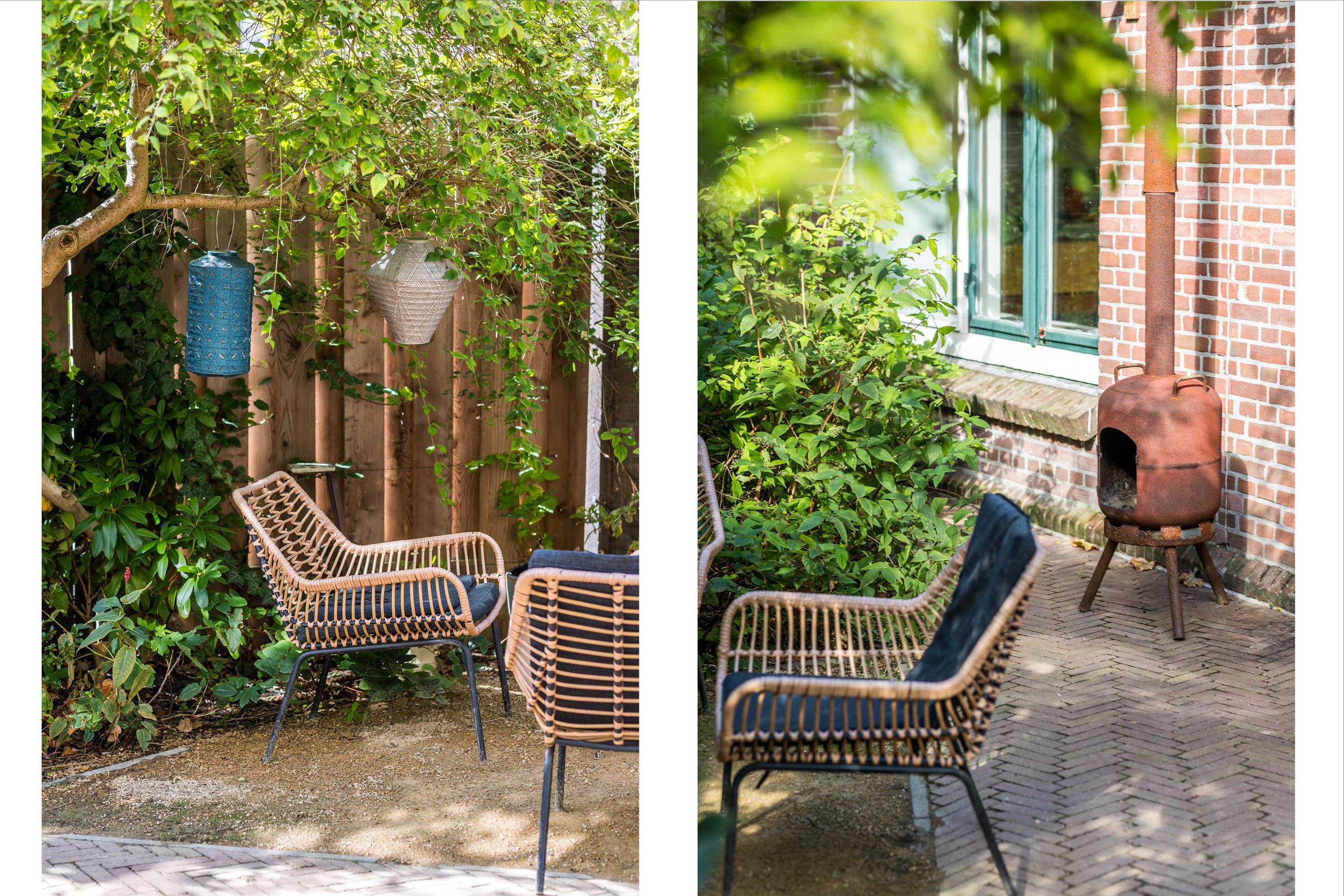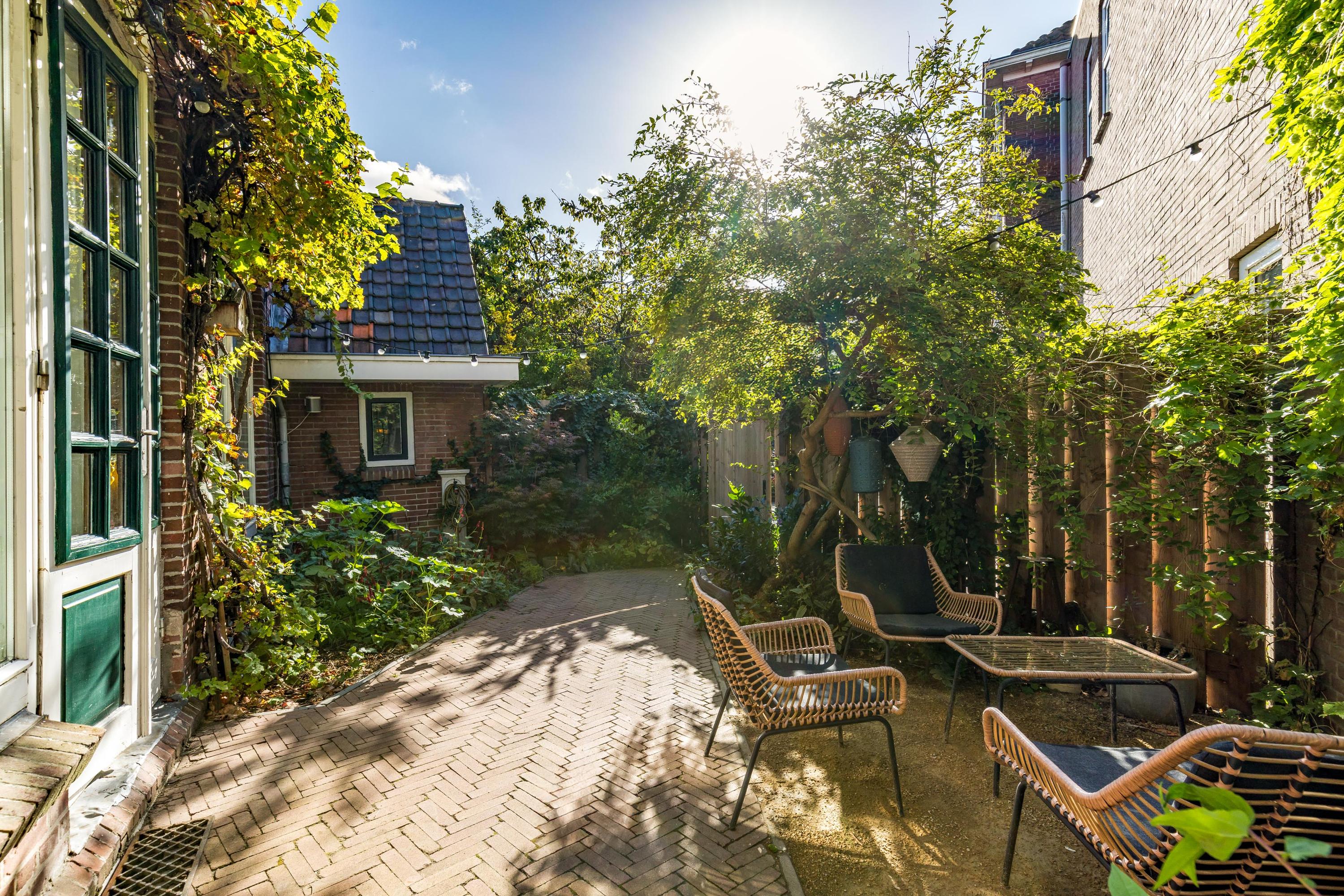 Aan de voorzijde ligt een groene, besloten tuin waar u in de ochtend- en middagzon kunt genieten van rust en privacy. Via een poort is er toegang tot het aangrenzende schoolplein, dat door de bewoners gebruikt mag worden als speelplek voor kinderen of voor gezellige borrels en barbecues met vrienden.