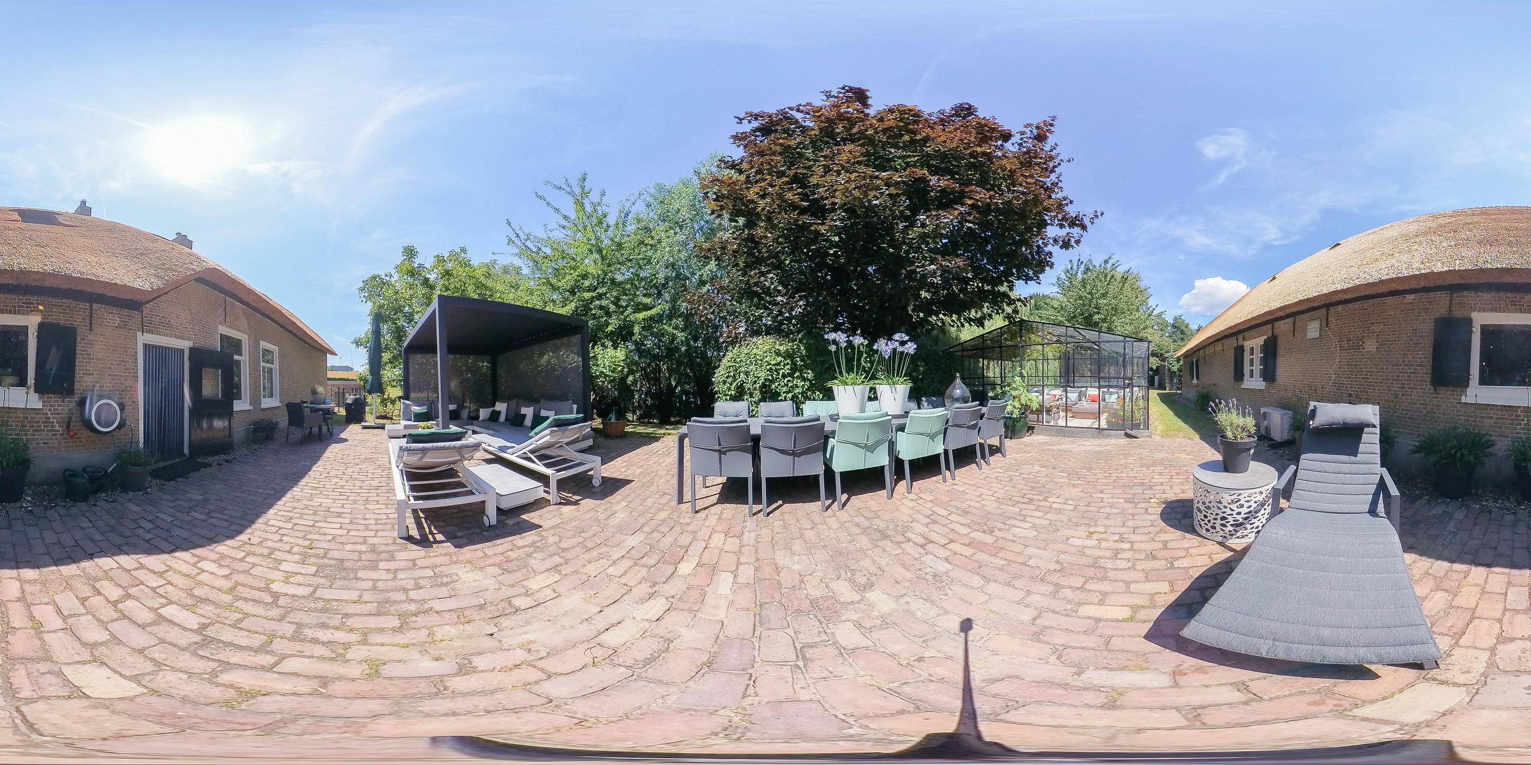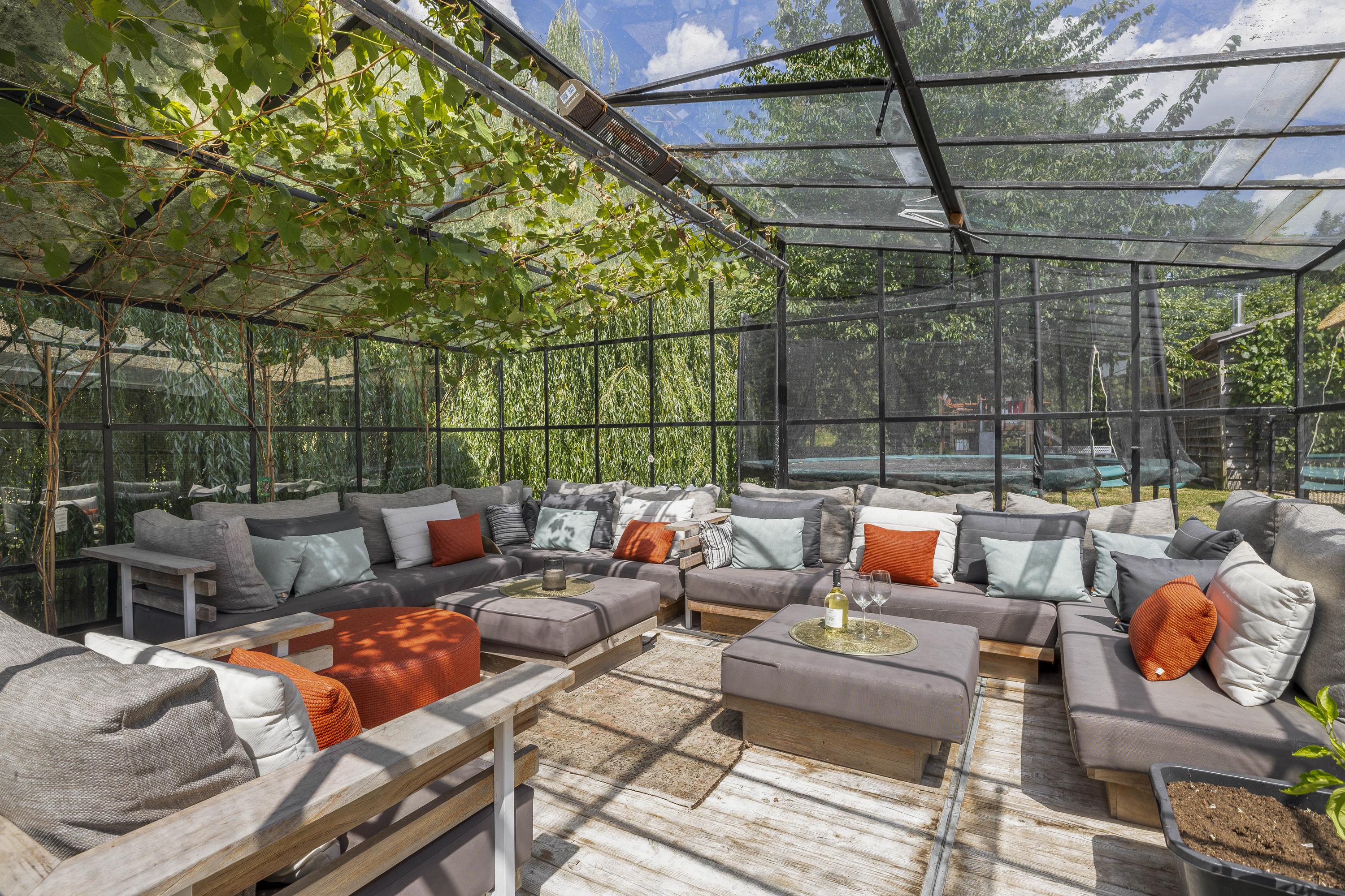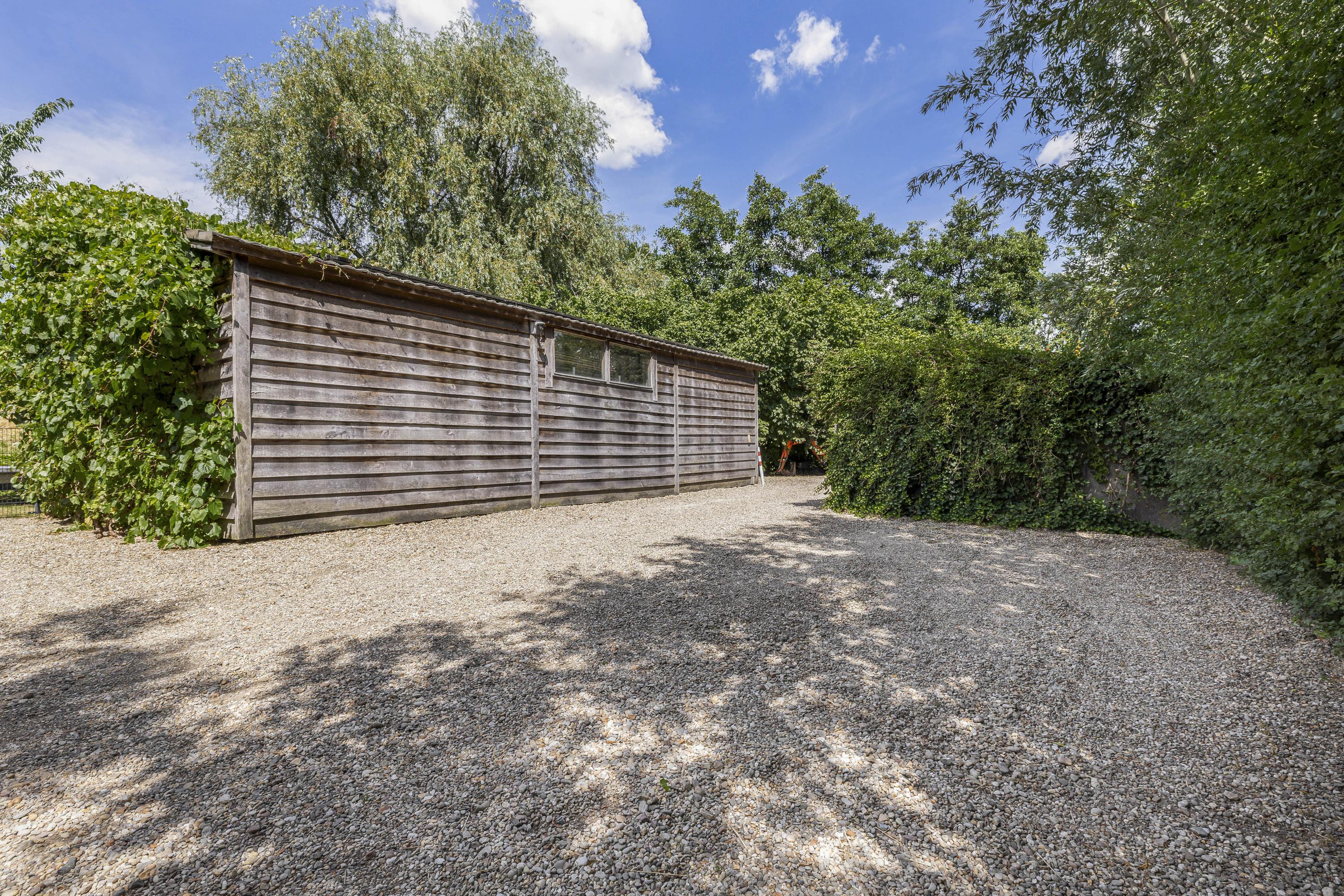 Het erf is voorzien van een royale garage/schuur van ruim 80m², een ruime kas, waar het ook op koelere dagen heerlijk vertoeven is, en een sfeervolle overkapping direct grenzend aan de keuken. Voor paardenliefhebbers zijn er drie paardenboxen aanwezig, in het verleden is er een gedraineerde all-weather rijbak en uitloopbak aangelegd. Het geheel is stijlvol afgezet met een dubbelspaaks hekwerk en toegankelijk via een automatische toegangspoort.