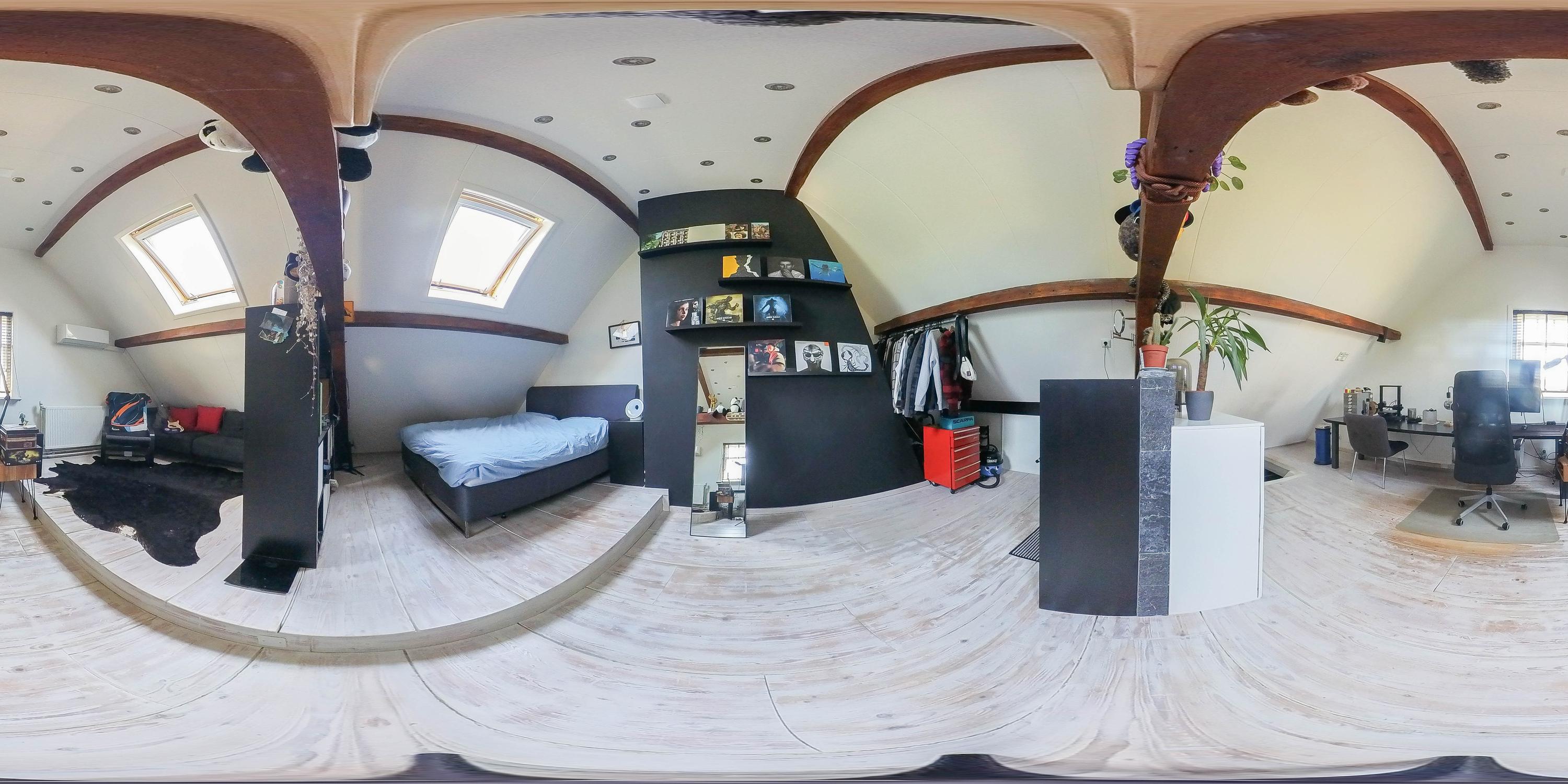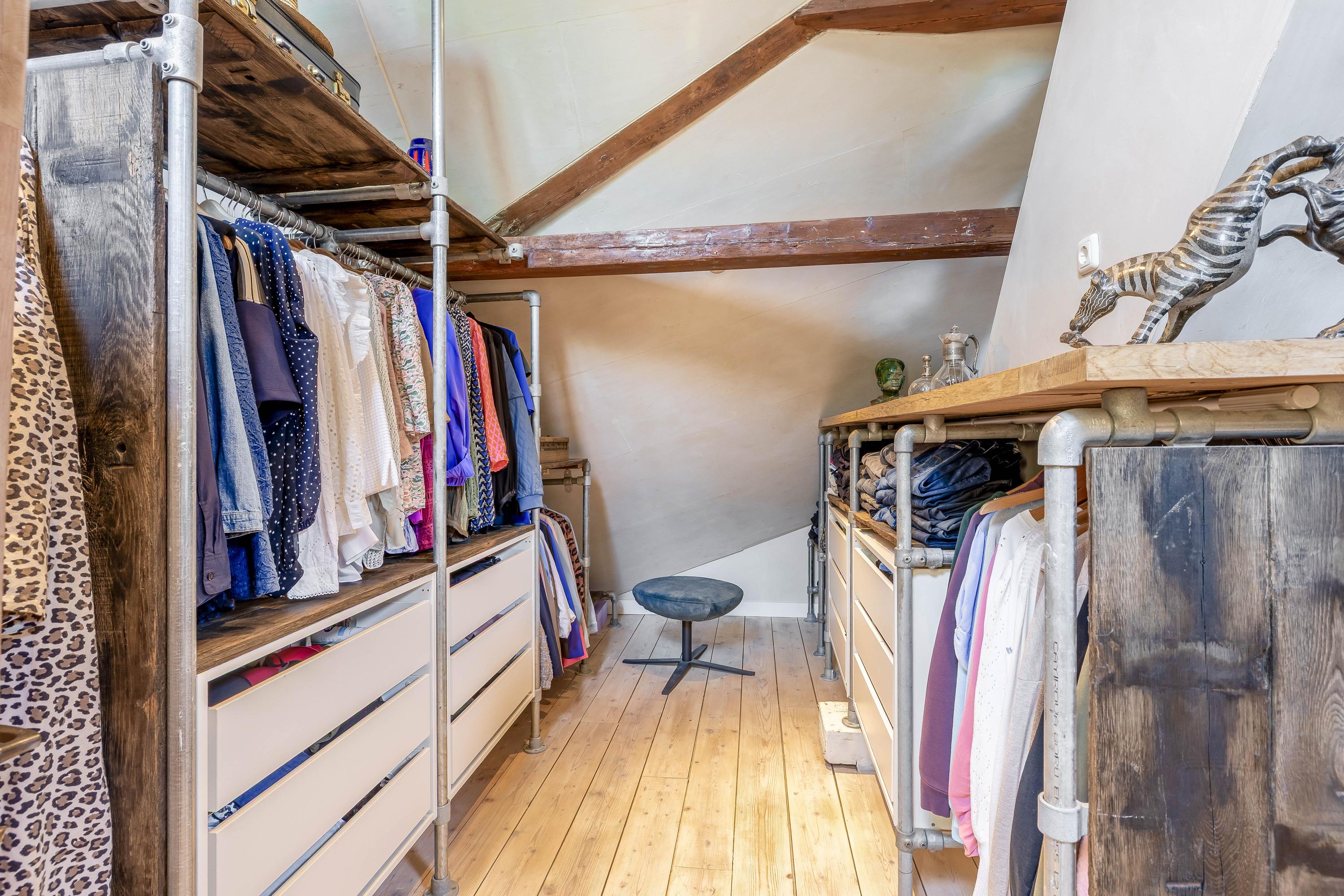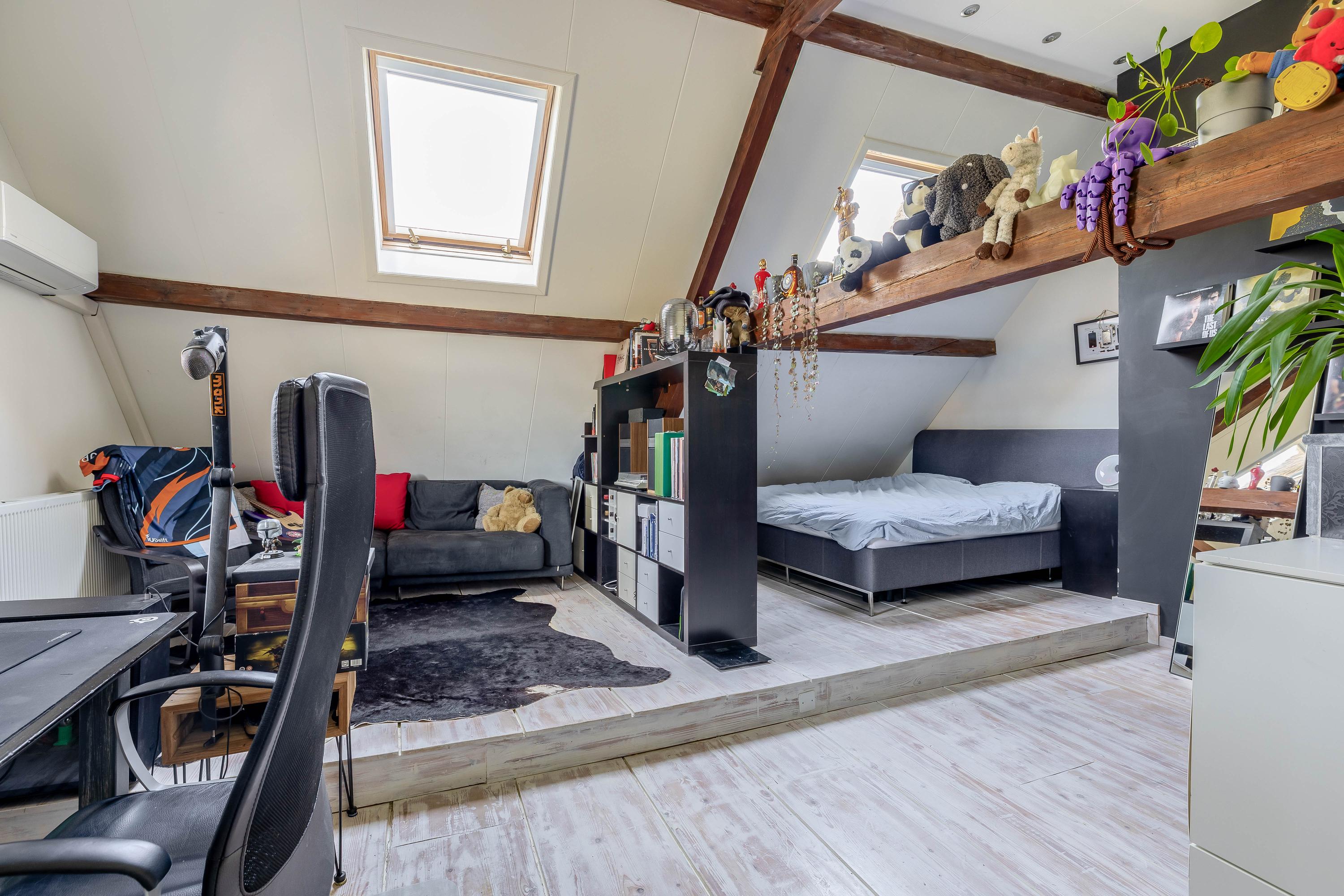 slaapkamer aan voorzijde met 2 Veluxdakramen, houten vloerdelen en veel bergruimte,