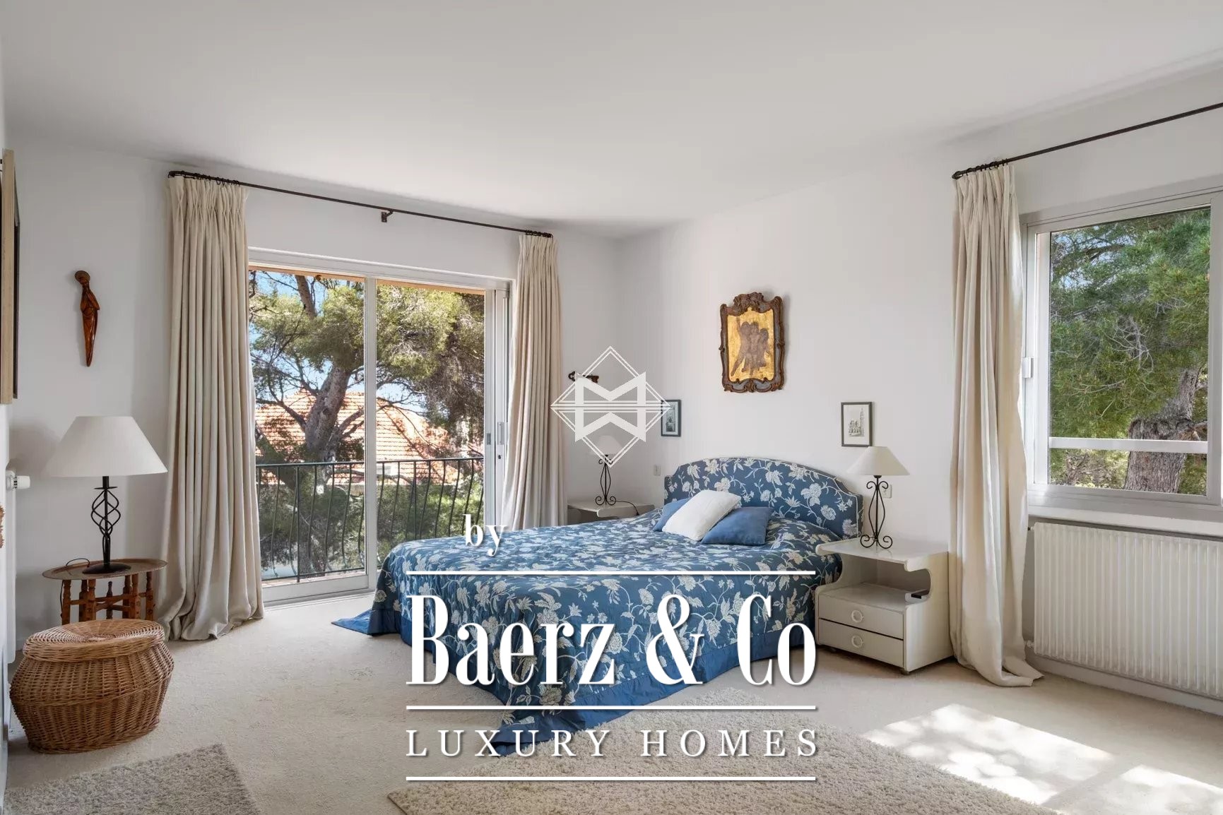 De villa staat op een perceel van 1.012 vierkante meter in een dominante positie en beslaat 341 vierkante meter verdeeld over twee niveaus, waarvan 248 vierkante meter woonoppervlak. Op de eerste verdieping vindt u 4 slaapkamers met aangrenzende badkamers, een ruime woonkamer met eethoek die uitkomt op een groot balkon-terras op het zuiden, evenals een aparte keuken. De begane grond omvat twee slaapkamers die een badkamer delen, een grote wasruimte en een volledig onafhankelijk F2-appartement. Een garage voor twee voertuigen completeert dit niveau.