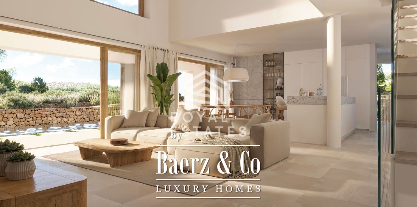 Het ontwikkelconcept vertaalt traditionele Ibizaanse architectuur in een eigentijdse stijl, gekenmerkt door strakke volumes, natuurlijke materialen en een open overgang tussen binnen en buiten. Met een verleende bouwvergunning kan het traject van visie naar realisatie snel worden vervolgd. De geplande villa biedt circa 520 m² woonoppervlak met vijf slaapkamers en vijf badkamers, waaronder aparte suites voor familie en gasten. Het interieurontwerp richt zich op een overvloed aan natuurlijk licht en een vloeiende overgang tussen leefruimte, eetkamer, terrassen en zwembadgedeelte.