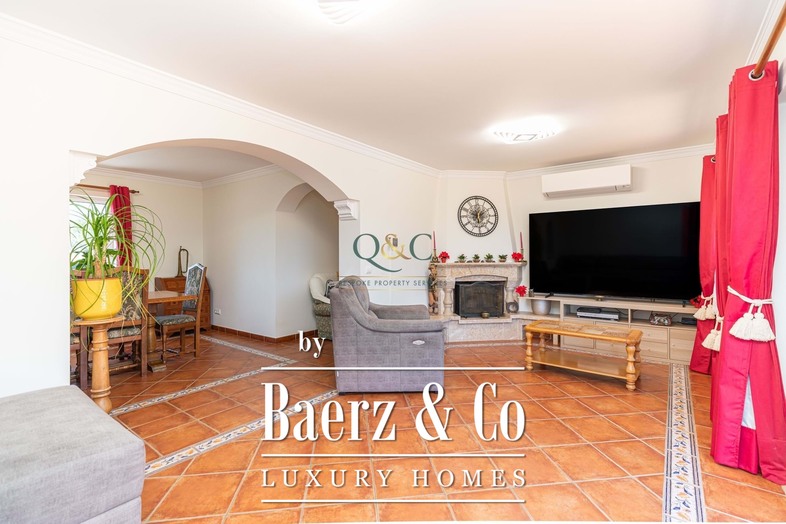 De master suite opent direct naar het terras en een zwembad van 9,5 x 4,5 meter met uitzicht over het landschap en de bergen, terwijl de volledig uitgeruste, ruime keuken uw dagelijkse ritme ondersteunt met bijkeuken en een soepele verbinding met de eetkamer. De woonkamer is licht en verfijnd, voorzien van een open haard en directe toegang tot de tuin. Het hele jaar door comfort wordt gewaarborgd door omkeerbare airconditioning, hoogwaardige afwerkingen en een haard met warmteterugwinning.
