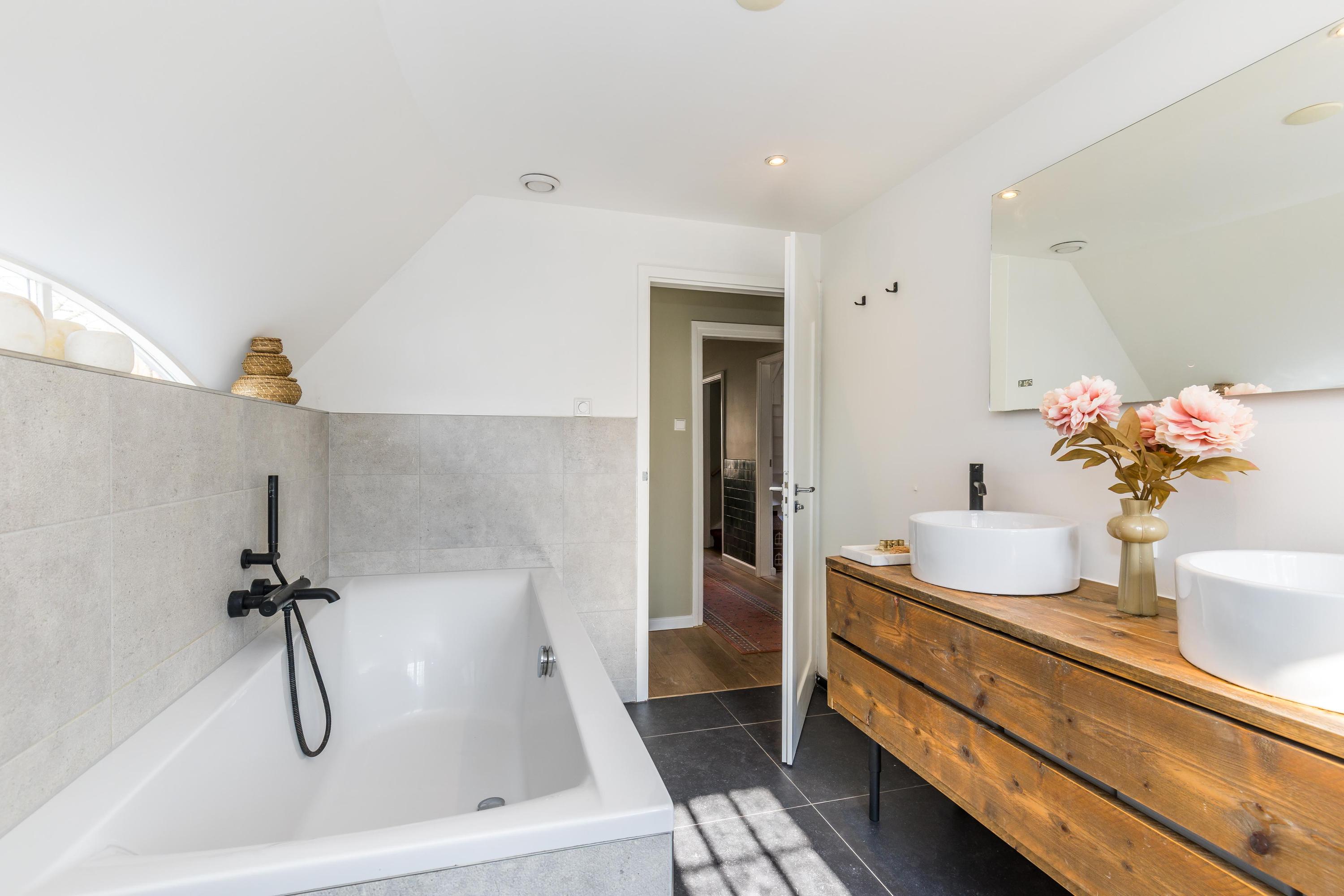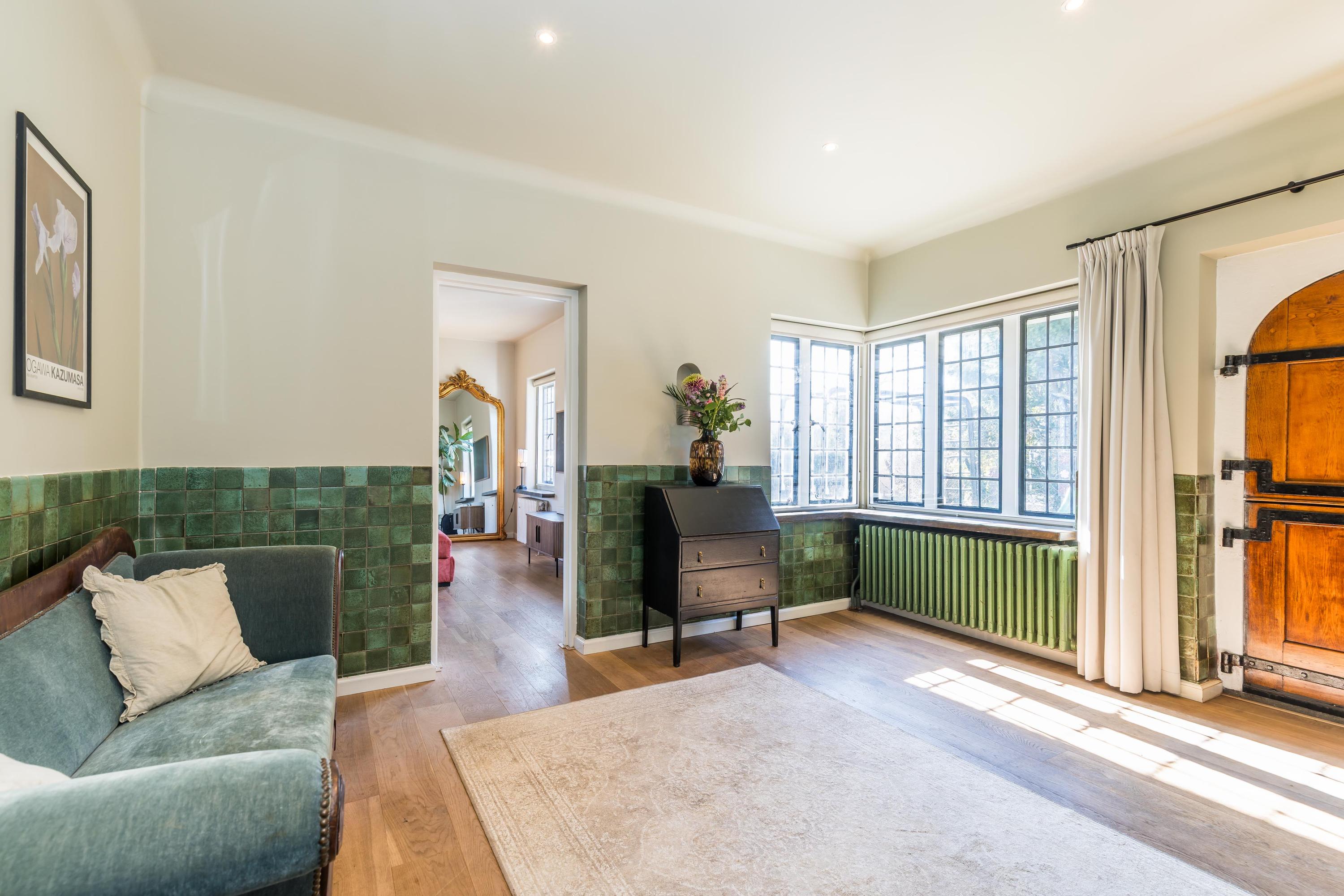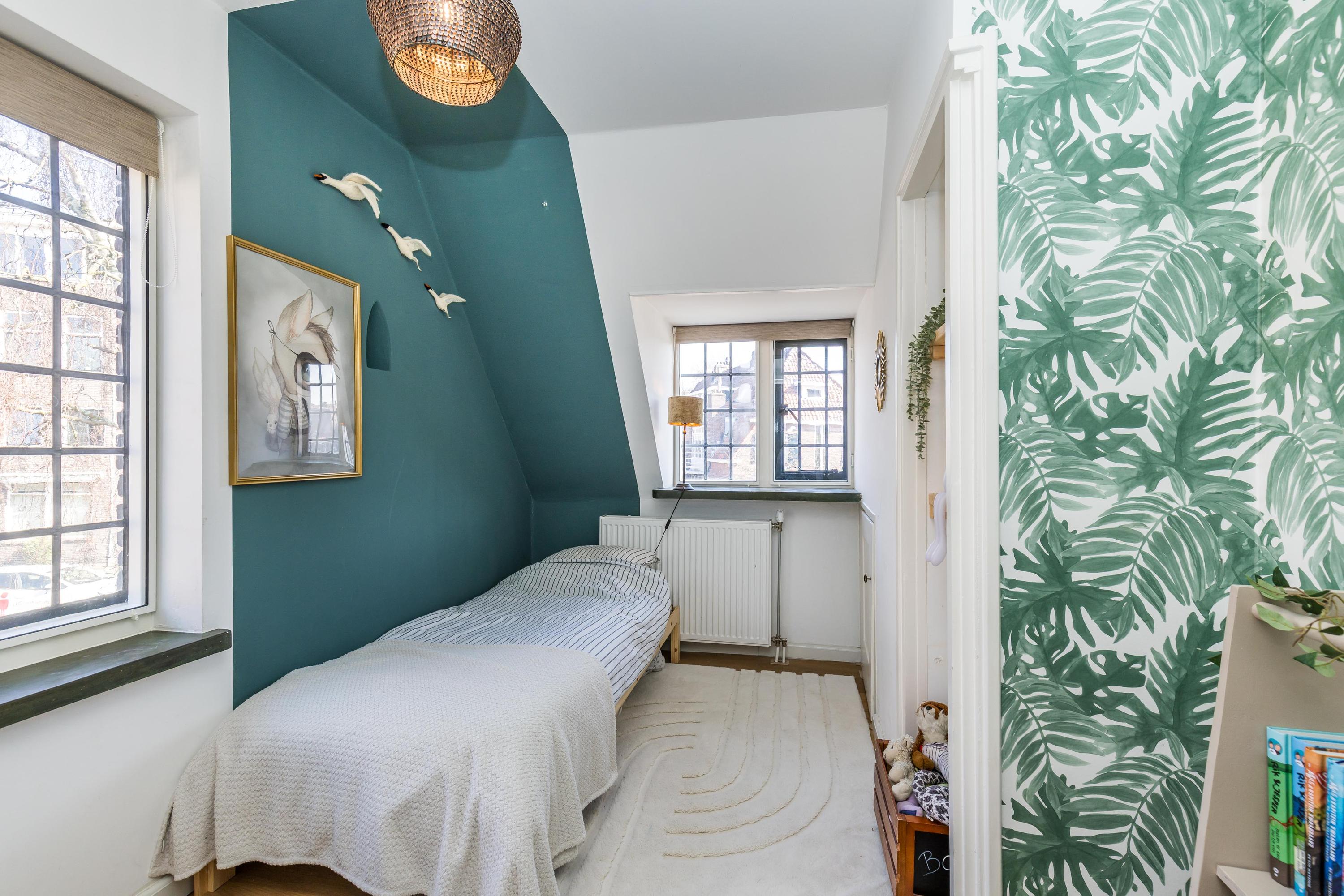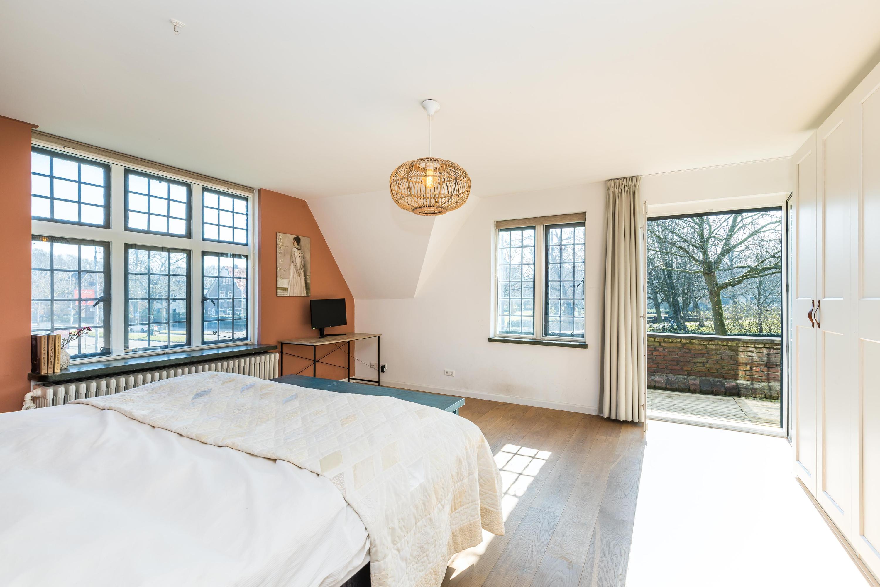 1e Verdieping: Prachtige en lichte overloop met eveneens originele wandtegeltjes. Er bevinden zich maar liefst 4 slaapkamers op deze verdieping en tevens een waskamer, een separaat toilet en een verrassend ruime en zeer smaakvol ingerichte badkamer voorzien van ligbad, inloopdouche en wastafelmeubel. De hoofdslaapkamer is om van te dromen, je voelt je de koning te rijk qua ruimte, maar ook vanwege het charmante balkon dat te bereiken is d.m.v. openslaande deuren. Je waant je in de jaarlijkse koninklijke balkonscene terwijl je mijmert over het sublieme uitzicht over het Julianapark.
