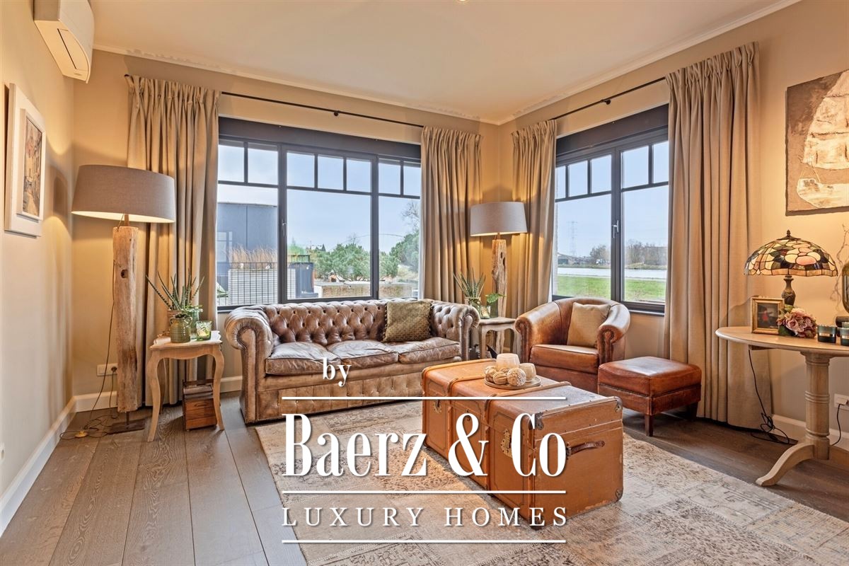De architectuur draait om zichtlijnen en lichtinval. Bij aankomst leidt een afgesloten oprit naar een privégarage en carport. De hoofdentree, bereikbaar via lift of trap, introduceert eikenhouten accenten en maatwerkafwerking. Op de eerste verdieping valt een fraai geproportioneerde eiken keuken op, met stenen vloeren en een royale bijkeuken die uitkomt op een overdekt terras met onbelemmerd uitzicht op het kanaal—een serene plek voor stille ochtenden. Een leefruimte van 42 m², gescheiden door smeedijzeren deuren, vormt een zitruimte met open haard en tv-hoek en een flexibele kantoorruimte. De lounge aan het kanaal is voorzien van een ingebouwde drankenkast en verbindt binnen en buiten, zowel visueel als ruimtelijk.