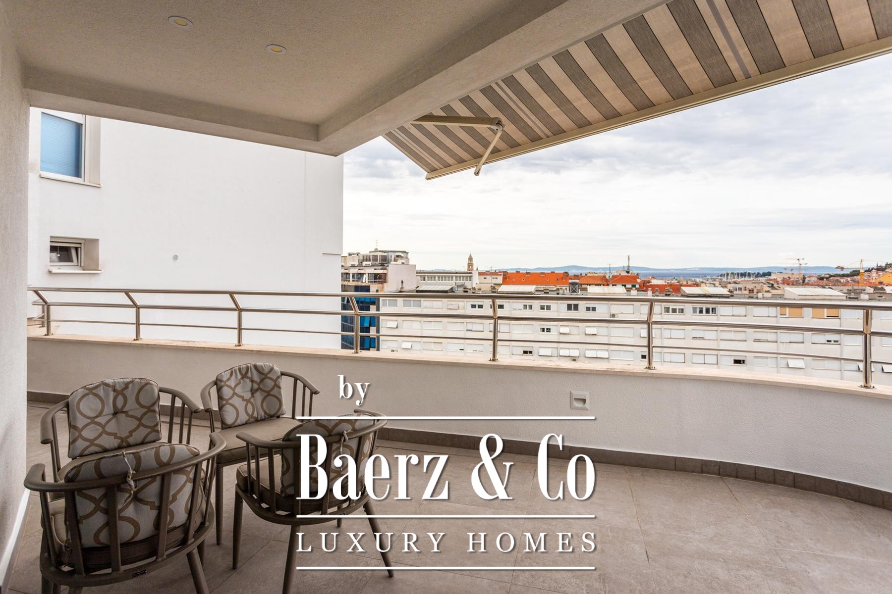 Exclusive Eurovilla offer - city center of Split, Ljudevita Posavskog Street.We present an apartment located on the 6th floor (penultimate floor) of a building with an elevator, west-facing, with a total usable floor area (UFA) of 124.56 m².The apartment consists of an entrance hallway, kitchen with dining area, spacious living room opening onto a partially covered terrace, three bedrooms (one with an en-suite bathroom), an additional bathroom, and a storage/laundry room. The terrace offers open views of Marjan, the city, and partial sea views. Water and electricity are installed on the terrace, allowing for the installation of an outdoor kitchen.The apartment is fully modernly equipped and furnished, featuring high-quality parquet floors and top-quality ceramic tiles. The bathrooms