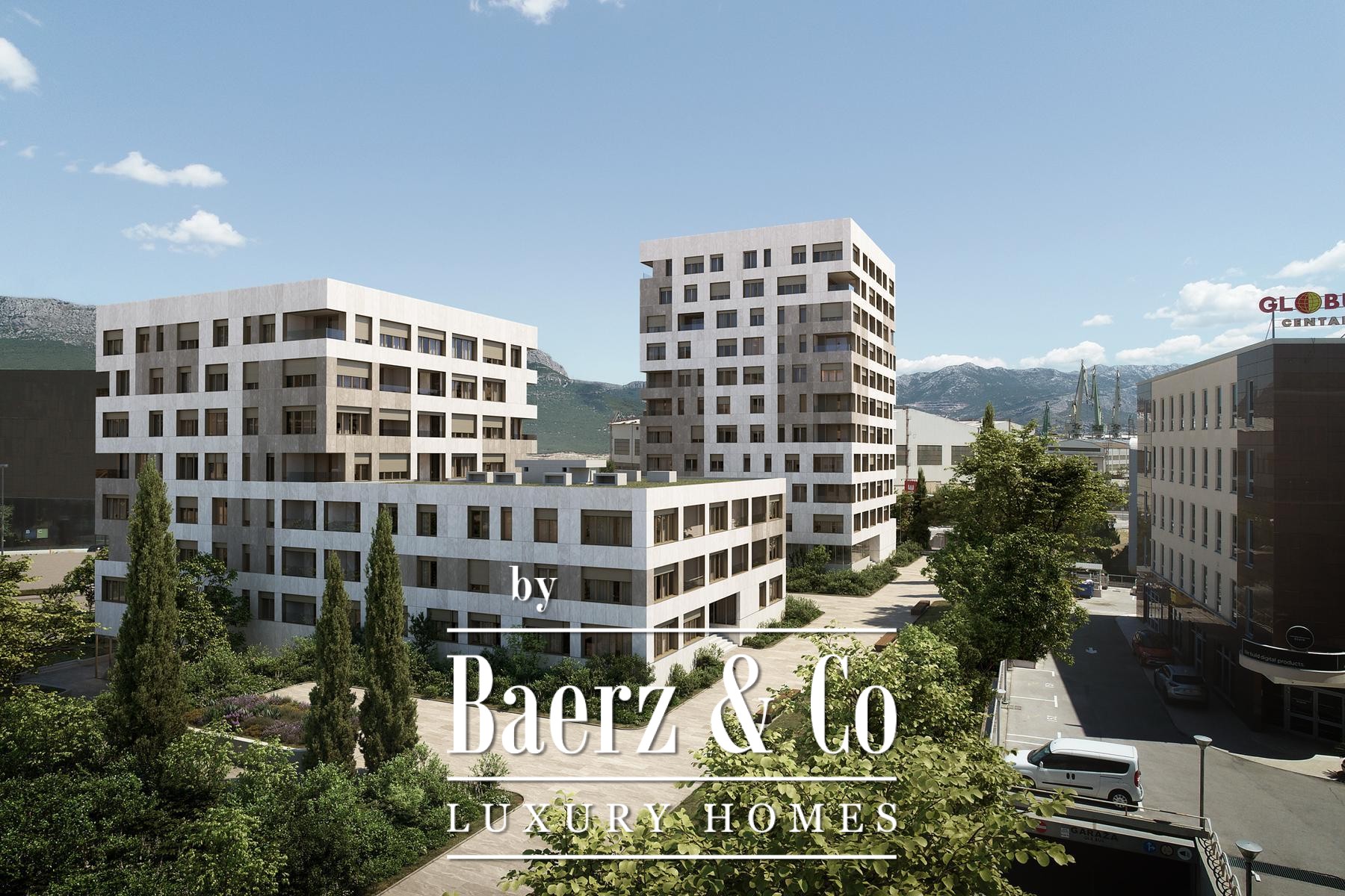 Appartement Split staat symbool voor hedendaags design en comfort, gesitueerd in Lora 68°, een van de meest vooraanstaande nieuwbouwprojecten van de stad. Deze moderne woning biedt 109,05 m² doordacht ontworpen leefruimte op de tweede verdieping, omgeven door glas en rijkelijk verlicht door daglicht.