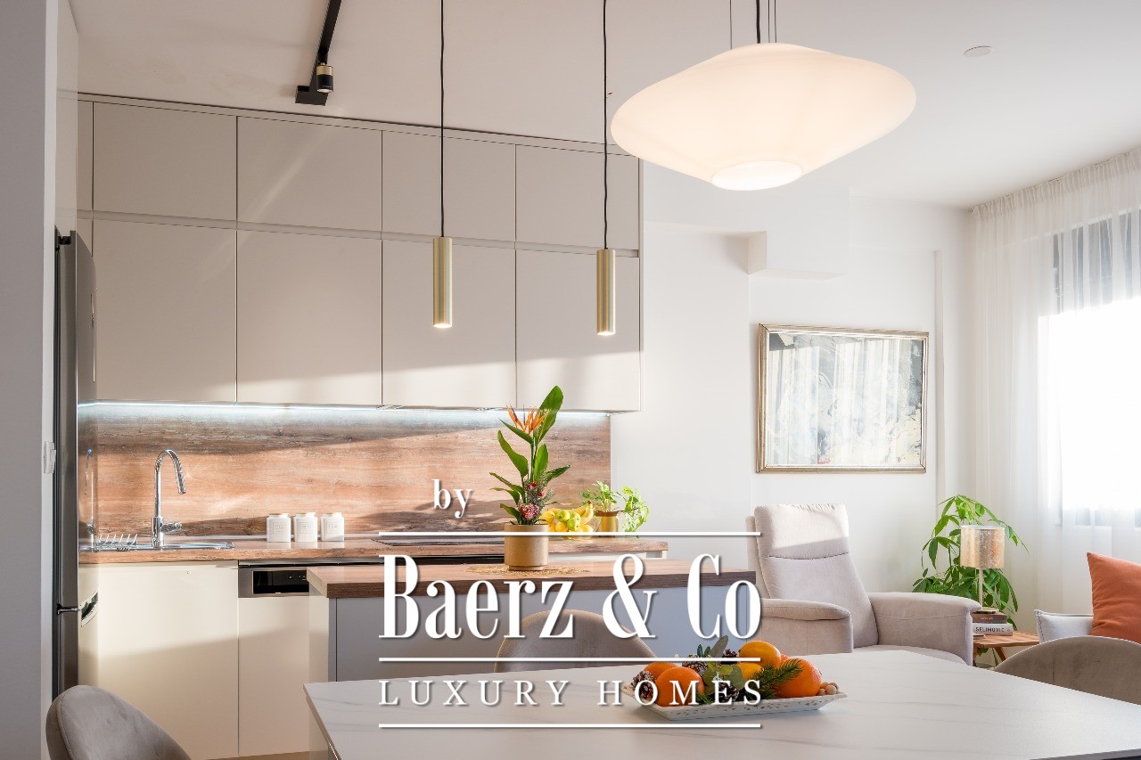 De indeling versterkt het mediterrane woongevoel, met een hal die leidt naar een open leefruimte met geïntegreerde keuken en eetgedeelte. Riante raampartijen omlijsten het rustgevende zeezicht, terwijl twee slaapkamers en een terras de hele dag door profiteren van natuurlijk licht en frisse lucht. Een enkele badkamer en zorgvuldig geselecteerd meubilair verhogen het wooncomfort en zorgen voor direct woonklaar gemak, zowel voor eigen bewoning als verhuur.