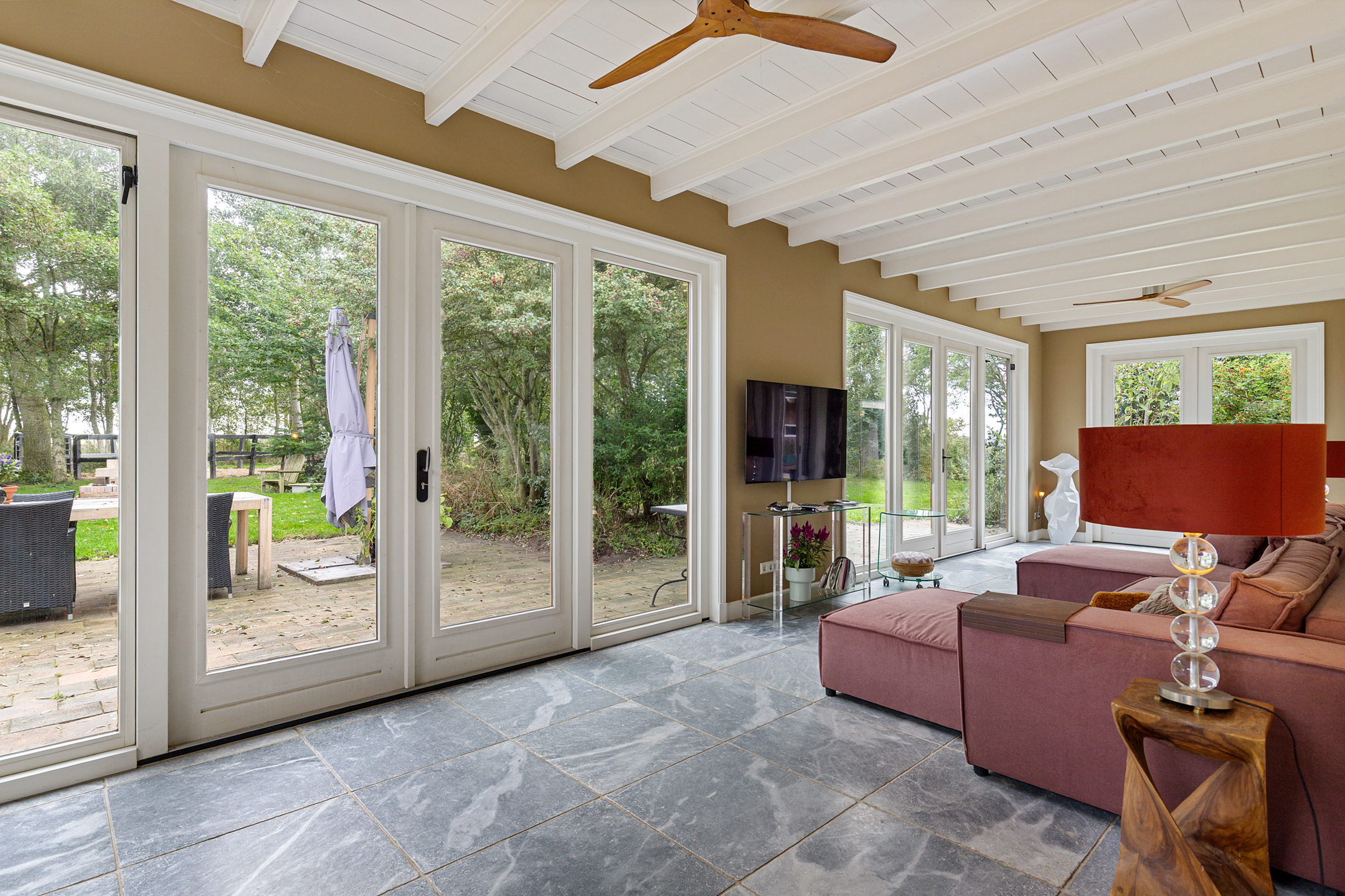 Achter in de tuin, grenzend aan de vijver en met de mogelijkheid voor een eigen oprit, is een modern vrijstaand bijhuis gebouwd met totale privacy ten opzichte van het dijkhuis. Deze zelfstandige, hotel-chique woonruimte beschikt over open keuken, living, badkamer en in de loft een slaapkamer en atelier/werkkamer. Perfect voor dubbele bewoning, werken aan huis of mantelzorg.