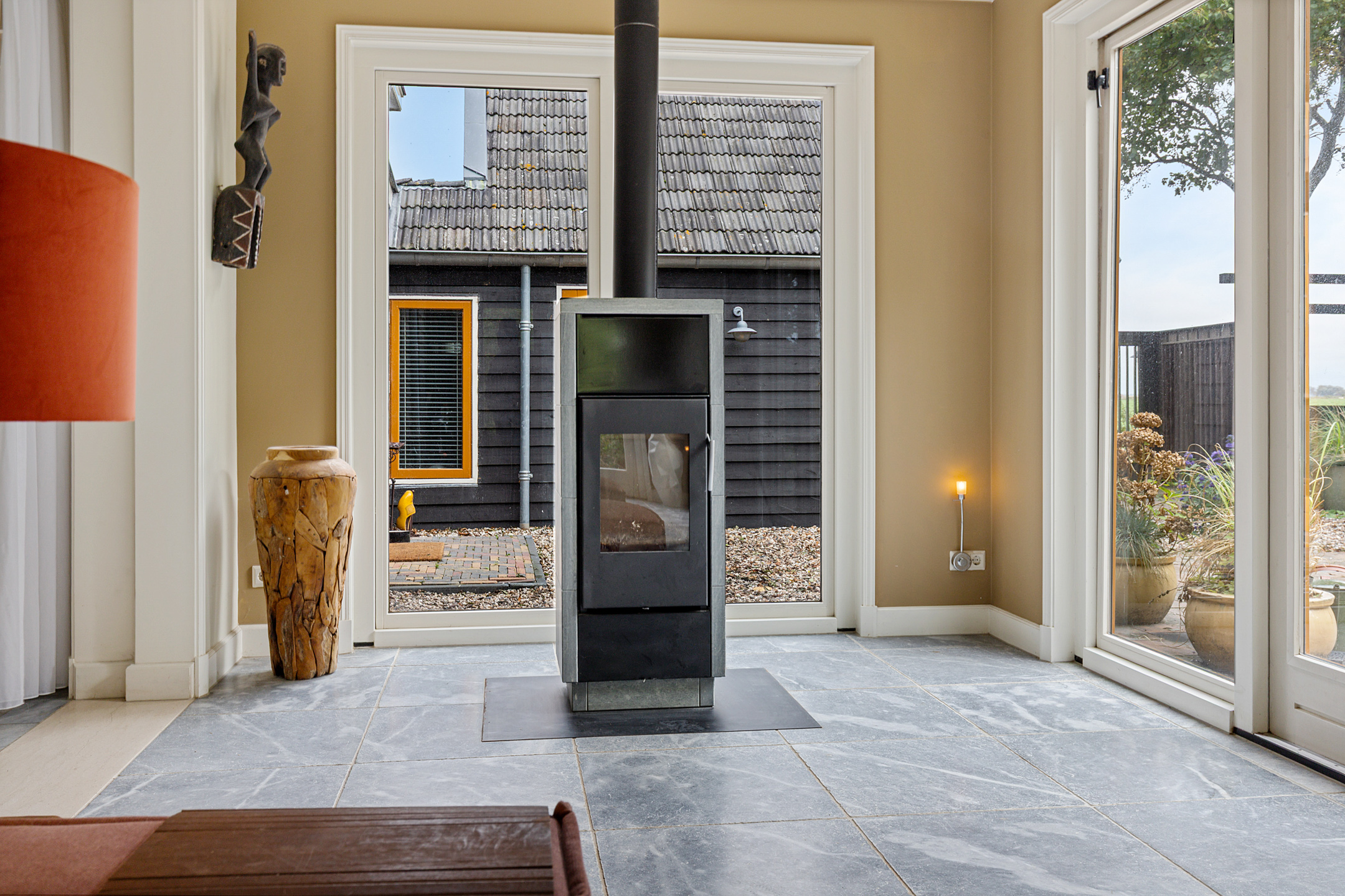 Het perceel van 4.468 m² heeft een volledige woonbestemming, inclusief de mogelijkheid voor beroep aan huis. Het dijkhuis is in 2011 professioneel gerenoveerd, met behoud van karakter én oog voor comfort: energielabel A+, 24 -420 WP zonnepanelen, HR++ glas en een levensloopbestendige indeling met slaapkamers en badkamers op de begane grond. Op de verdieping bevinden zich nog twee sfeervolle slaapkamers en een derde loftkamer. De riante woonkeuken en woonkamer bieden panoramisch zicht over de Waddendijk, landerijen en de tuin.