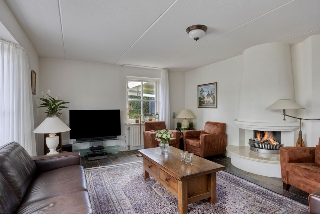 De sfeervolle woonkamer is opvallend licht dankzij de grote erker aan de voorzijde en het brede raam aan de zijkant. De zithoek rondom de open haard vormt een gezellige plek voor lange avonden met familie of vrienden. Richting de achterzijde is ruimte voor een royale eethoek bij de open keuken. De keuken is een U-opstelling met schiereiland, voorzien van crèmekleurige fronten, donker werkblad en complete inbouwapparatuur: een inductiekookplaat, vlakscherm afzuigkap, combimagnetron, oven, koel-/vriescombinatie en een vaatwasser. Aansluitend ligt de praktische bijkeuken met witgoedaansluitingen, opbergruimte en een buitendeur naar het terras. Tot slot bevindt zich op de begane grond een extra kamer – ideaal als thuiskantoor, hobbyruimte, speelkamer of slaapkamer. Via deze kamer bereikt u binnendoor de badkamer – met douche, toilet en wastafel – handig voor wie levensbestendig wil wonen of gasten ontvangt. Daarnaast zijn de deuren op de begane grond breed waardoor ze ook toegankelijk zijn voor een rolstoel.