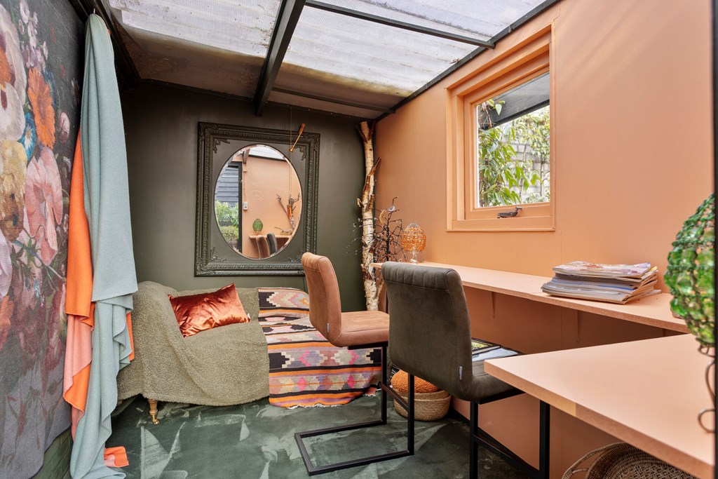 De tuin is zonder twijfel een van de meest bijzondere elementen van deze villa. Op een perceel van 674 m² eigen grond heeft u hier genoeg ruimte, privacy en rust. De tuin strekt zich ver naar achteren uit en biedt meerdere terrassen, sierlijke beplanting en verrassende doorkijkjes. Achterin staat een grote vrijstaande garage met aangrenzend een afsluitbare carport en een berging met dubbele lichtkoepel. Als extra toevoeging is er een knus tuinkamertje, sfeervol afgewerkt en voorzien van een raam om lekker te ontsnappen of creatief bezig te zijn. De tuin is ontworpen om elk seizoen tot zijn recht te laten komen: van het eerste voorjaarzonnetje tot de warme zomeravonden. Het is een plek waar u kunt eten, loungen, tuinieren en ontspannen — alles in uw eigen groene omgeving.