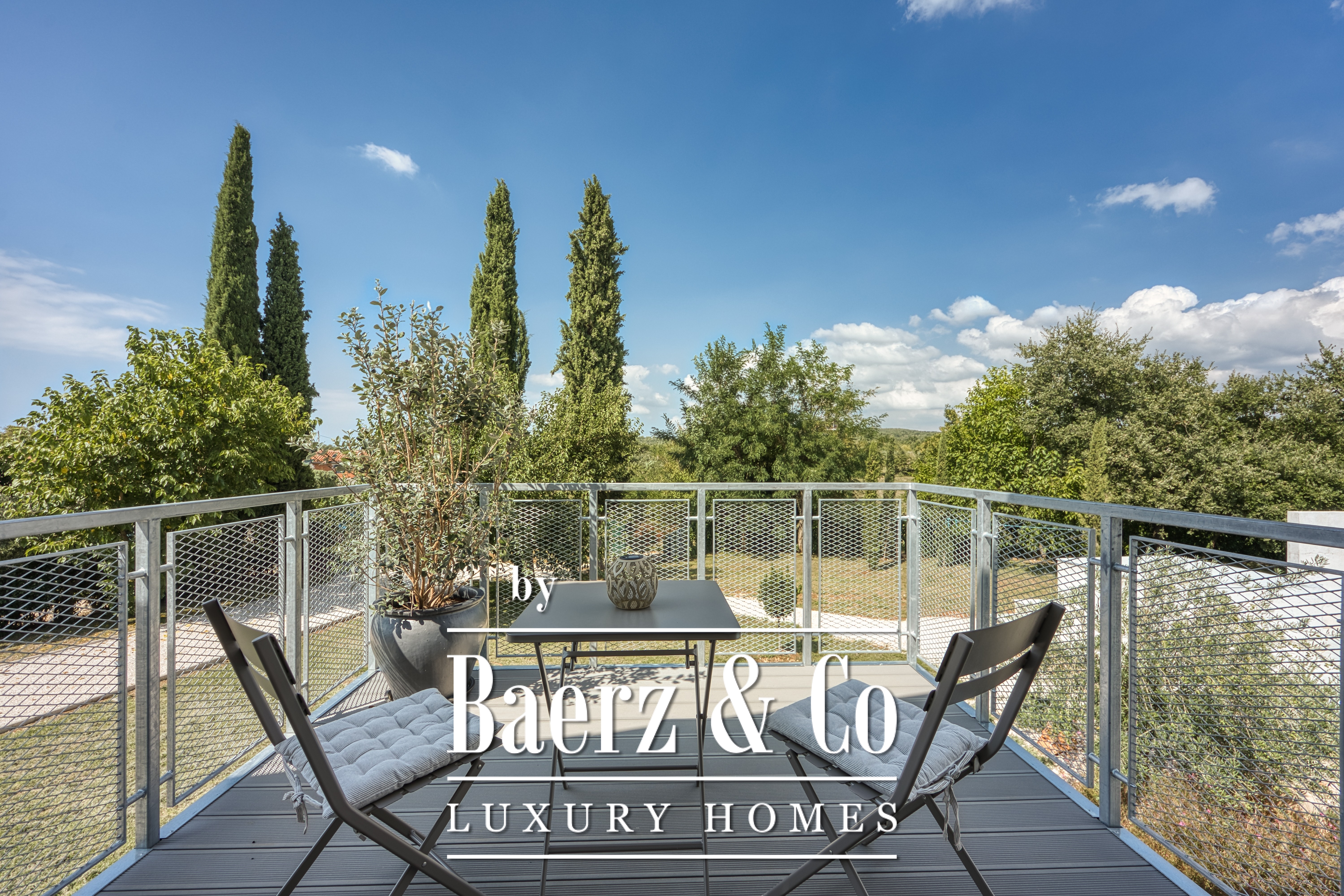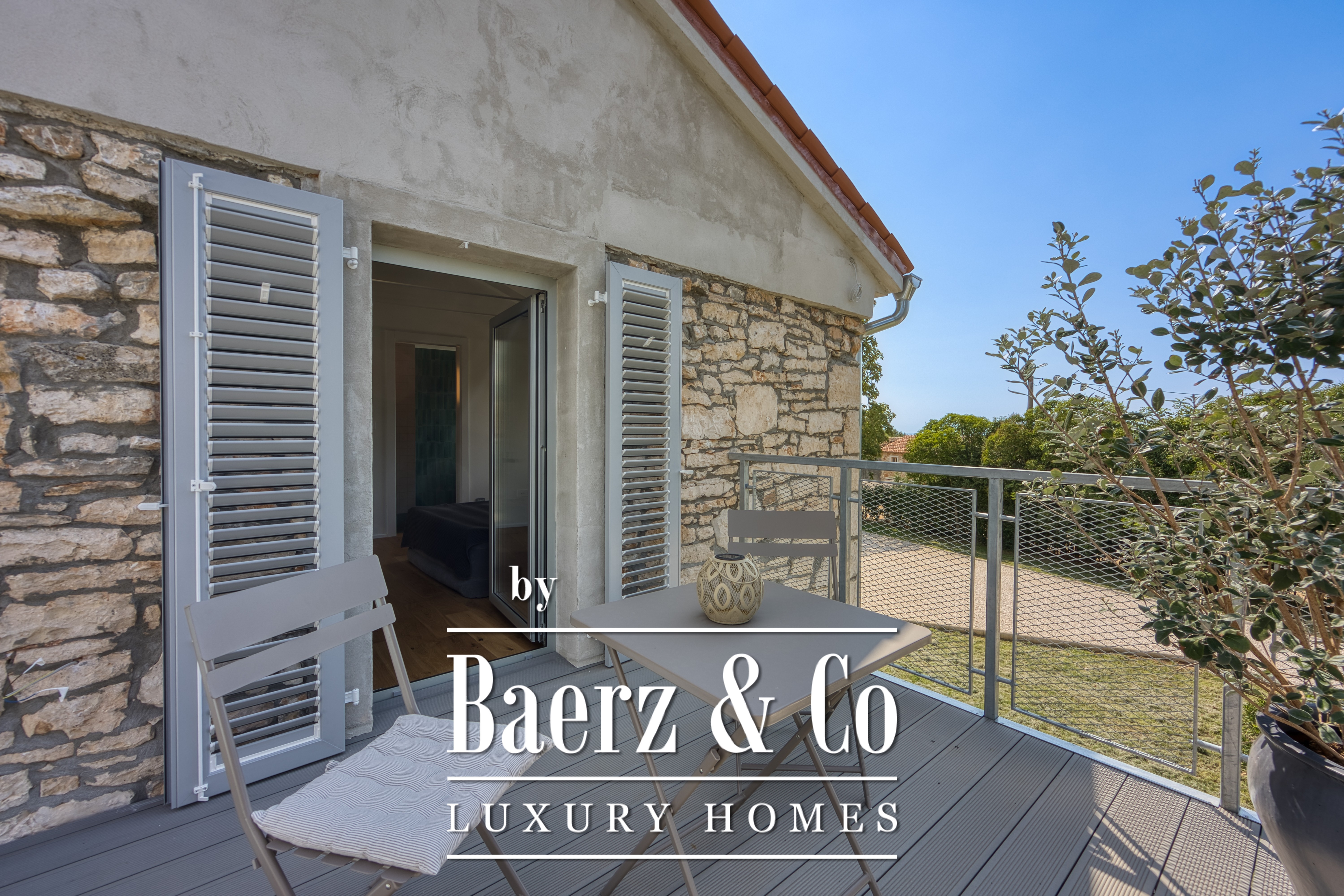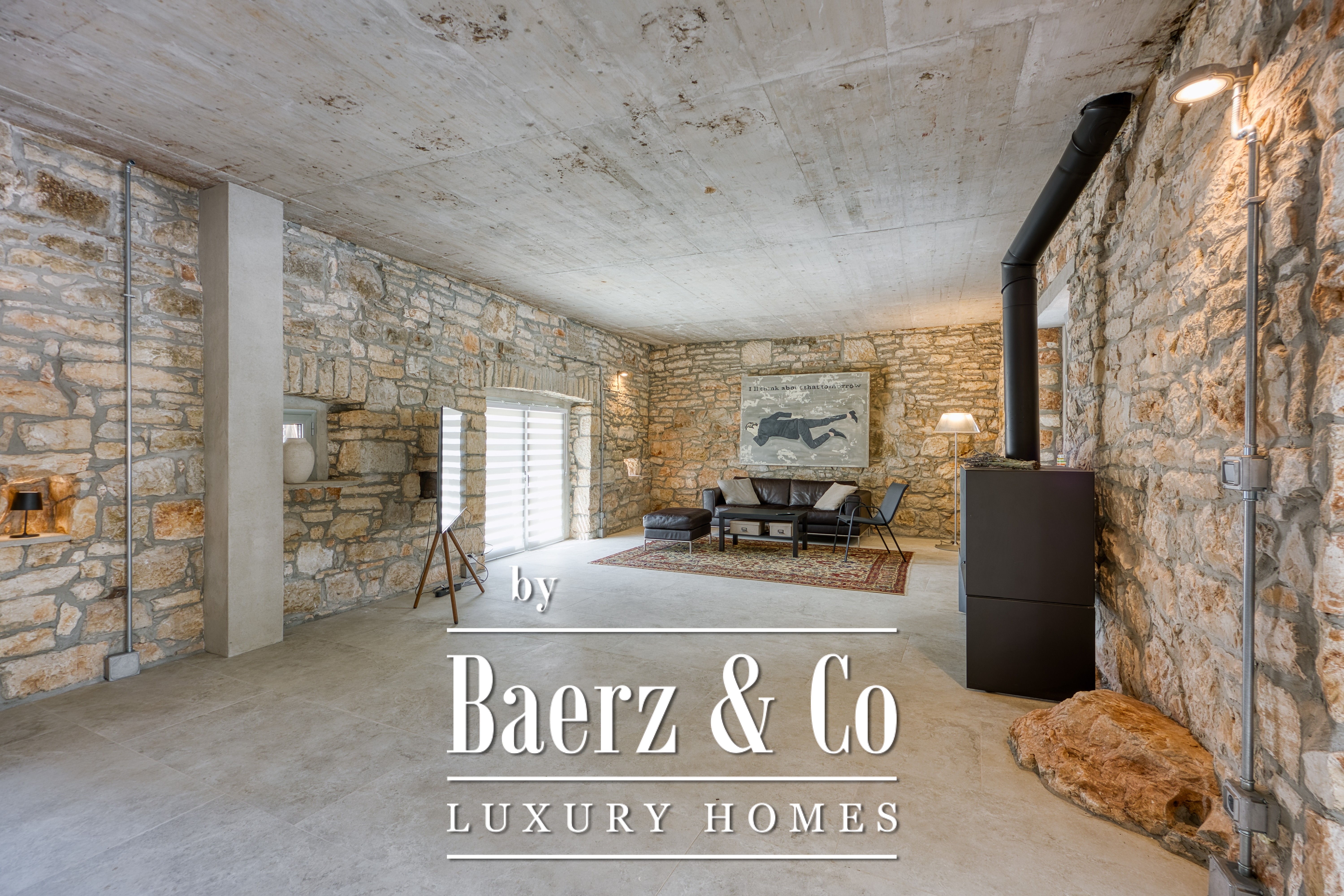 Near Višnjan stands a fully renovated stone house with 350 m² of living space, combining contemporary architecture, privacy, and prestige. The house was completely renovated in 2024 and built with high-quality materials, giving it a timeless character. It is designed to provide comfort and functionality throughout the year.