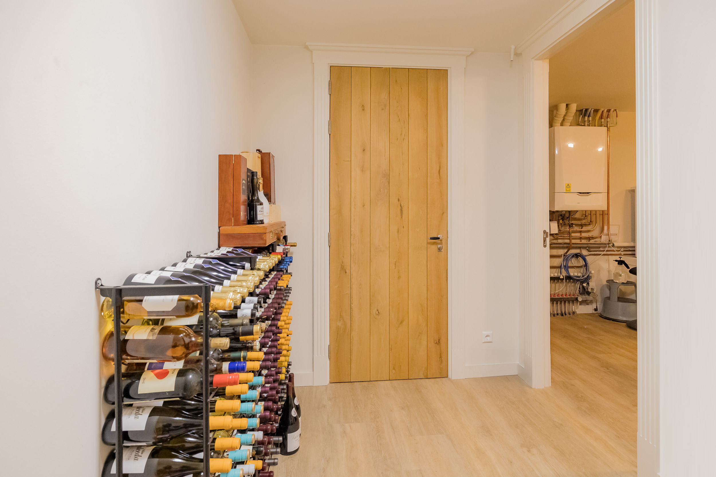 In de grote kelder bevindt zich de royale, dubbele garage voor wel 4 auto’s met een oplaadpunt voor de elektrische auto, een bergruimte/wijnkelder en een grote stook-/ wasruimte.