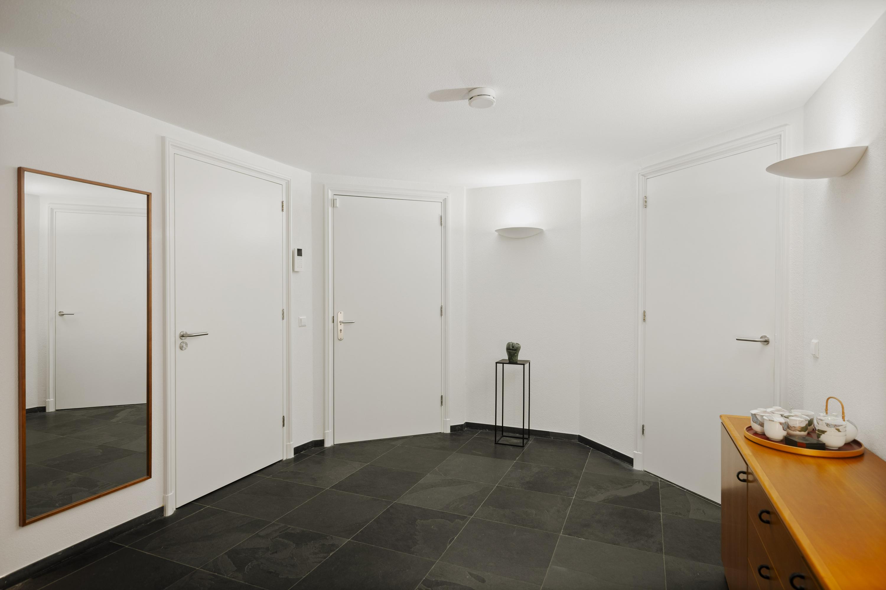 Het appartement is vanuit de centrale entree zowel met de trap als met de lift te