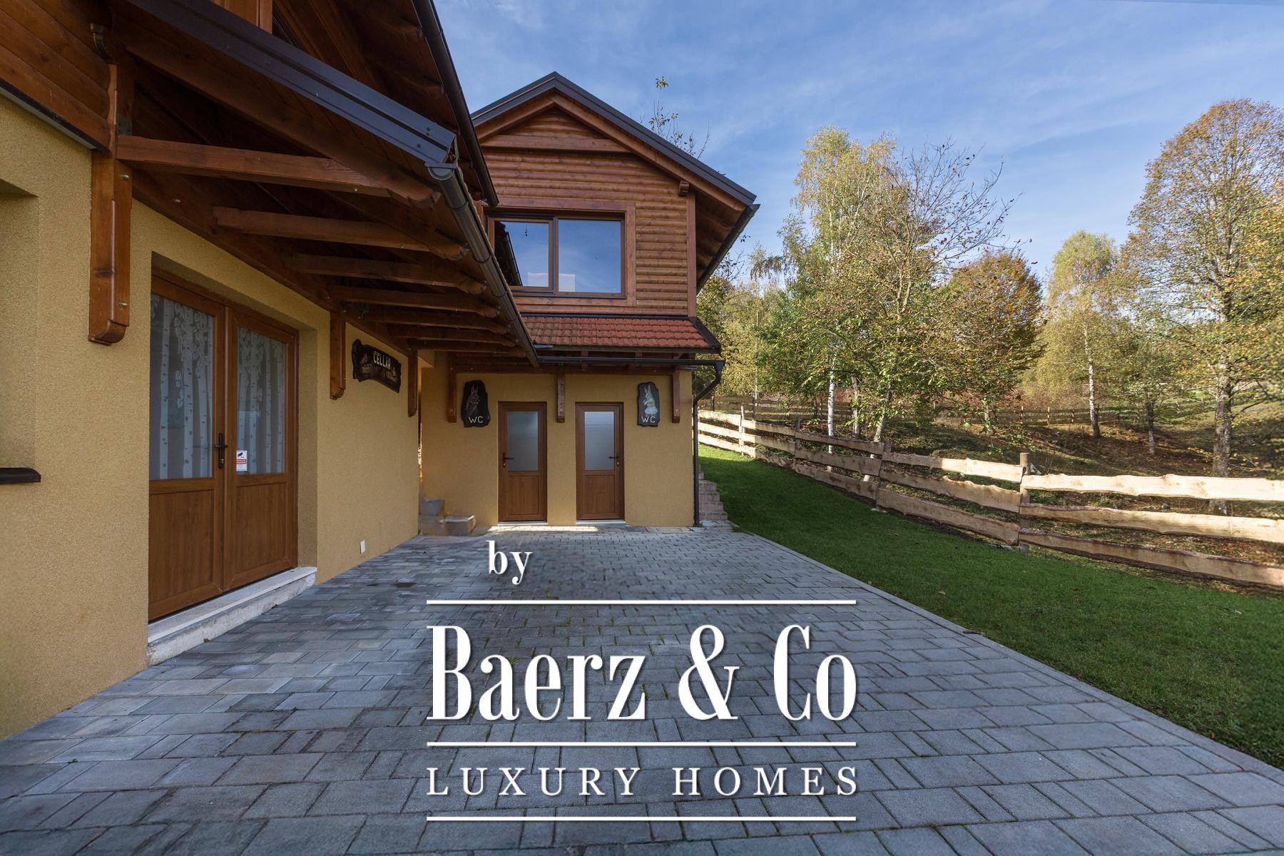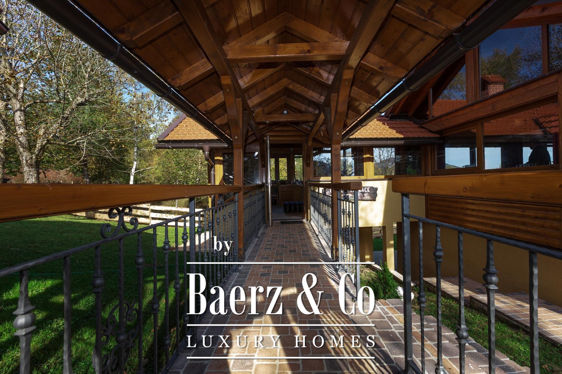 are modernly furnished, legalized, and partially equipped with infrastructure (electricity, septic system, and cistern water supply).The property currently operates as a luxury countryside resort, highly rated for privacy, comfort, and expansion potential into a year-round hospitality business.Additional Property IncludedThe price also includes a former guesthouse in the center of Vrbovsko, located on a 899 m² plot, with a net usable area of approx. 127 m² spread over three floors plus a basement.Dating back to the 19th century, this building was once a well-known inn — ideal for restoration into a heritage hotel with around ten rooms.It can be strategically integrated with the main estate through a “hotel-to-estate” tourism concept, creating a comprehensive Gorski kotar experience combining accommodation, gastronomy, and recreation.Investment OpportunityThis is not an ordinary property — it is a high-value investment project.The combination of luxury rural tourism, a wellness concept, and ecological agriculture enables a fast return on investment through multiple parallel ventures:Tourist rentals and organized holiday packagesAgritourism and gourmet programsTeam-building and event programsProduction and sale of local productsDevelopment of additional accommodation facilitiesKey AdvantagesTotal land area over 60,000 m²More than 500 m² of developed facilitiesFully functional and legalizedPossibility of expansion and diversificationComplete privacy and pristine natural surroundingsAdditional property included (guesthouse in Vrbovsko center)Purpose: tourism-agriculture complex with expansion potentialFor more information, detailed land structure, and the investment plan, we remain at your disposal