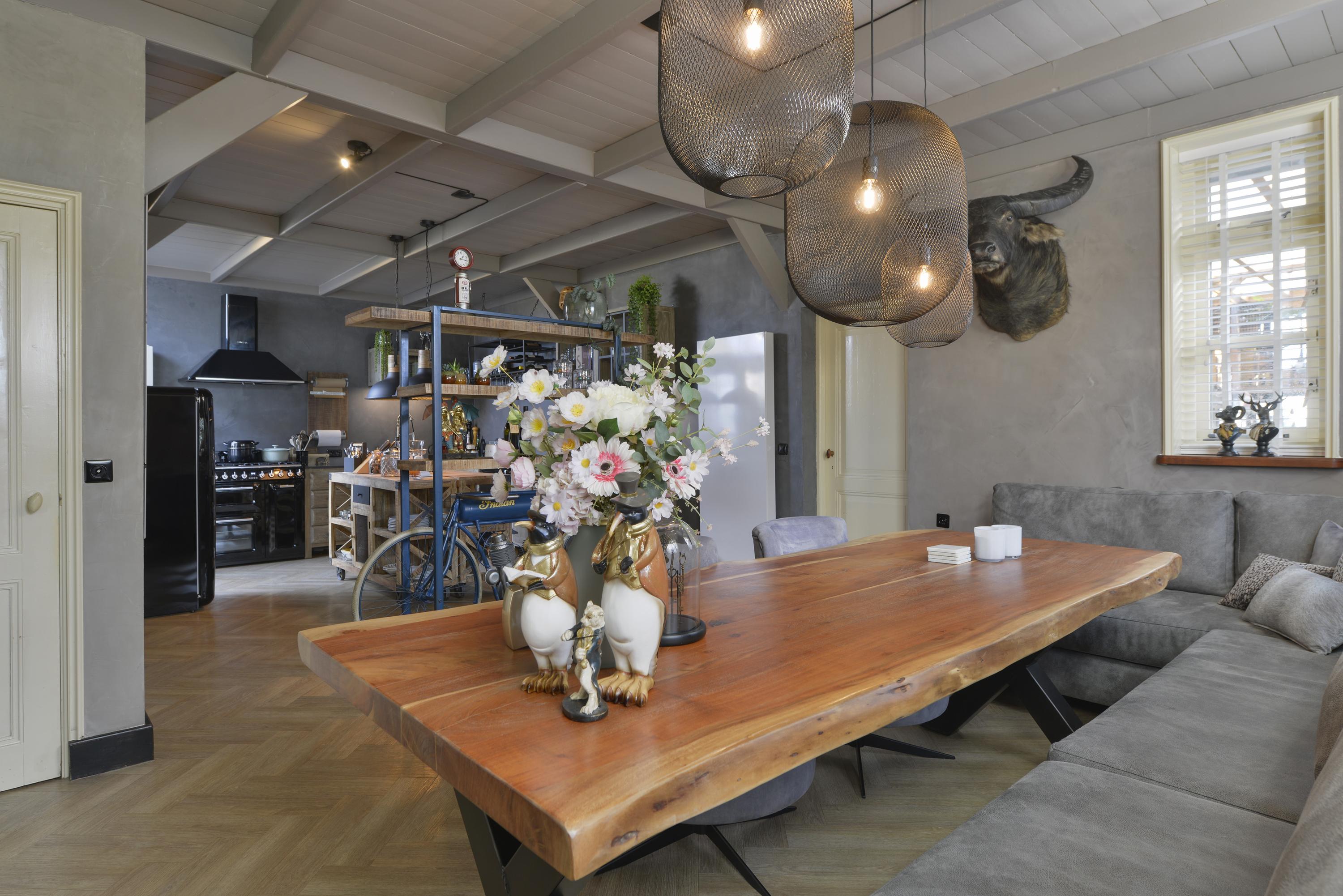 Achter de karakteristieke gevel bevindt zich een gemoderniseerde woonboerderij die tot in detail is verzorgd en ingericht voor comfortabel wonen. Met een woonoppervlakte van maar liefst 416 m² en energielabel A komen luxe en duurzaamheid hier overtuigend samen. De woonkeuken is in 2022 vernieuwd en sluit perfect aan op de ruime en lichte leefruimtes die een prettige en rustige sfeer bieden. Buiten liggen een verwarmd zwembad een royale overkapping met buitenkeuken, een ruime oprit en diverse multifunctionele bijgebouwen waaronder een bijgebouw dat in een sfeervolle restaurant setting is ingericht (uitsluitend voor privégebruik). De woning beschikt bovendien over een eigen boomgaard wat bijdraagt aan het landelijke karakter van het geheel. In totaal zijn er 48 zonnepanelen aanwezig die bijdragen aan lage energielasten.