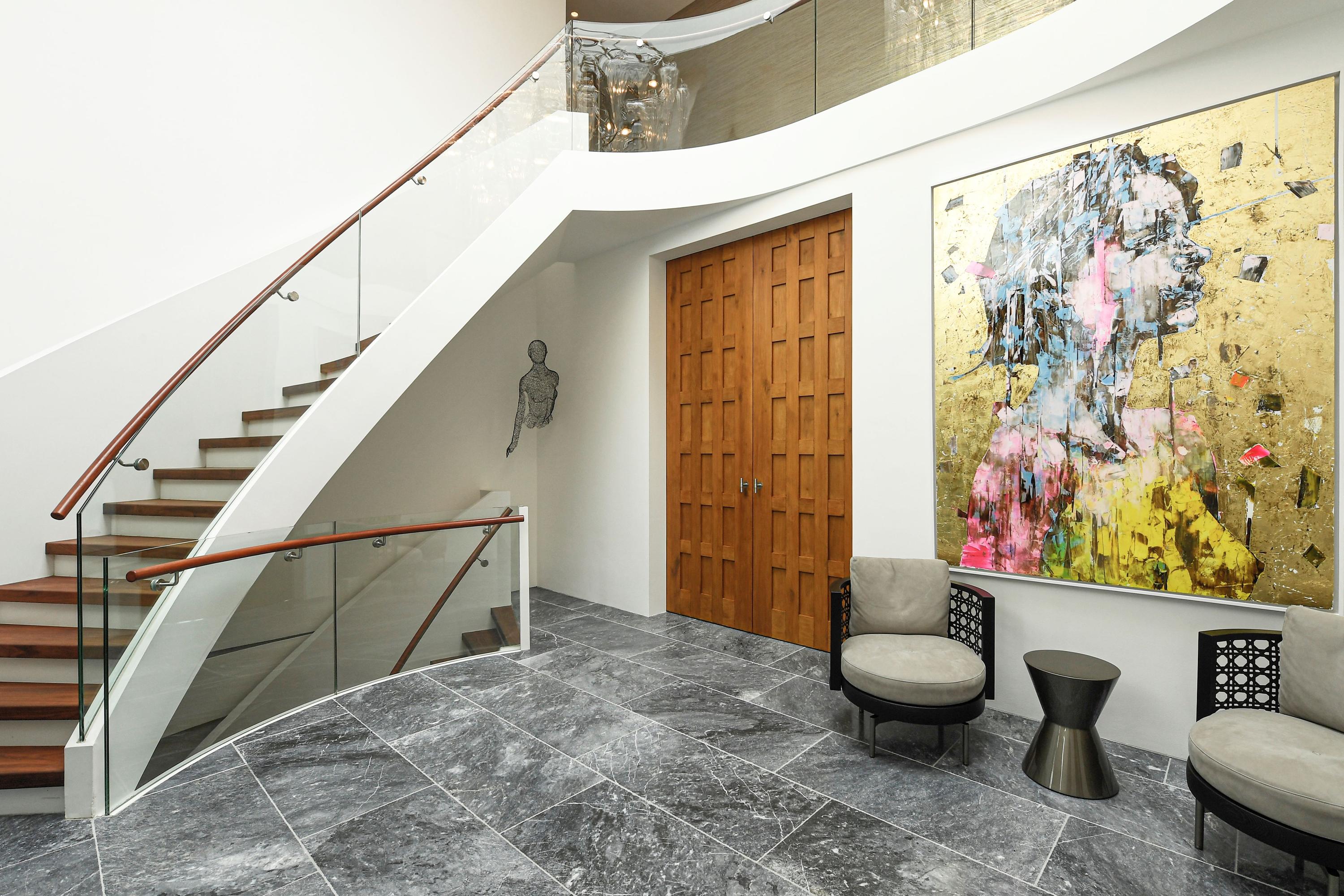 • Turks hardsteen op de begane grond, eikenhout op de verdieping