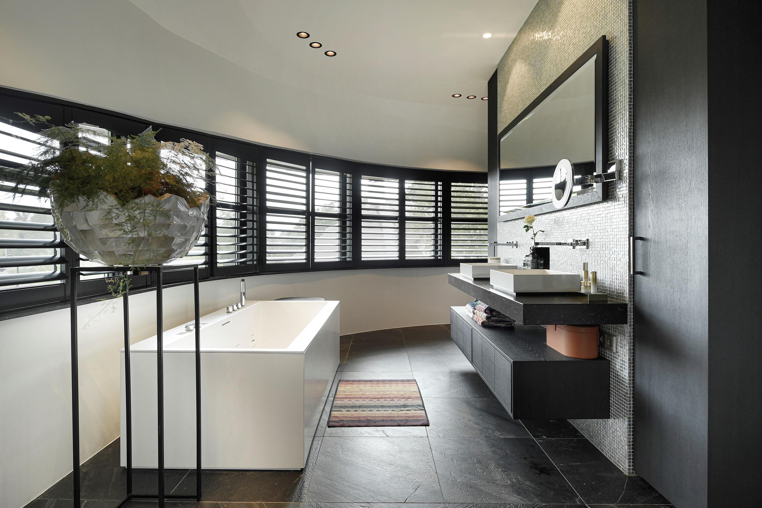 De master suite vormt een oase van rust met gashaard, panoramisch uitzicht en een luxe badkamer met jacuzzi, sunshower en separate toiletruimte.