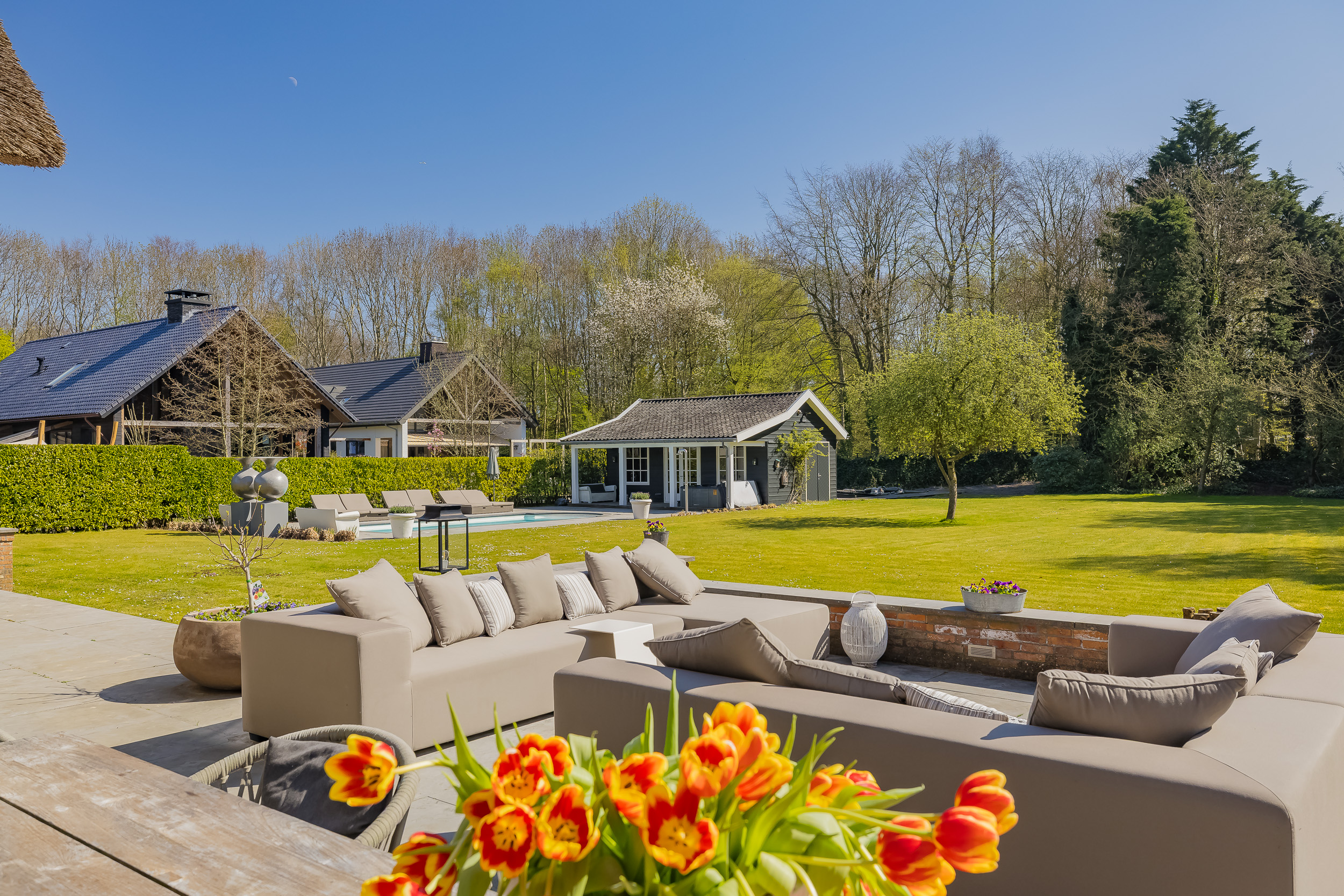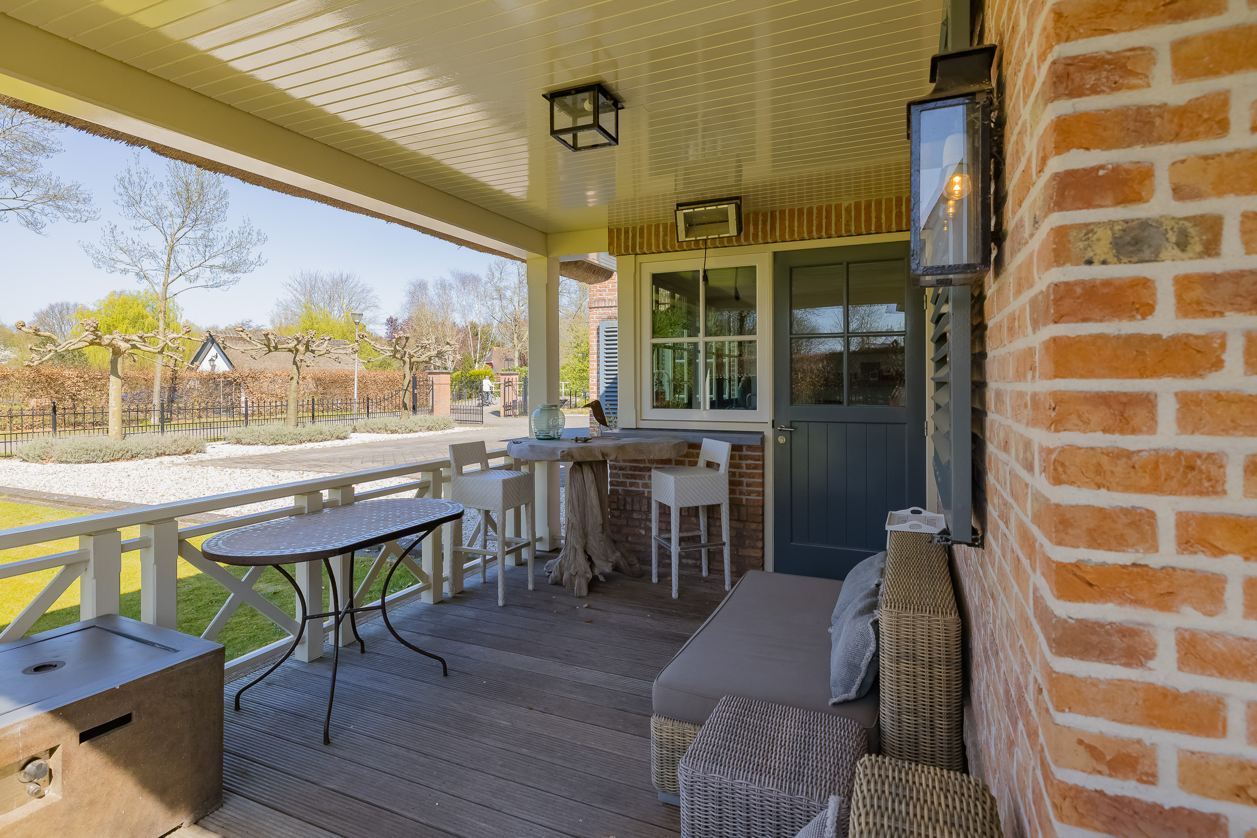 Aan de voorzijde van het huis vind je een ruime veranda en er is een groot terras, aan de achterzijde, ideaal voor buiten dineren of genieten van de serene omgeving. Het ruime buitenzwembad biedt verkoeling en luxe op warme dagen, en het naastgelegen poolhouse met berging, douche en toilet zorgt voor extra comfort.