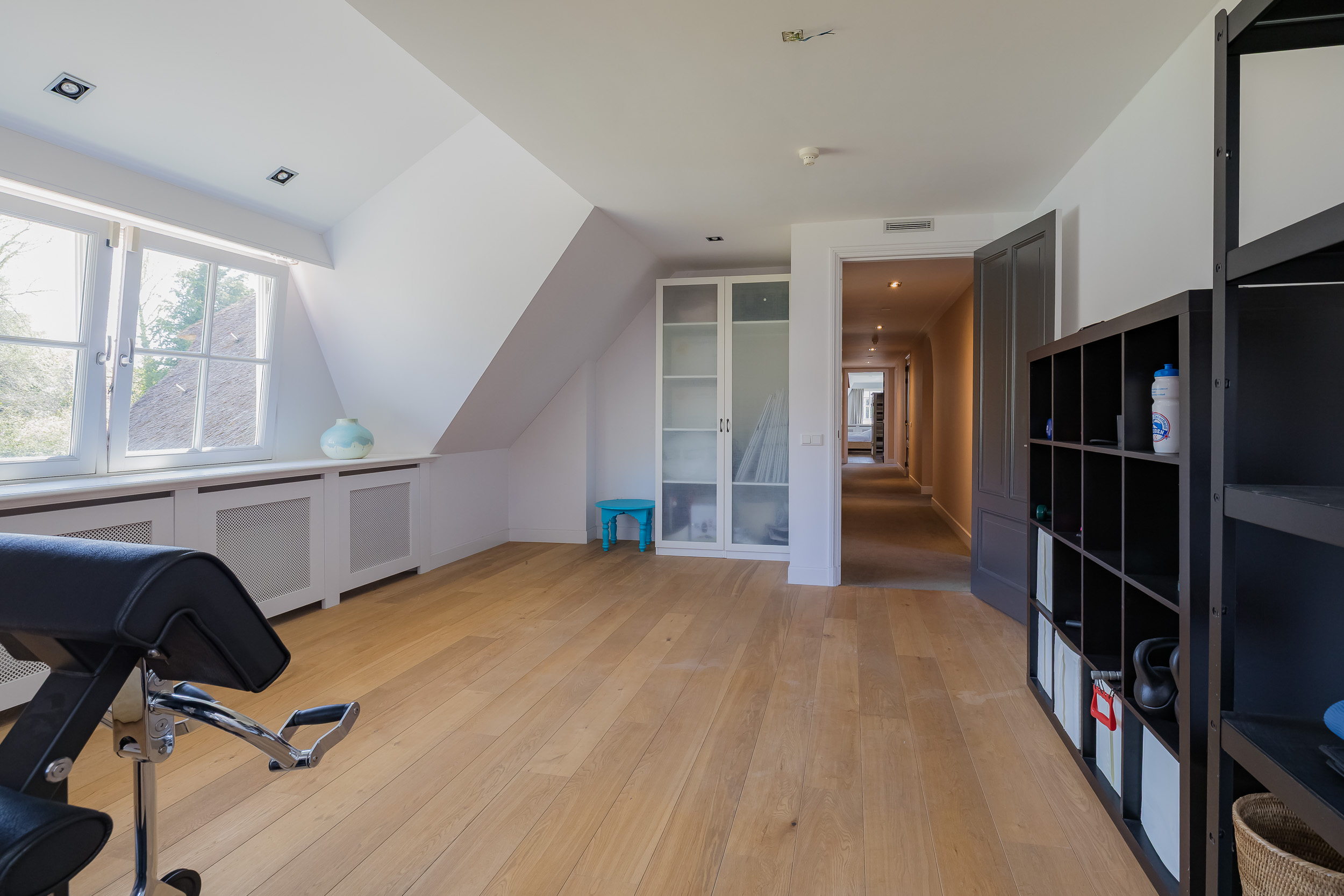 Op de eerste etage tref je maar liefst 5 ruime slaapkamers aan. De ouderslaapkamer heeft een eigen balkon en toegang tot een royale badkamer met ligbad, inloopdouche en dubbele wastafel. Daarnaast is er nog een tweede badkamer met ligbad, douche en wastafel. Een van de slaapkamer heeft ook een ruim balkon en verder is er een wasruimte.