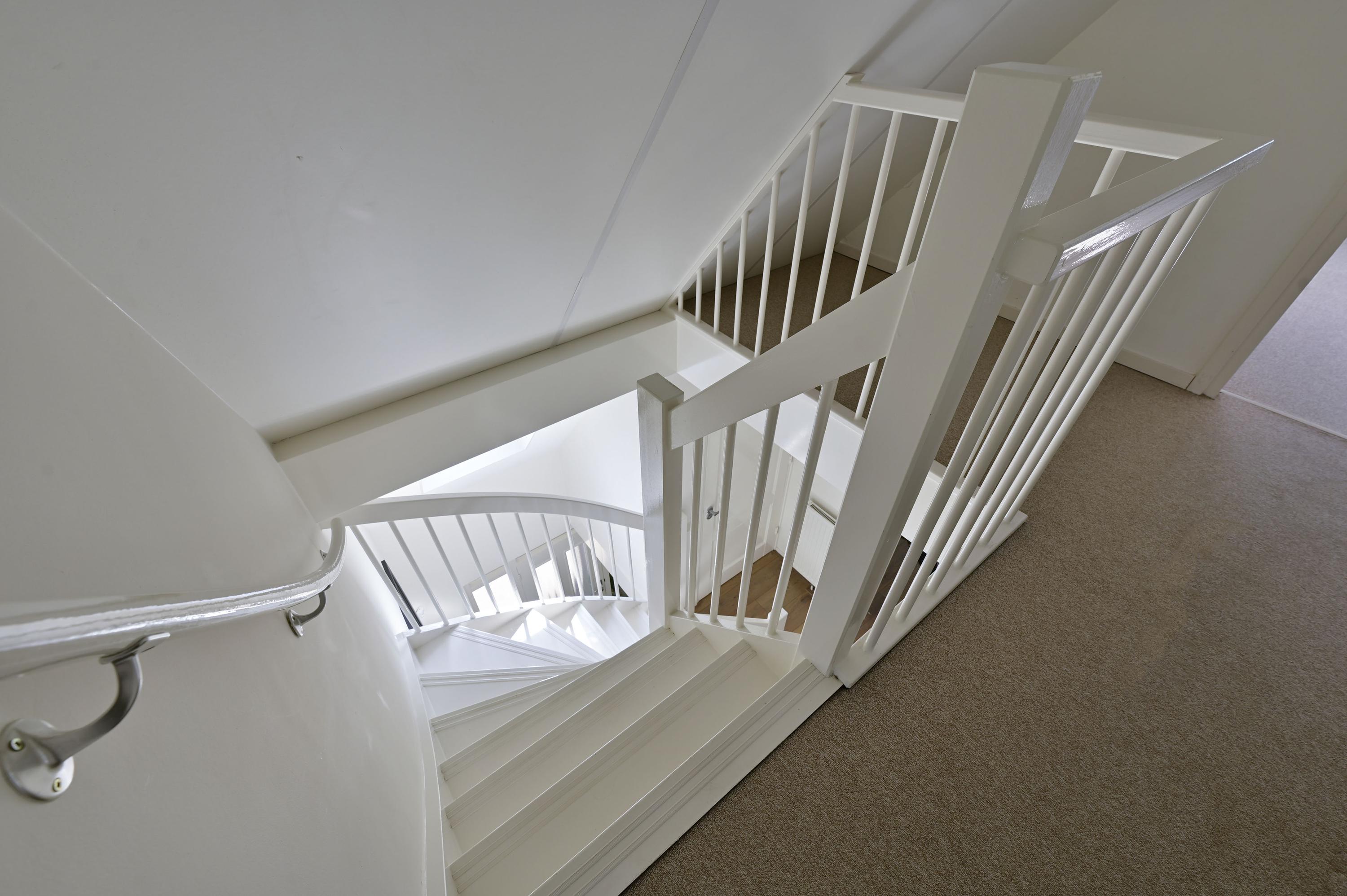 De vaste trap naar de tweede verdieping leidt naar de overloop met een vaste kastenwand waar de warmteterugwininstallatie (WTW) en de CV-ketel zijn geplaatst, met daarnaast nog voldoende bergruimte. Tevens zijn er twee extra slaapkamers, beide voorzien van een dakraam en bijzondere ramen in de kopgevels, wat de ruimtes karakter en licht geeft.