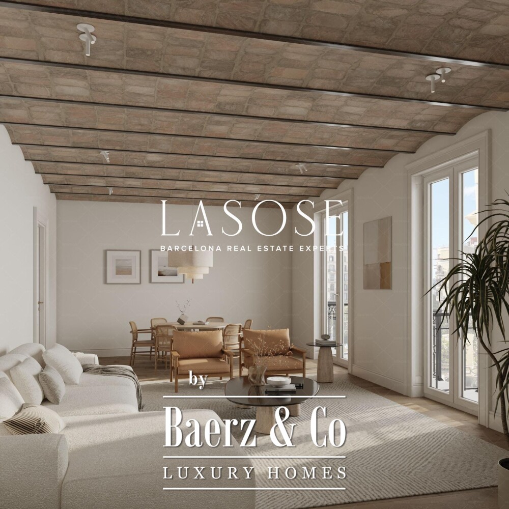 Апартаменты Barcelona Dreta de l’Eixample — это 137 м² светлых интерьеров, где интуитивный дизайн гармонично сочетается с легким ритмом городской жизни. Гостиная и столовая выходят на внешние балконы с видом на улицу Roger de Flor, наполняя пространство дневным светом. Элегантные двери из металла и стекла обеспечивают кухне как открытость, так и уединение, предлагая гибкий формат проживания в этом изысканном городском доме.
