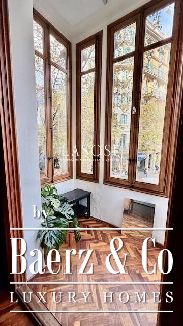 Квартира Barcelona в районе Eixample Esquerra расположена на основном этаже выдающегося здания в стиле модерн, возведенного в 1900 году, где наследие архитектуры гармонично сочетается с впечатляющим пространством. Жилая площадь составляет 179 м², дополнительно к ней — 4 м² балконов, из которых три выходят на улицу, а классическое эркерное окно наполняет главную гостиную дневным светом, подчеркивая ощущение простора и величия. Высота потолков достигает 3,5 метра с оригинальной volta catalana, которая сохраняет подлинную атмосферу эпохи.