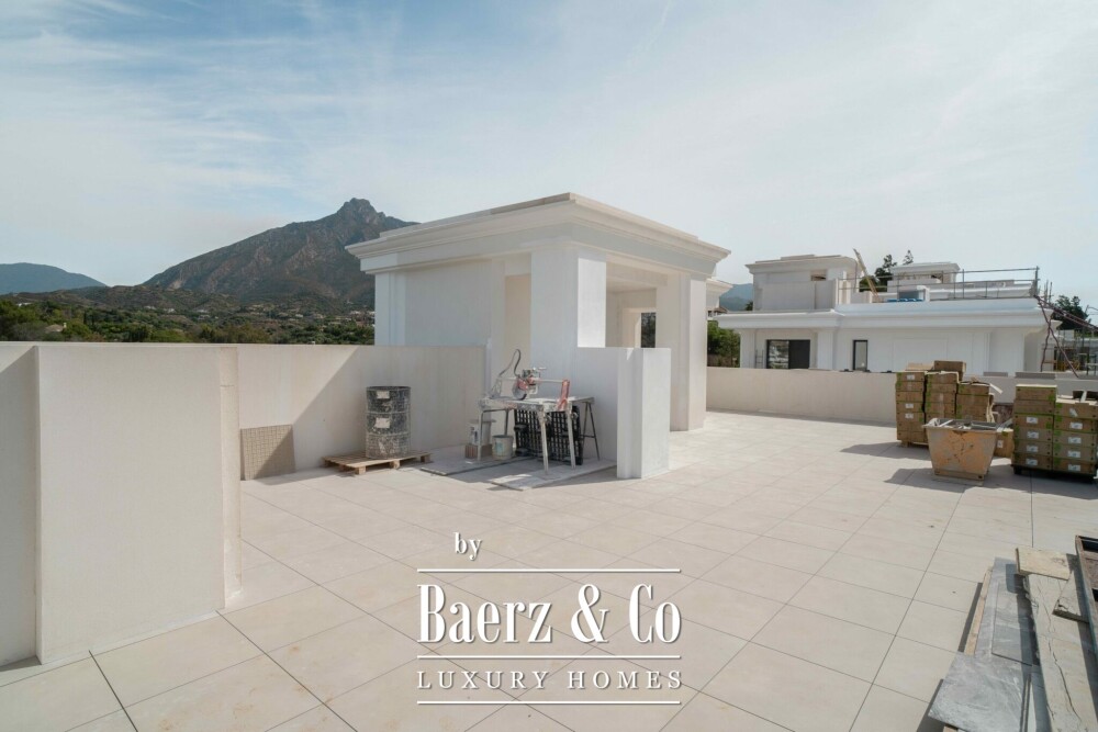 В цокольном этаже — гараж на три автомобиля, гостевые спальни с естественным освещением, апартаменты для персонала, прачечная и дополнительная служебная кухня с доступом на лифте. Круглосуточная охрана, спортзал, а также близость к ресторанам Michelin, международным школам и космополитическим удобствам Марбельи формируют исключительную среду, где комфорт гармонирует с безупречным качеством. Эта роскошная вилла, представленная на продажу, уединенно расположена и обеспечивает все, что ценят покупатели, ищущие баланс между статусом и частной жизнью.