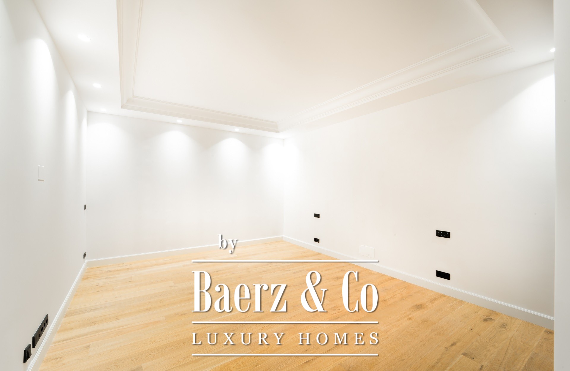 Двусветный вестибюль и современные колонны ведут в интерьер, продуманный до мелочей с внутренней уверенностью. Главный этаж объединяет просторную гостиную с камином, элегантную столовую и полностью оборудованную кухню с эксклюзивным островом и премиальной техникой. Широкие террасы выходят к подогреваемому бассейну с морской водой и ухоженным садам, созданным для приватного отдыха и камерных встреч.