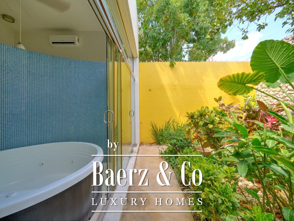 На территории располагается фильтрованный бассейн с гидромассажем, уединённые садовые зоны и место для барбекю, создающие атмосферу умиротворения. Терраса на крыше предназначена для утреннего кофе или тихих вечеров под майянским небом. Энергоэффективность обеспечивают солнечные панели и современные системы, а дом полностью меблирован и готов к заселению. Вилла Merida — воплощение сдержанной роскоши, где каждый день соединяет близость культурной жизни города и приватность собственного пространства.