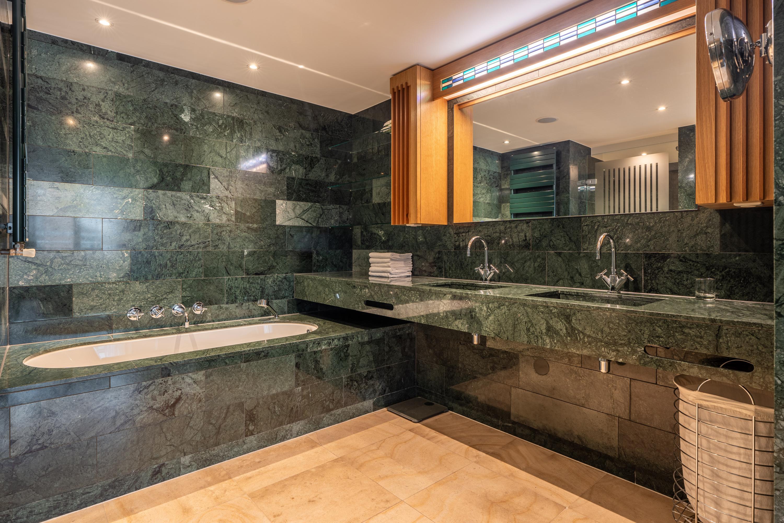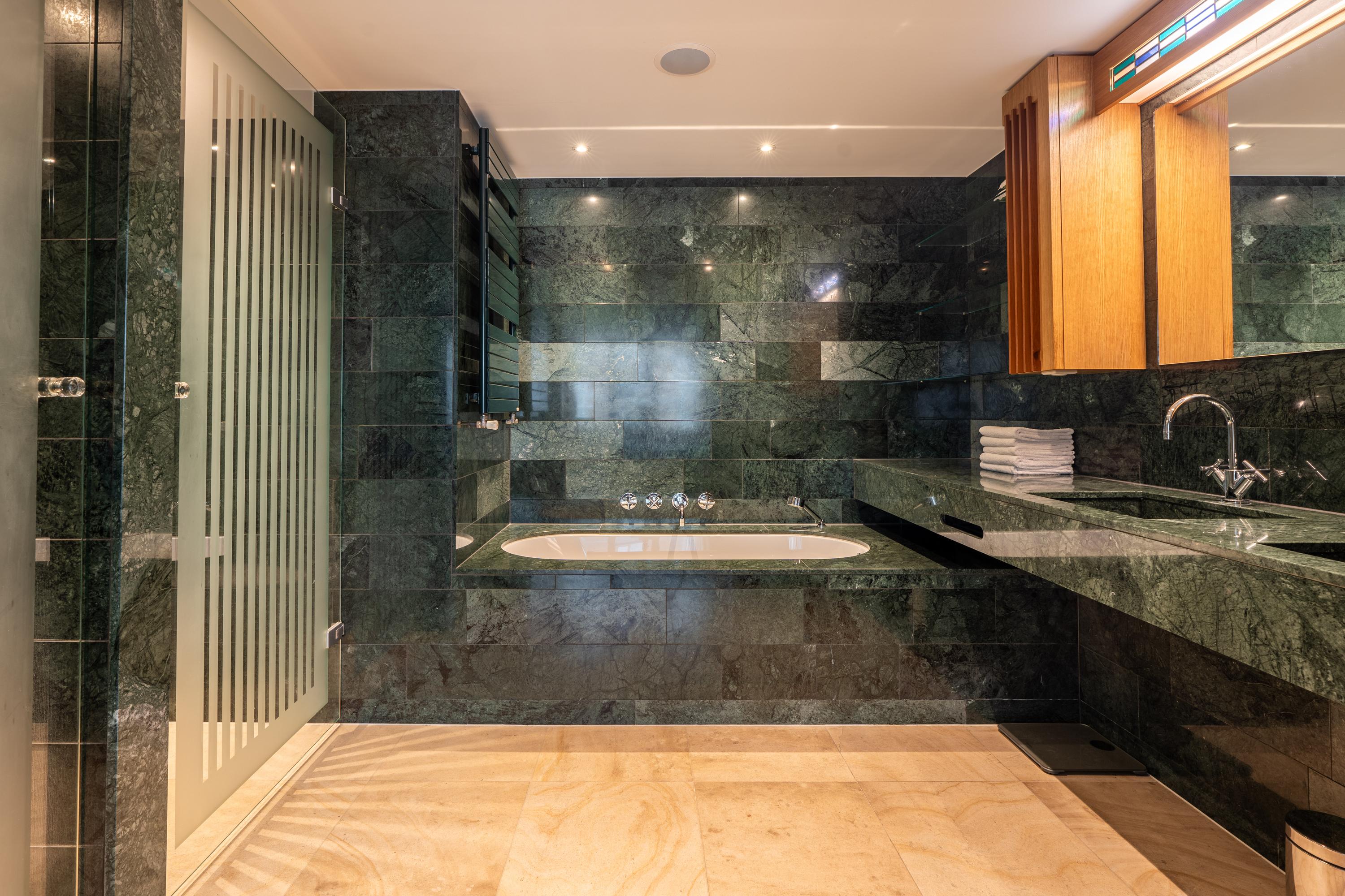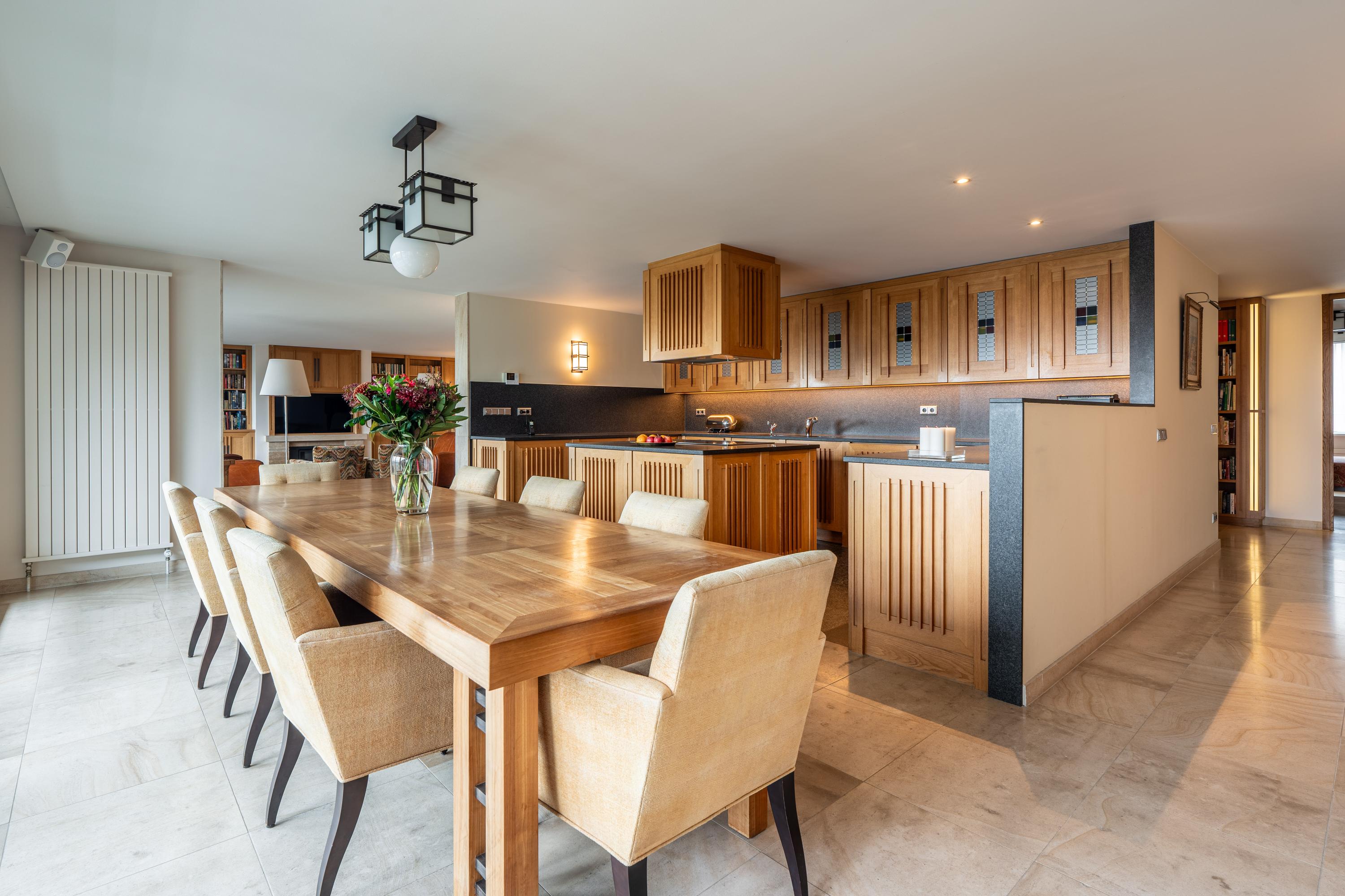 进入顶层公寓,宽阔的玄关引领至开放式起居空间,落地玻璃门将室内与横跨整套公寓宽度的25 m²阳台自然连通。冯德尔公园尽收眼底,无论是起居区还是厨房皆可欣赏,城市中难得的宁静由此注入生活。厨房设施齐全,配备中央操作岛、六头电磁炉和充足储物空间。客厅拥有燃气壁炉与定制柜体,并衔接成一处舒适办公区。三间卧室均配有嵌入式衣柜、定制书桌及空调,主卧套房设有绿色大理石浴室及双洗手台。全屋地暖和高能效系统确保全年舒适,配合双层玻璃与机械通风系统。